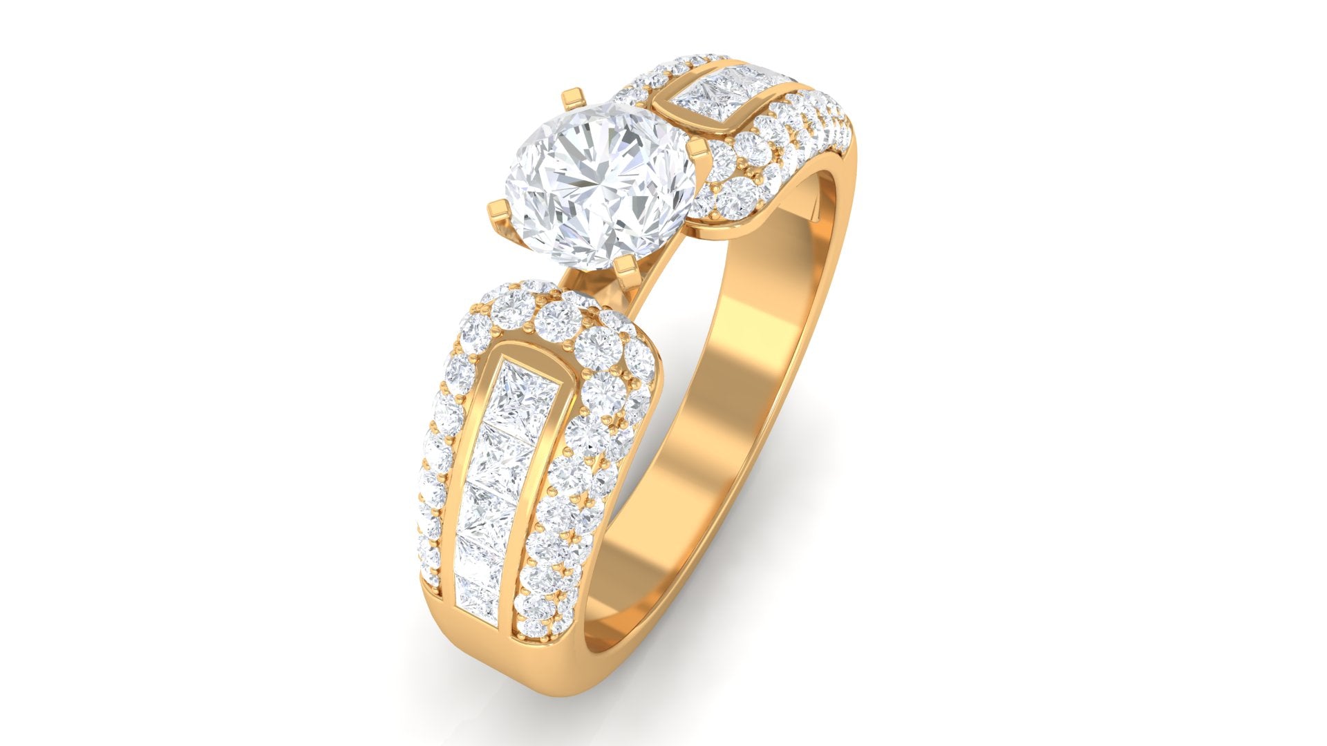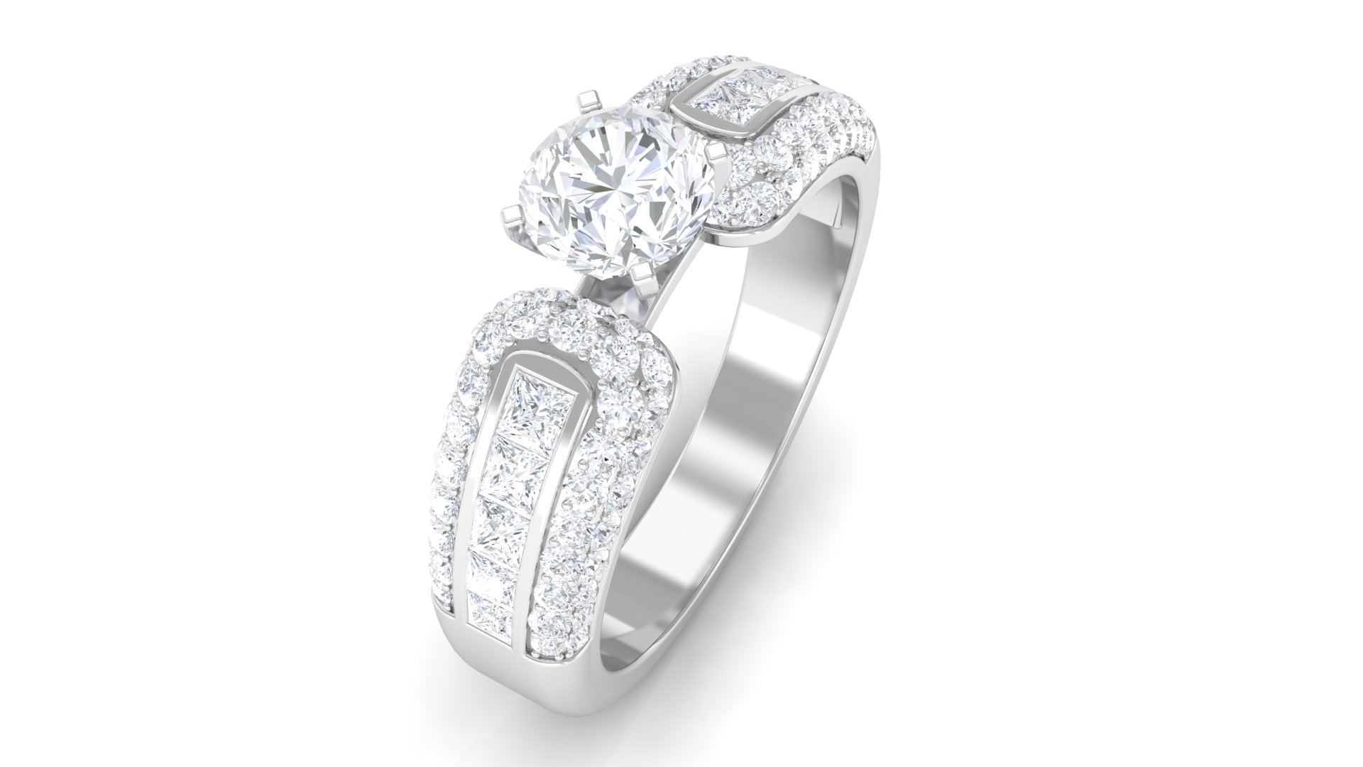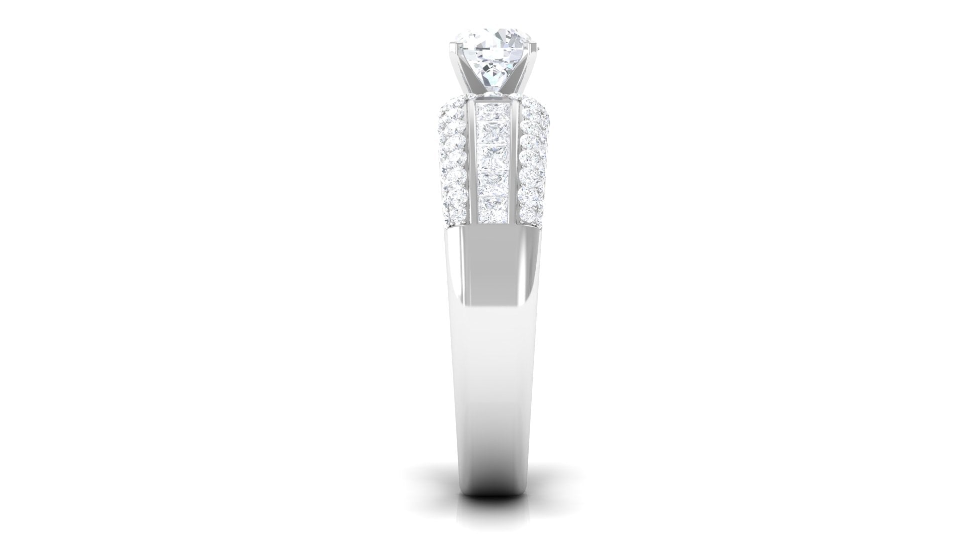 This Statement Engagement Band Ring is embellished with Round Cut Zircon in Prong Setting with Accent. Present this resplendent ring to your beloved.