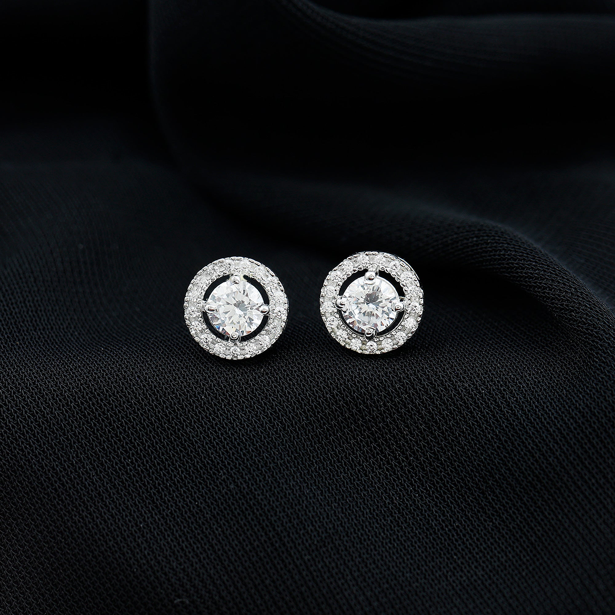 Capture attention effortlessly with these dazzling Cubic Zirconia Stud Earrings, designed to bring sparkle and elegance to every look. Each earring features a 5 mm Round Shape Zircon set as a center stone, surrounded by a Halo of smaller stones that amplify the shine, creating a sophisticated and eye-catching glow. Crafted in 925 Sterling Silver, these CZ Stud Earrings offer a timeless appeal that pairs beautifully with both casual and formal outfits. The secure Screw Back Closure ensures they stay comfortably in place, letting you enjoy your day with confidence and style. Whether you are dressing up for a special celebration or adding a touch of sparkle to everyday wear, these Cubic Zirconia Studs are a versatile and stunning accessory. They come in a charming jewelry box, ready to gift for Christmas, birthdays, anniversaries or any occasion that calls for a thoughtful and memorable present. These Cubic Zirconia Diamond Earrings are little bursts of joy, designed to make the wearer feel confident and celebrated. Perfect for yourself or someone special, they combine elegance, brilliance and everyday charm in one unforgettable pair.