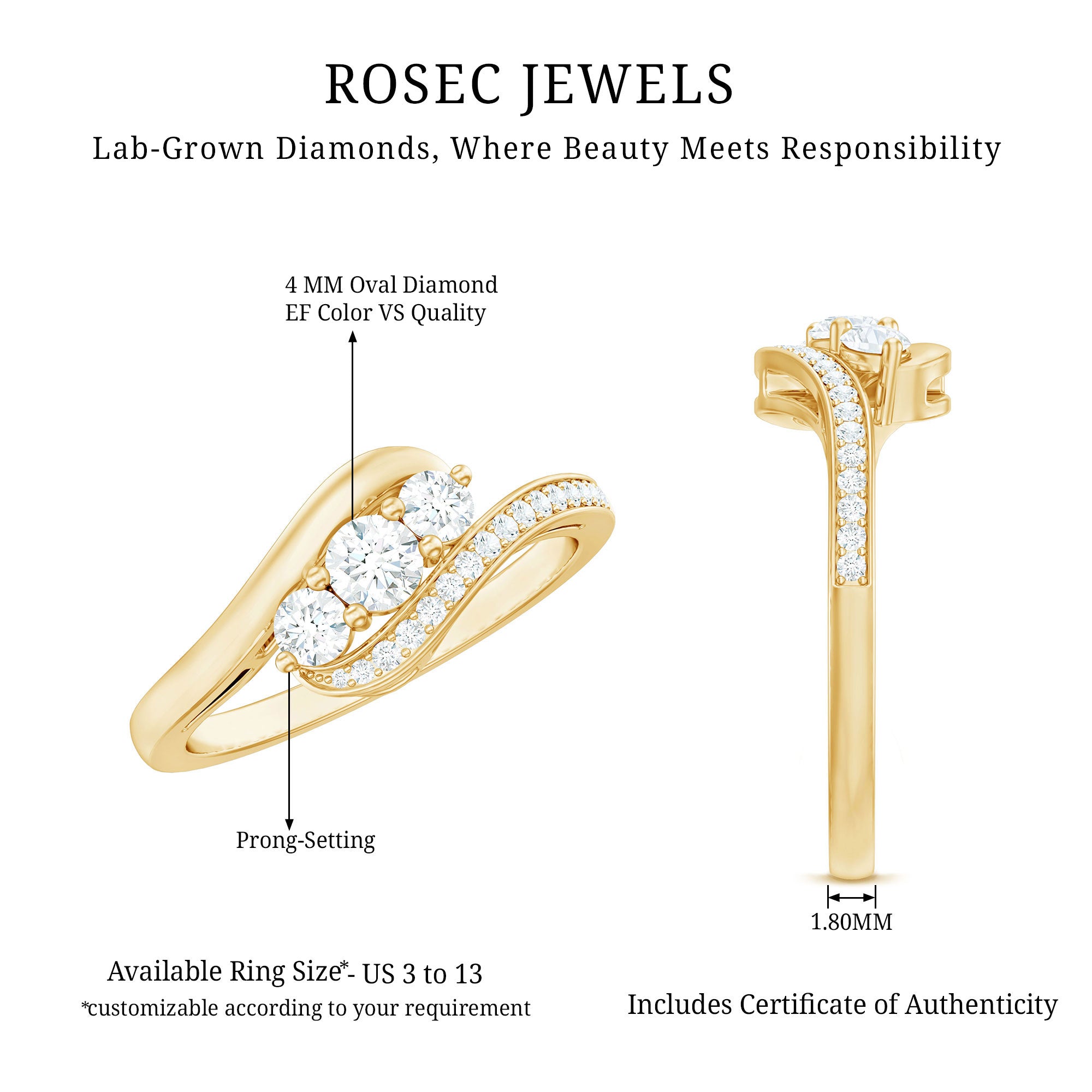 The perfect woman deserves the perfect piece of jewelry, and we have just the one for her! A stunning 3 Stone Promise Ring featuring three round brilliant cut lab-grown diamonds set in prong setting, celebrating the past, present, and future of your love story. This exquisite Lab Grown Diamond Ring showcases an elegant twist design that represents eternal love and commitment. The diamond-studded bypass shank style adds a modern, dynamic touch, making it the perfect choice for a promise or milestone occasion. Crafted with precision and style, the Promise Ring for Her is available in a variety of metal types and colors, providing a luxurious and sustainable symbol of your bond. Whether as an Pre Engagement Ring or a special promise, this piece is sure to enchant and honor your love story. This dazzling Diamond Three Stone Ring is guaranteed to brighten her life. Made from durable, beautiful materials to ensure she will cherish it for years to come.