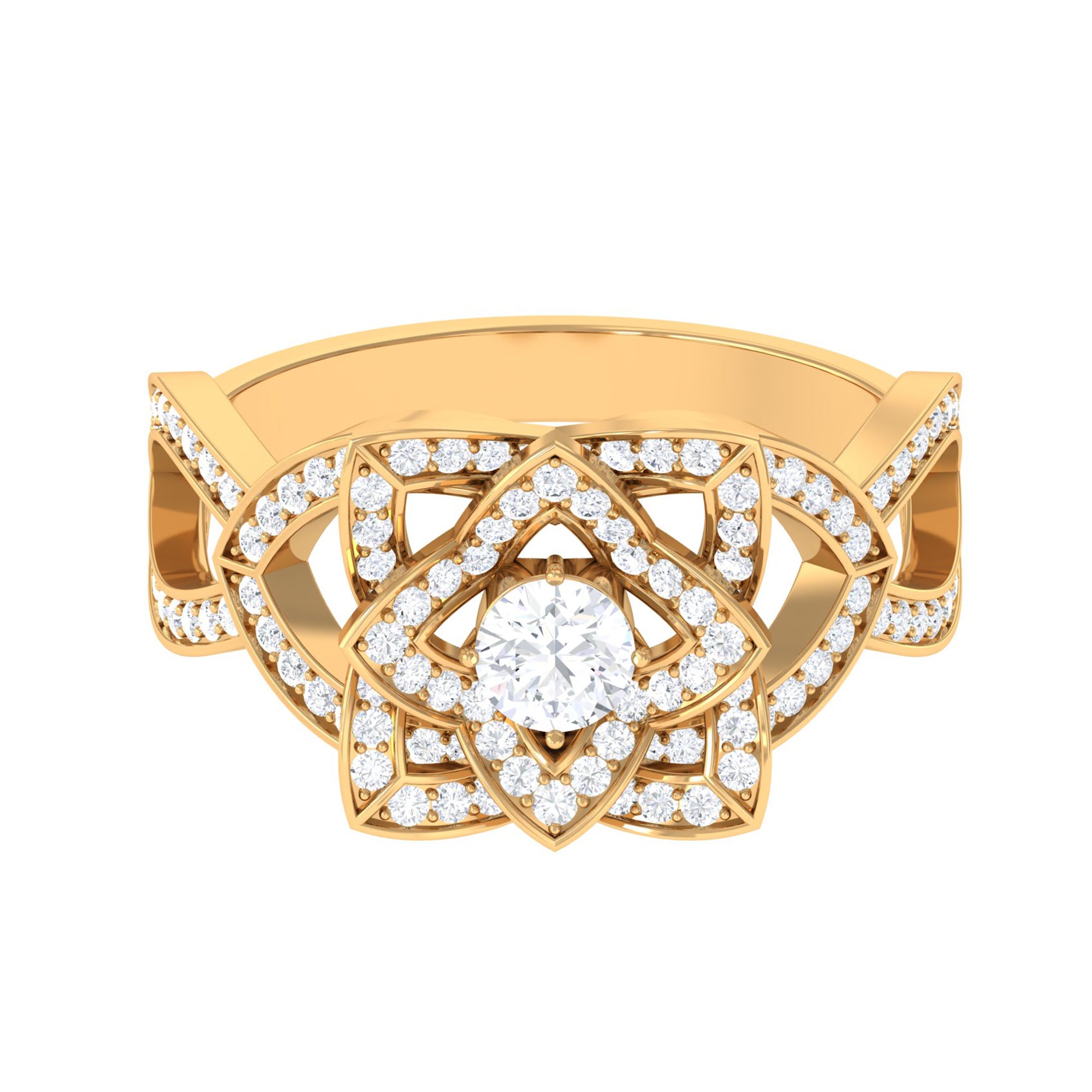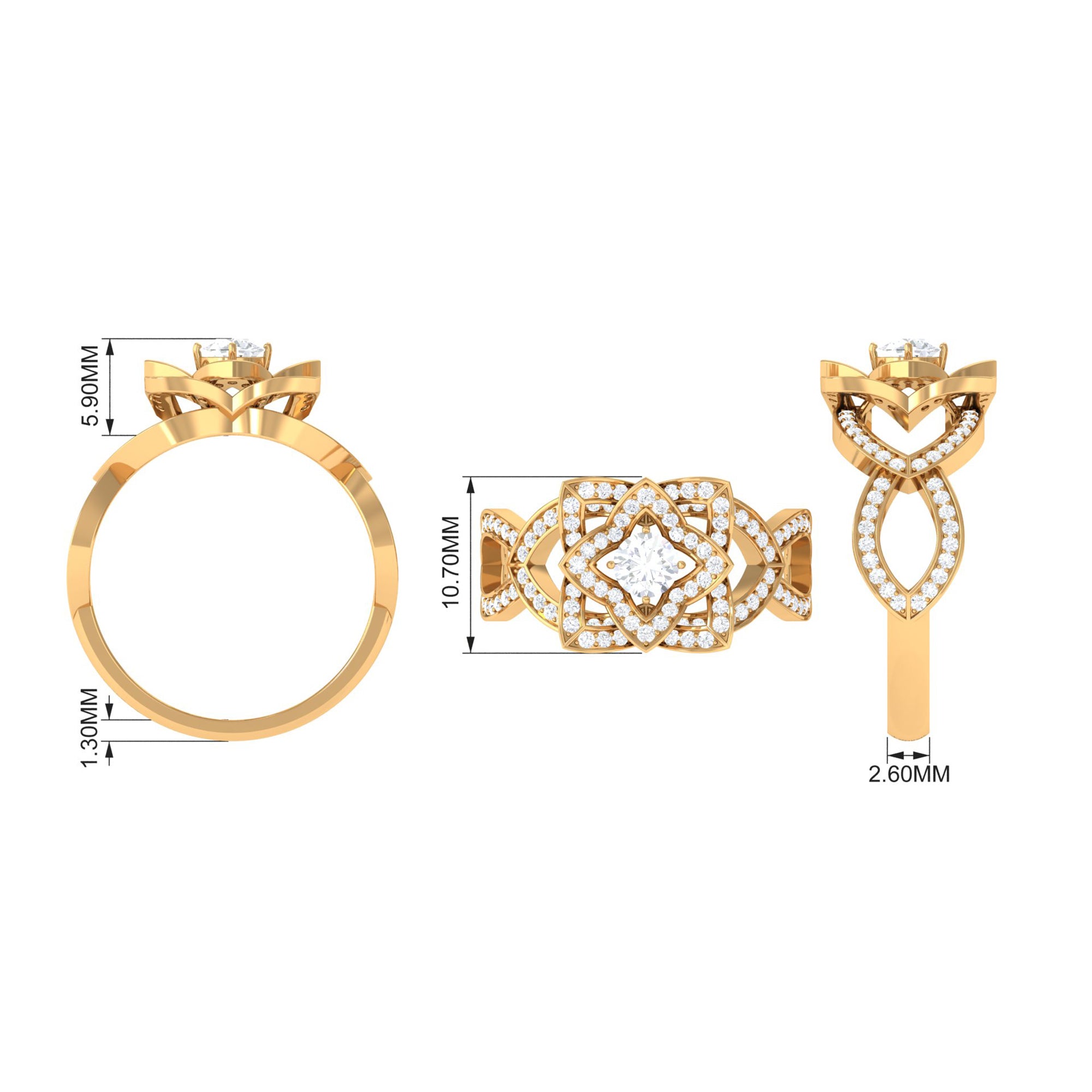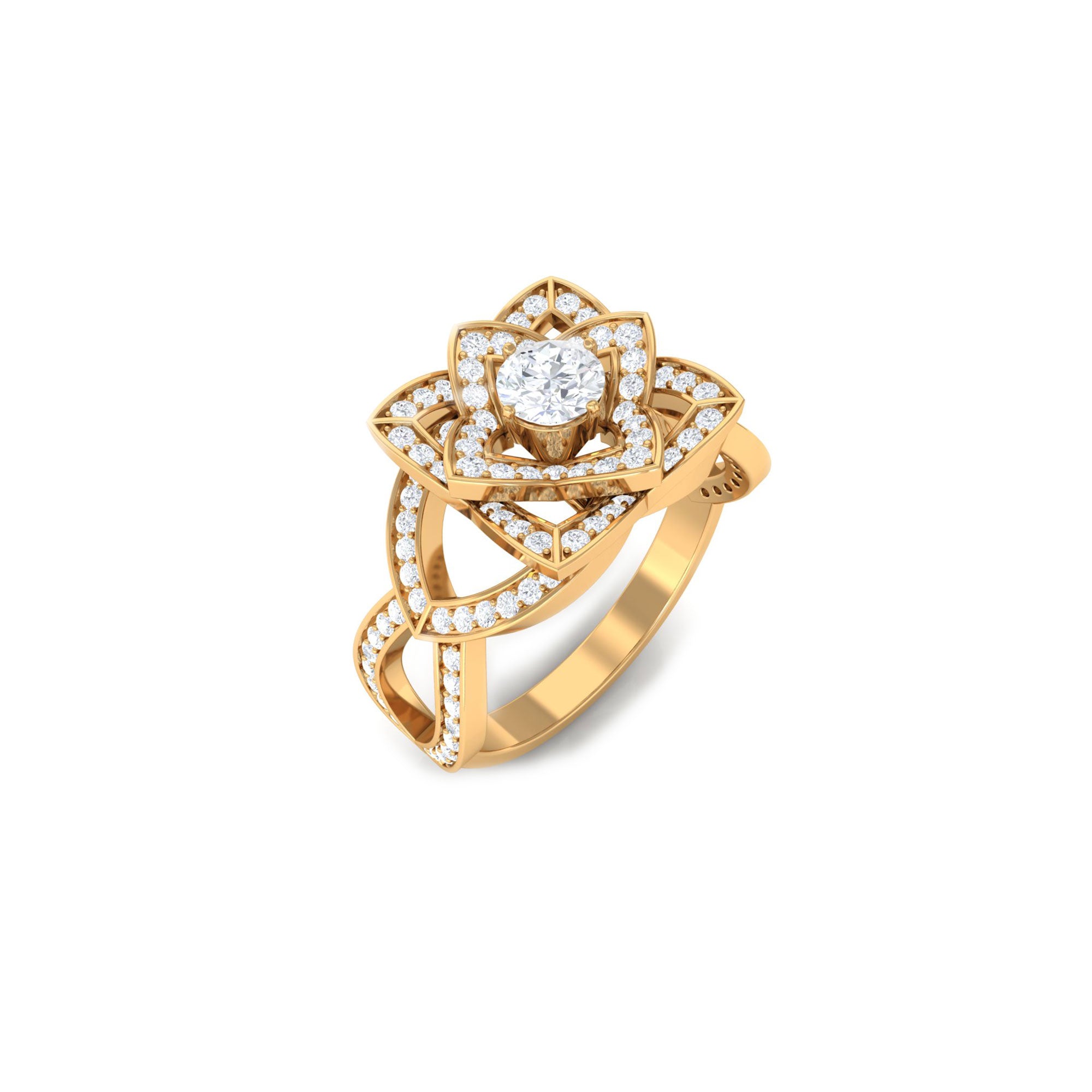 Inspired by unique art design, this art deco style Diamond Engagement Ring is sure to impress your partner. This Antique Engagement Ring features a beautifully crafted 4 MM round diamond in the center surrounded by small sparkling diamonds encrusted in the art deco style flower frame. The prong setting ensures the safety and durability of the center stones, adding quality and standard to the ring. Apart from its beauty, it is the perfect piece you can choose for your engagement. Crafted for brides seeking a unique piece that embodies romance while also reflecting a touch of vintage charm and the beauty of nature. This Diamond Vintage Ring is a timeless symbol of love that goes beyond the ages. Combining sophistication with enduring allure, this vintage beauty sparkles with every glance. With its understated significance, this Real Diamond Ring for Women exudes ultimate glamour, highlighting both beauty and elegance. Stealing the show, this Art Deco Diamond Ring pays tribute to the allure of yesteryears charm. The HI Color SI Clarity Diamond dazzles with remarkable brilliance and fire.