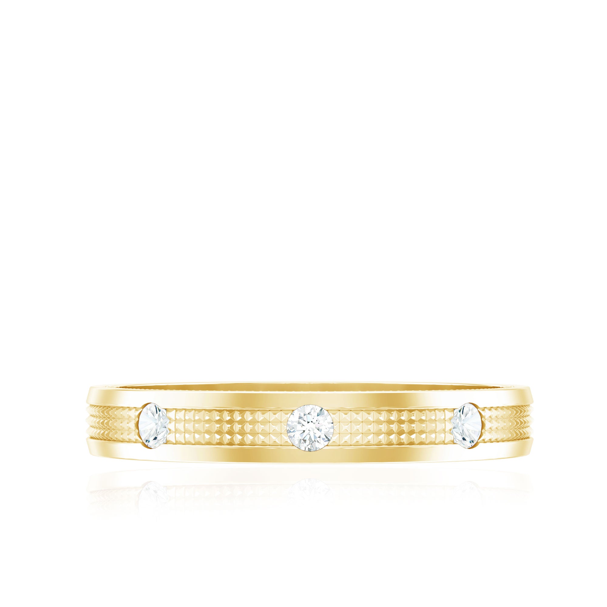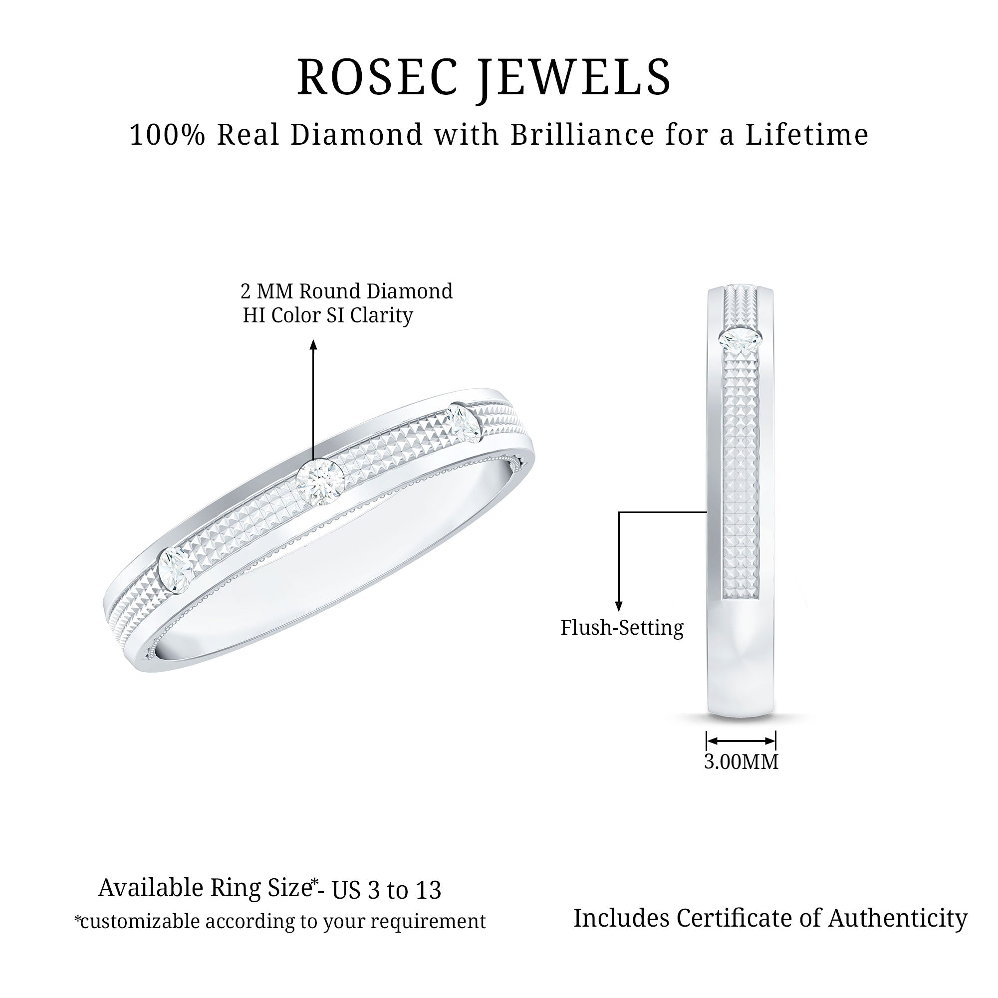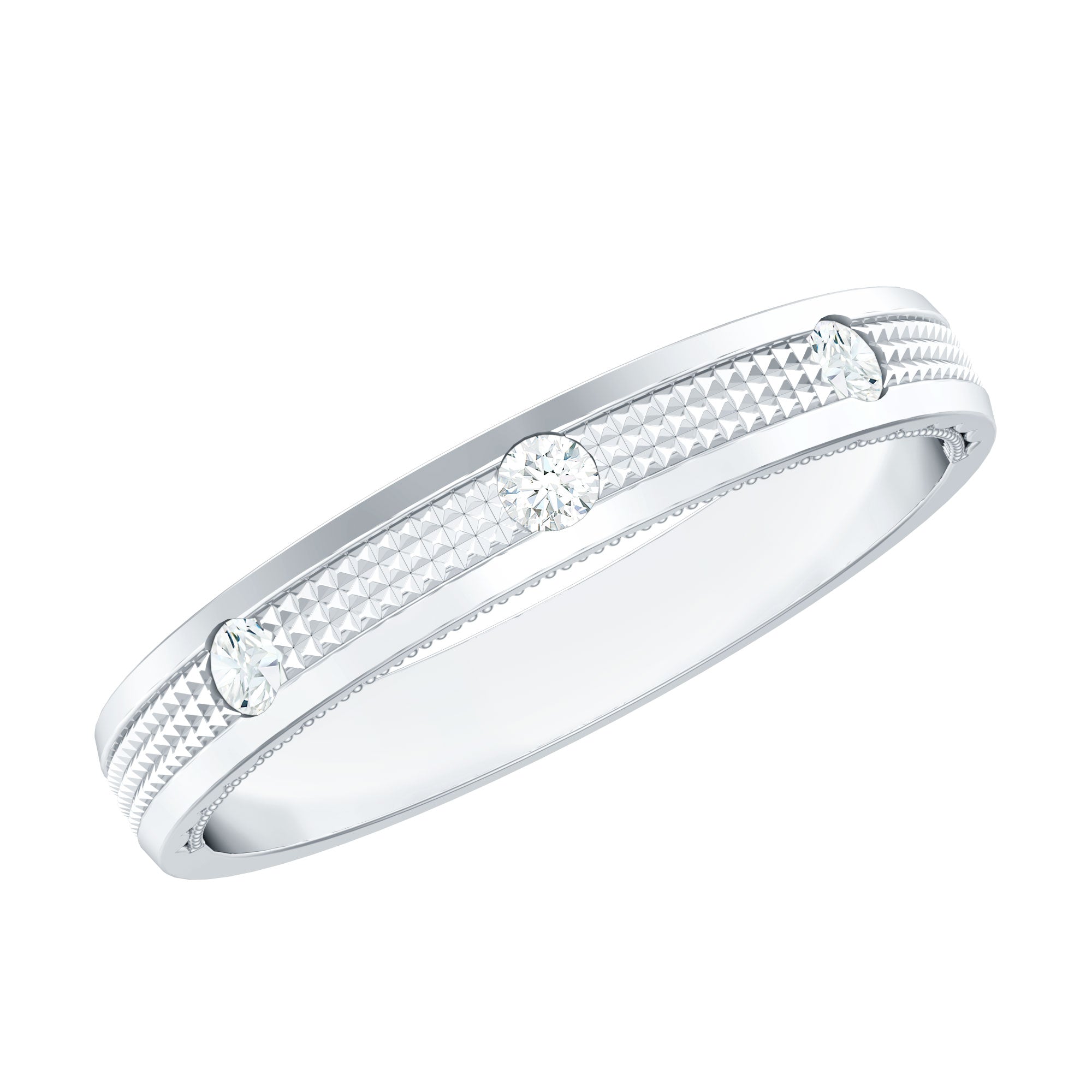 Light up your days with this gorgeous Diamond Anniversary Band, the perfect way to honor love, milestones, and cherished memories. This eye-catching Textured Wedding Band showcases three round brilliant cut diamond stones, securely set in flush setting, glimmering with every move. This Band Ring signifies eternity, embodying something meaningful, stylish, and enduring. The diamond stones are meticulously arranged over the band, complemented by some stunning textured detailing. Whether you are celebrating a wedding anniversary, a special occasion, or simply treating yourself to something nice, this Wedding Anniversary Band adds a beautiful touch of elegance to your outfit. It is comfortable enough for everyday wear yet sophisticated for special occasions, making this Unisex Diamond Band a piece you will always want to wear, perfect for both men and women. Delivered in a lovely jewelry box, it is ready to bring happiness to someone special.