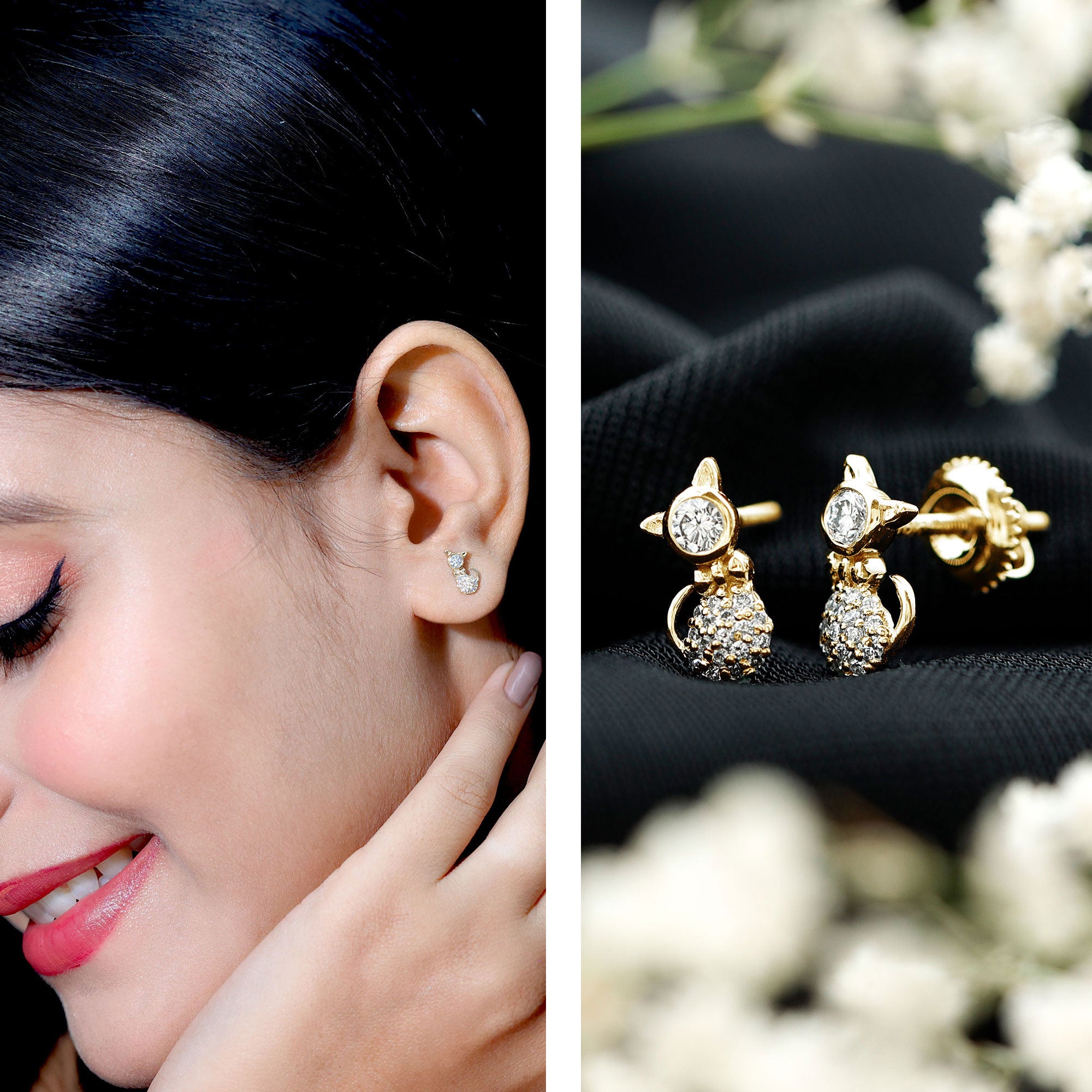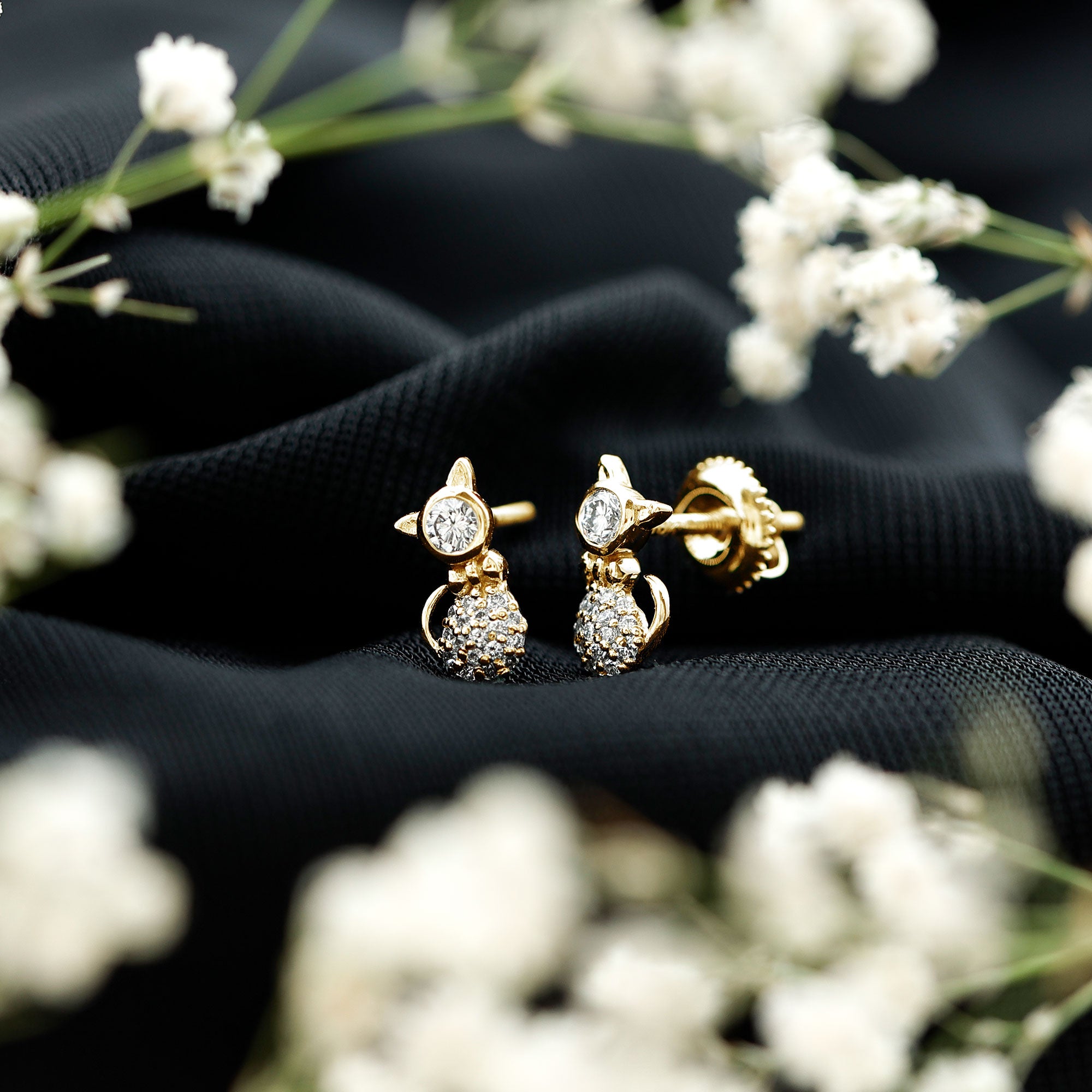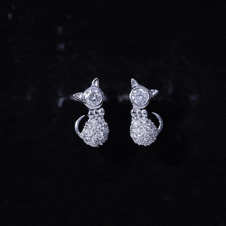 Certified Diamond Cat Kitty Earrings