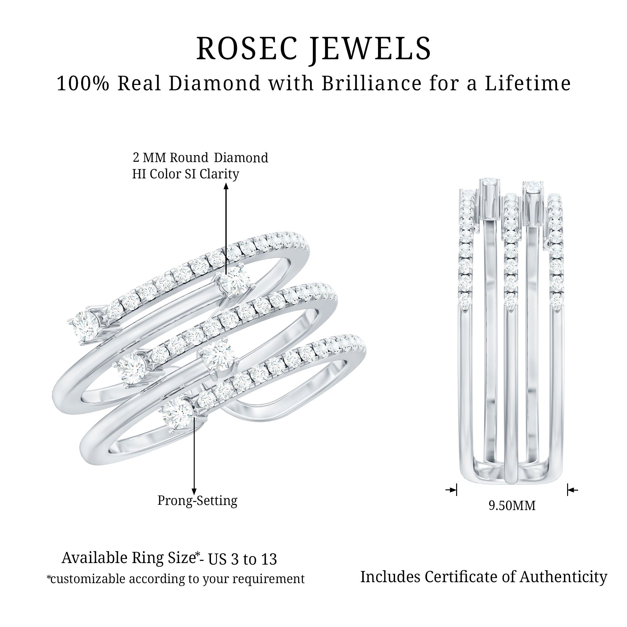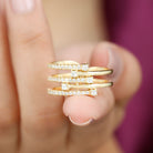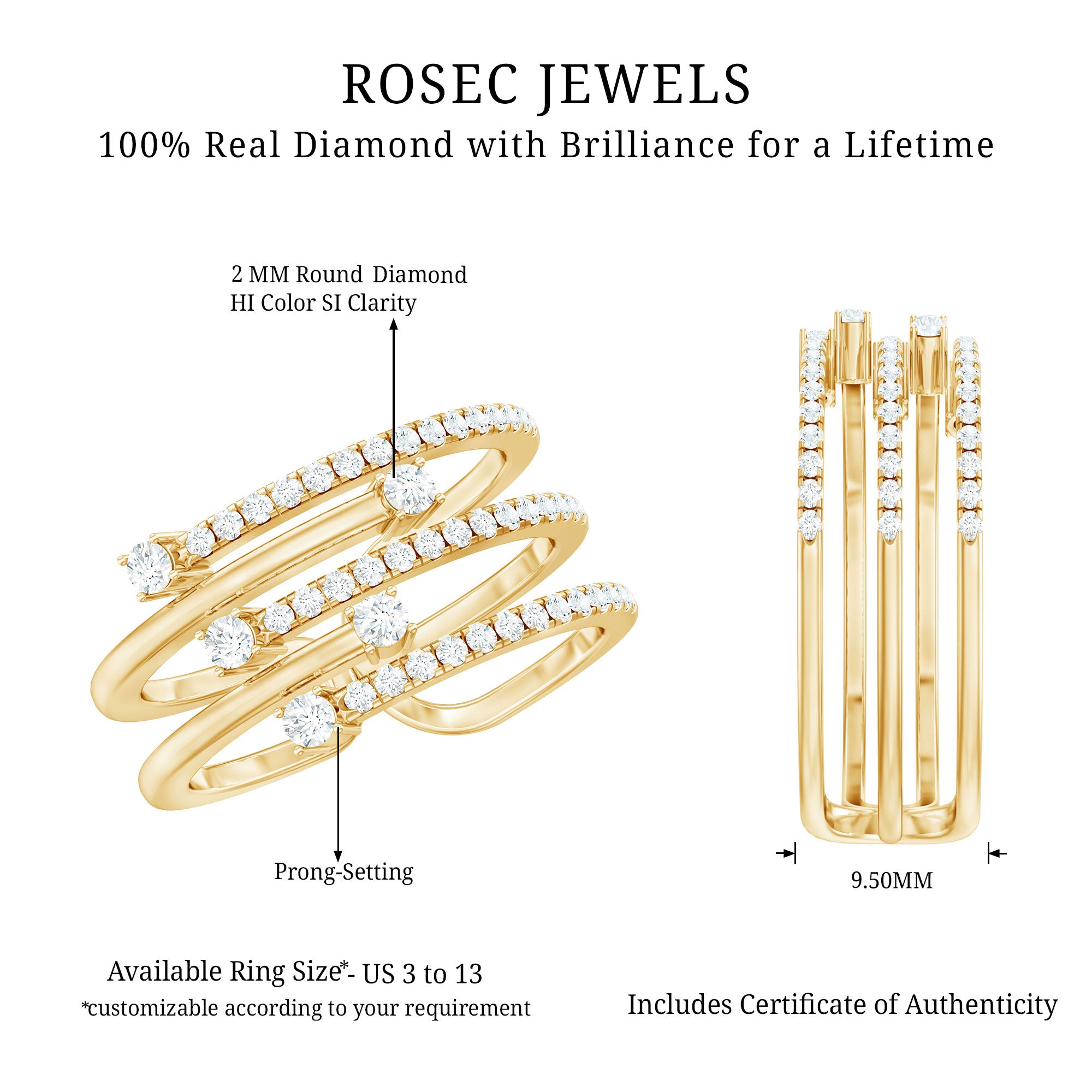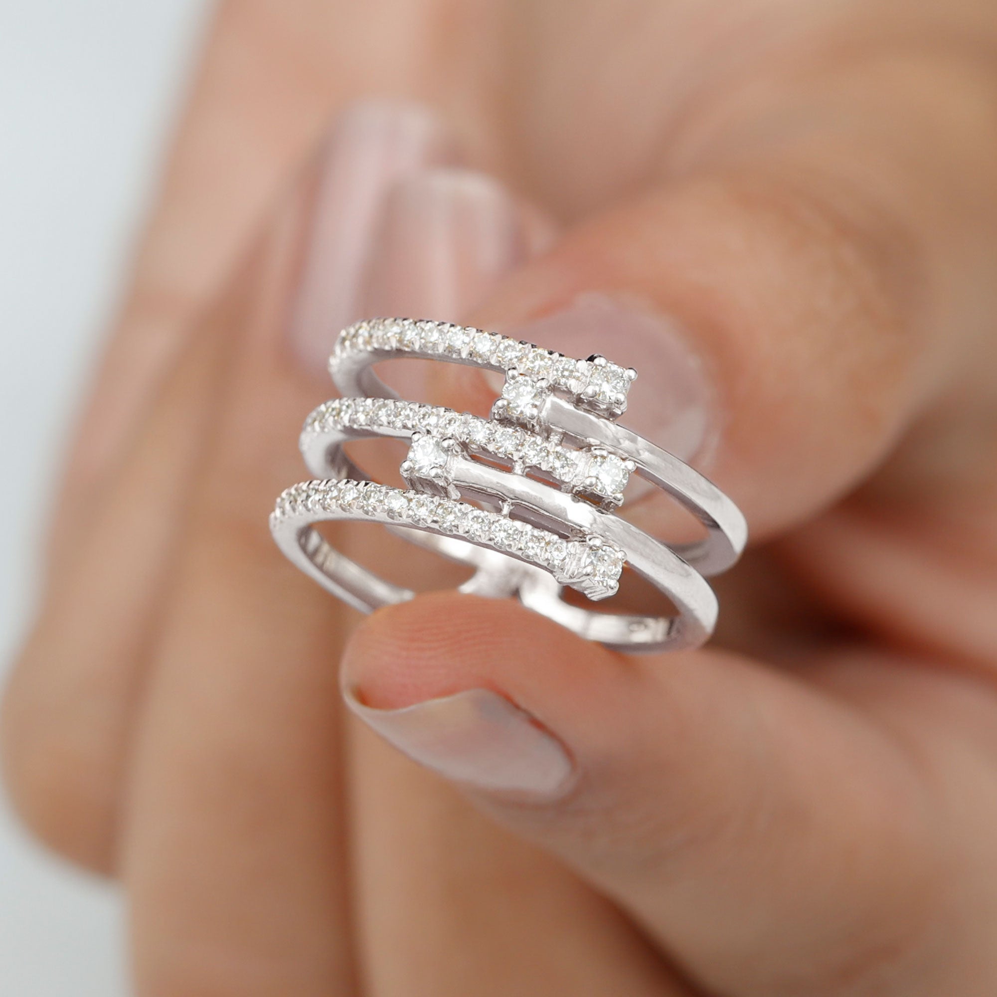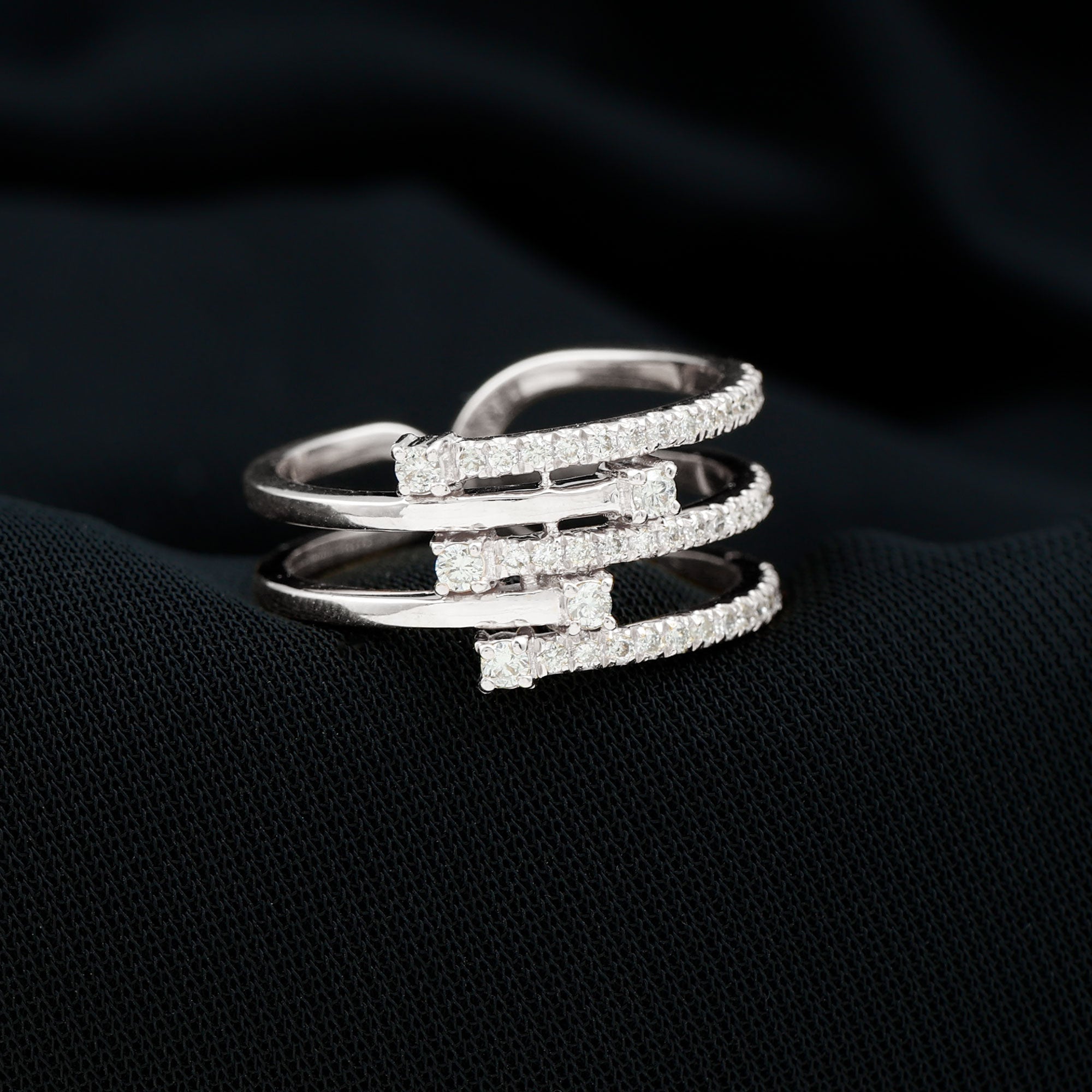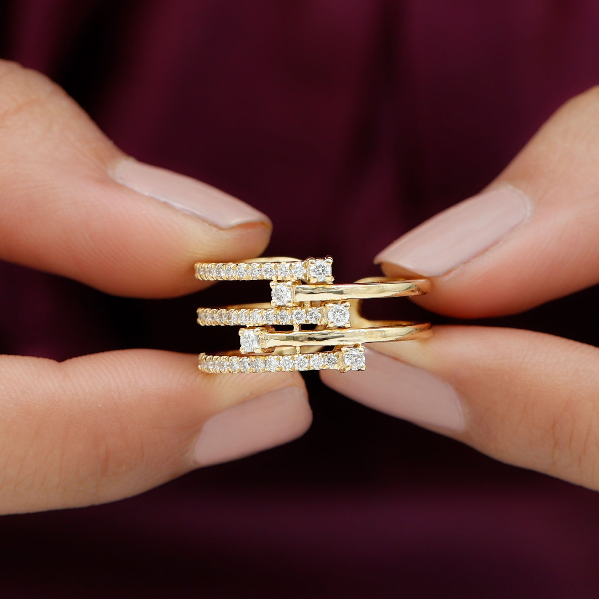 A truly unique blend of bold design and timeless sparkle - this Diamond Wrap Ring is made to turn heads. Make a bold and striking statement with this exquisite Cocktail Wrap Ring, which features a dramatic multi-band wrap design that effortlessly wraps around your finger like a ribbon of brilliance. Embellished with dazzling Round Shape Diamond stones elegantly decorating the band. This Real Diamond Ring is a true masterpiece, designed to be a standout piece of jewelry that captures attention and admiration. Whether you are making a grand entrance at a cocktail party or simply elevating your everyday style, this Wrap Around Diamond Band is your go-to piece when you want your accessories to speak volumes. Despite its bold look, it is available in various ring sizes to offer a comfortable fit and has a balanced structure that hugs the finger beautifully. This Diamond Cocktail Ring is not just jewelry, it is a conversation starter, a personal style statement, and a celebration of individuality. It comes nestled in a premium jewelry box and includes a certificate of authenticity, making it a perfect choice for gifting or adding to your own collection.