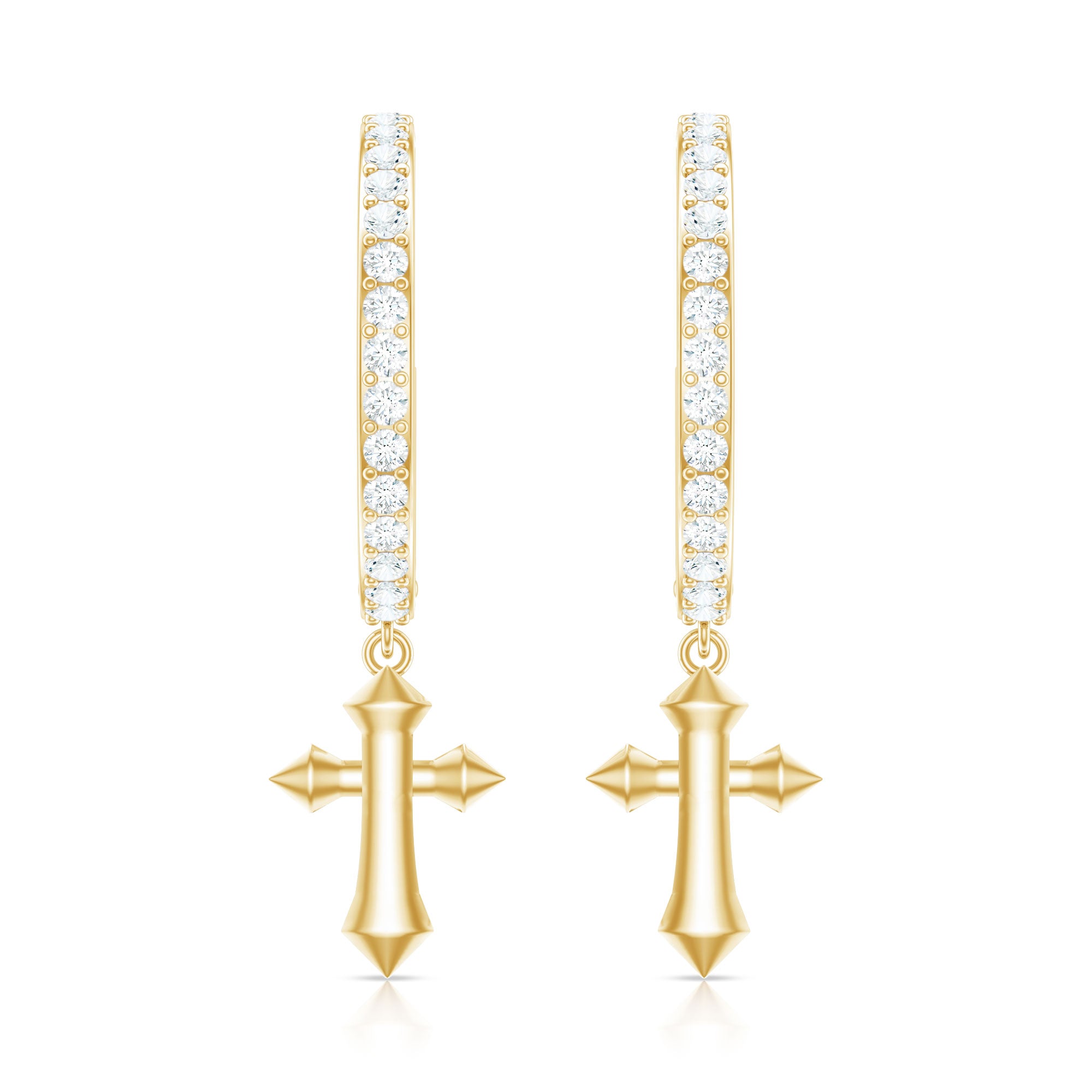 These phenomenal and classic Diamond Cross Earrings are the intersection of timelessness and modern beauty, stating that spirituality and fashion go hand in hand. Blending the classic level attributes with modern features, these Hoop Drop Earrings are embellished with a cross that is made with metal, and the hoop design is brilliantly decorated with Round Shape Diamond that beautifully scintillates, turning heads to turn. With a symbol of devotion and spirituality, these Catholic Earrings elevate your style and deepen your connection with your faith. No wonder, with their versatility and spiritual significance, these Cross Hoop Earrings will always going to be a popular choice among fashion enthusiasts and people of faith. These well-designed Religious Earrings maintain a perfect balance between meaning and style, which would also suit every mood and moment. Their design are a source of attraction that would make a stylish addition to any outfit.