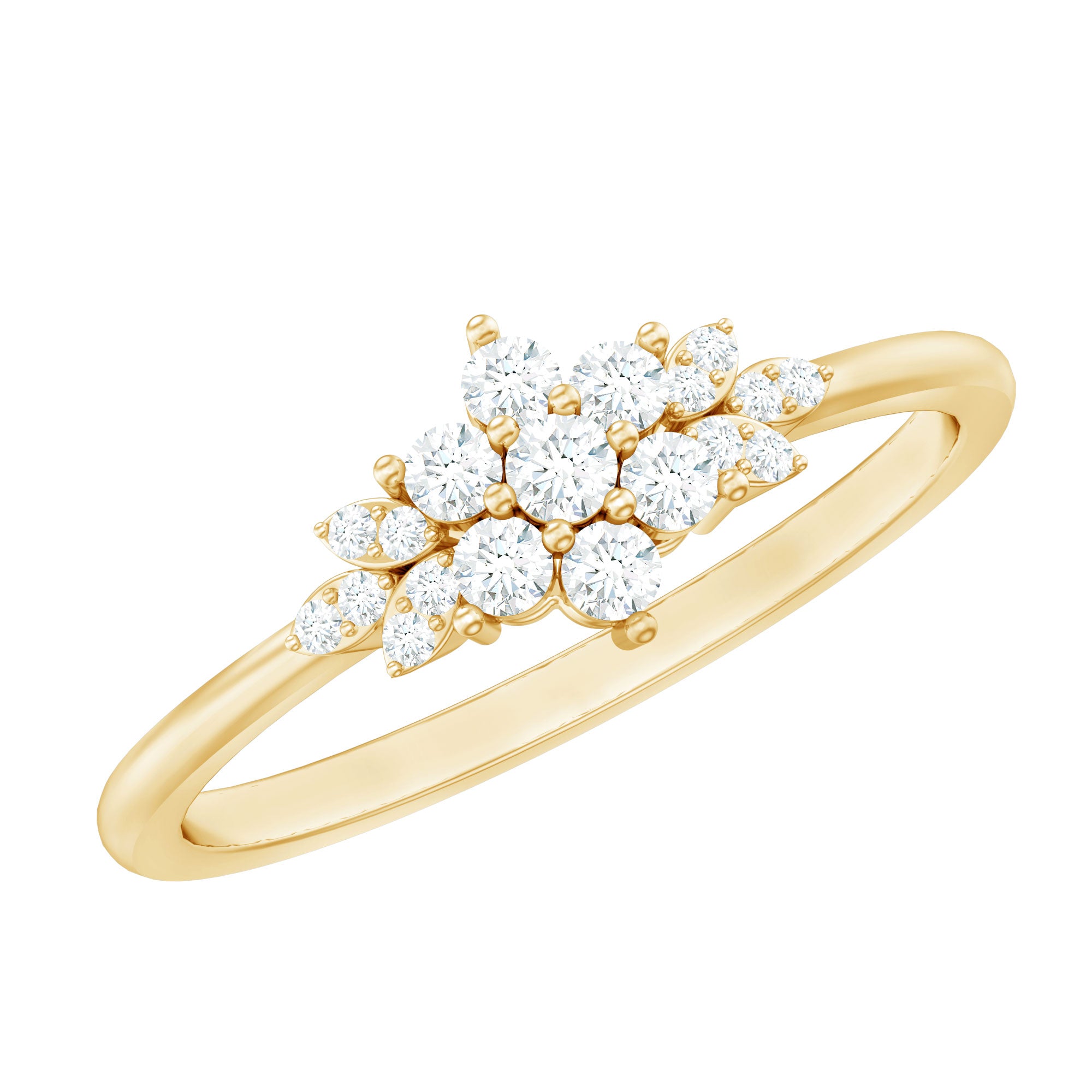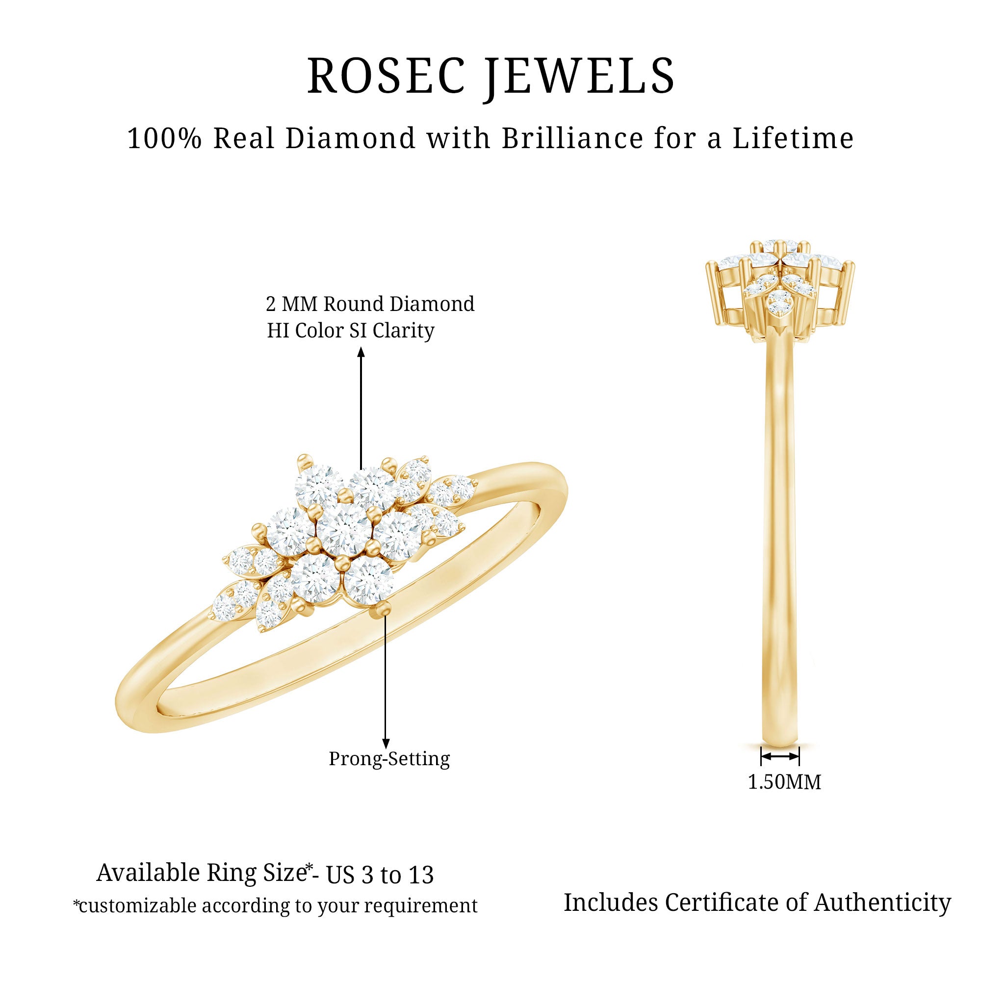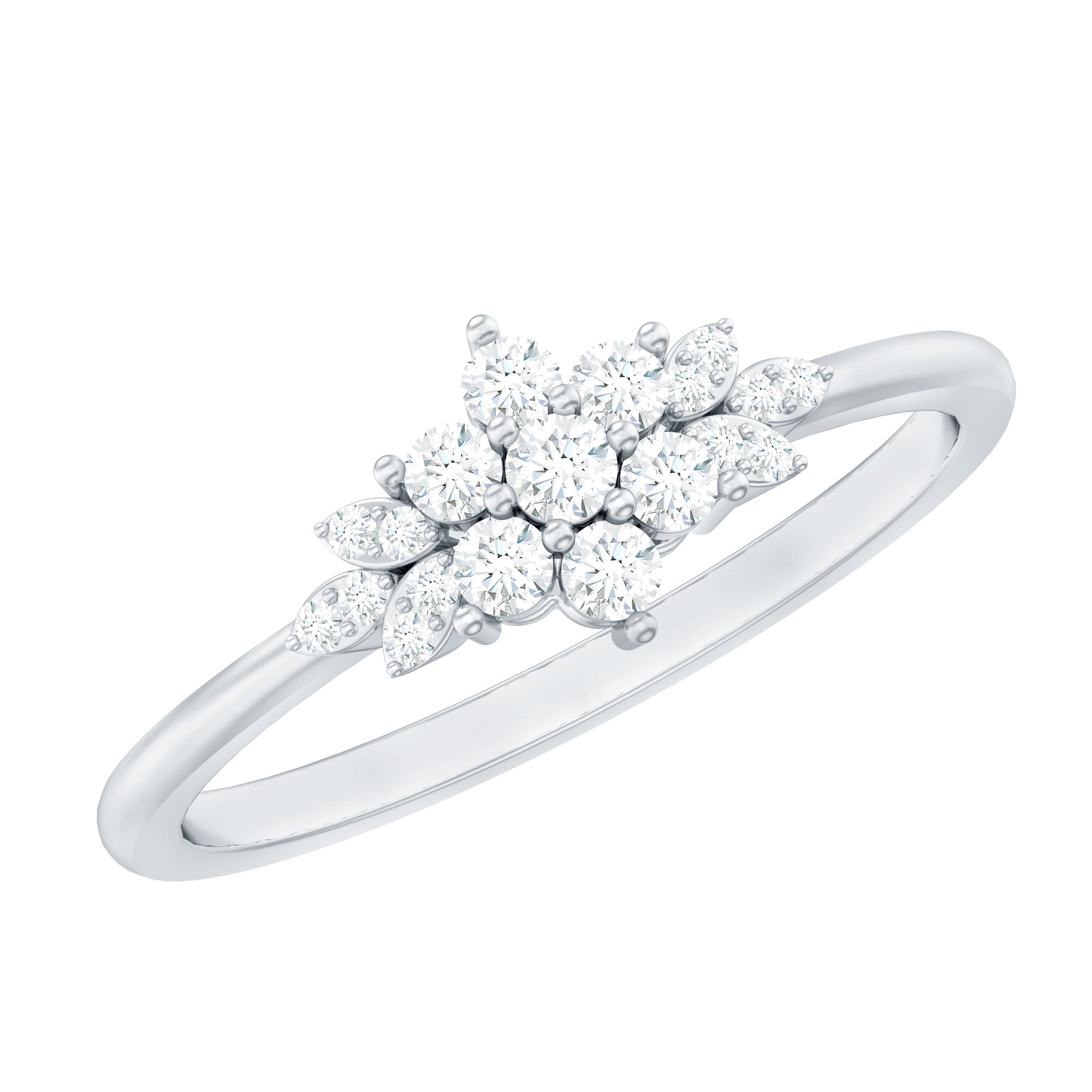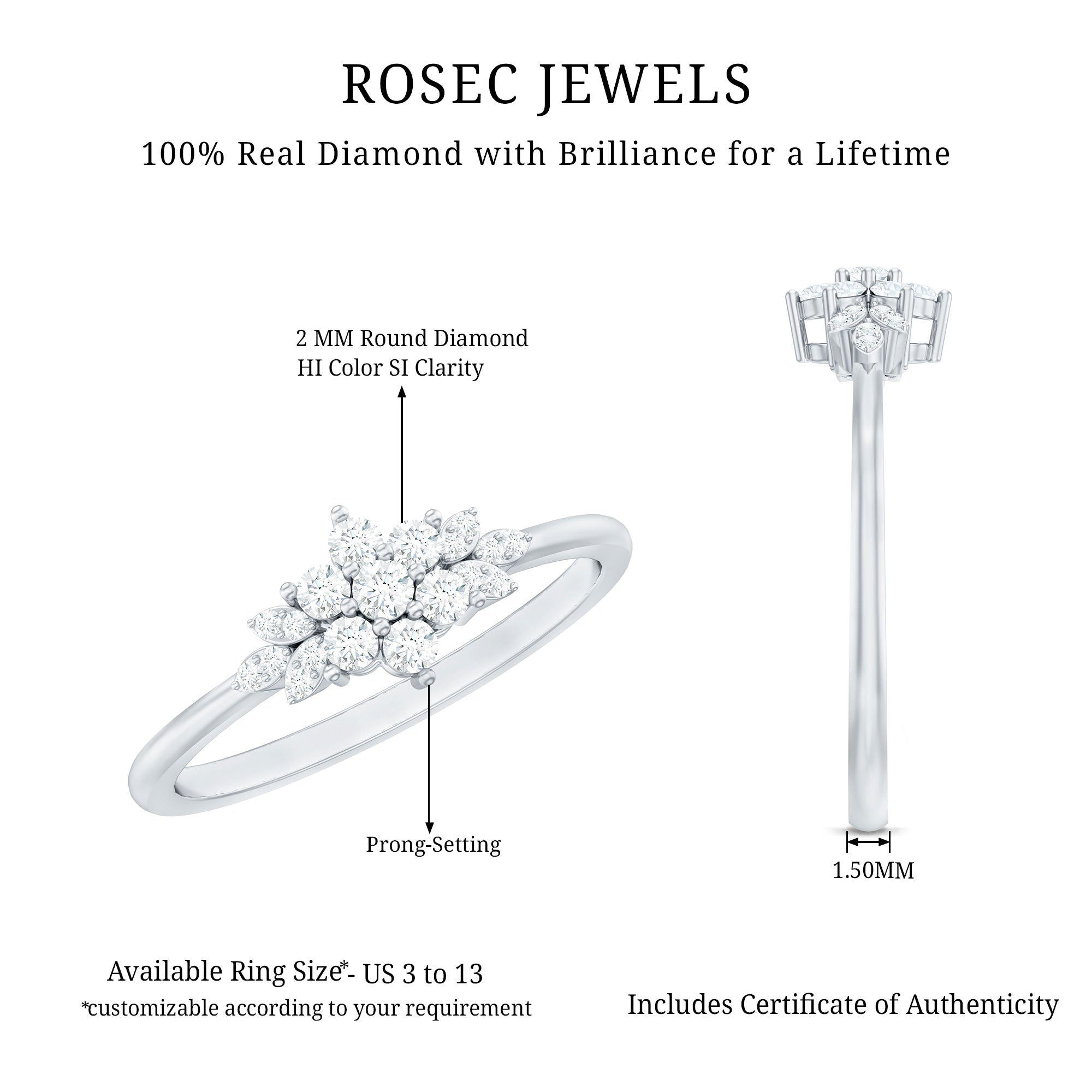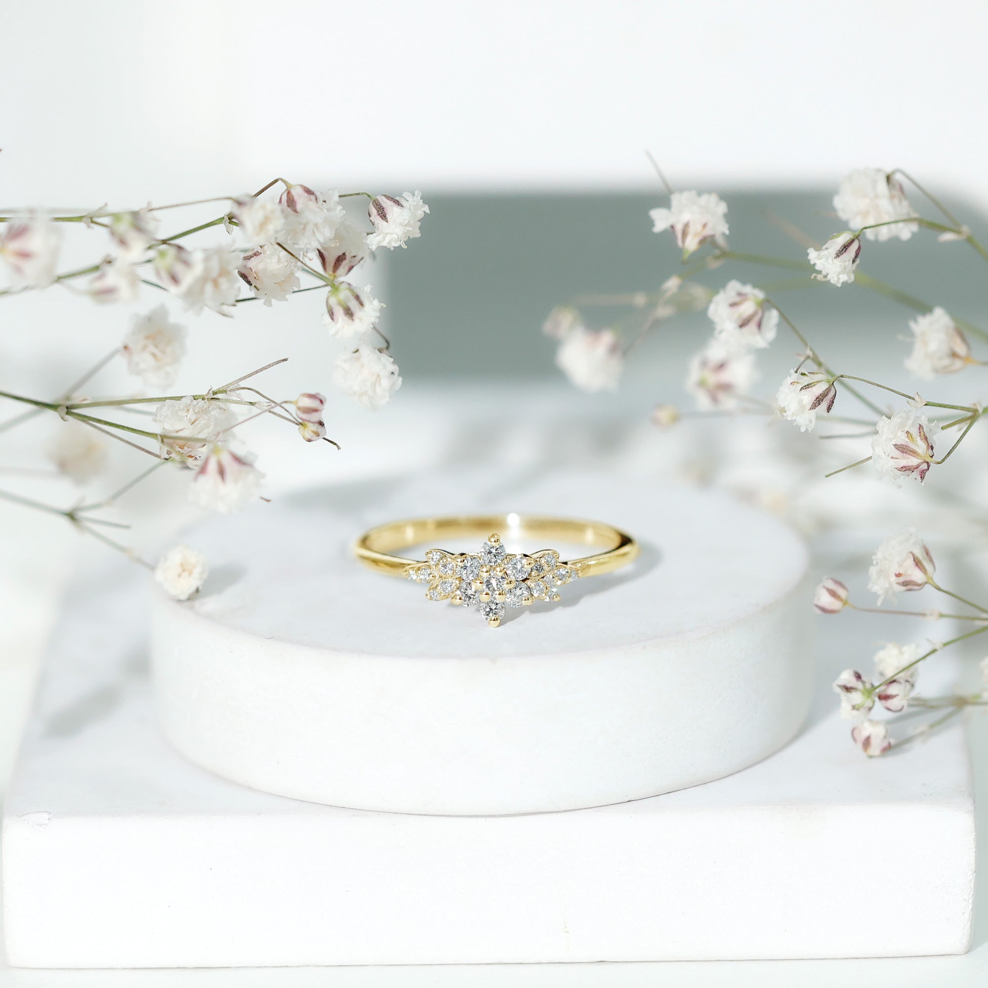 Feel the embrace of the stunning Diamond Promise Ring, with its simple and elegant design offering a unique sparkle and understated grace. Adorned with a cluster of Round Diamond in Prong Setting, this Flower Promise Ring stands the test of time, making it the perfect symbol to celebrate lifes precious moments. The enchanting and uniquely designed Floral Diamond Ring adds a touch of sophistication with its unique blend of classic and contemporary elements. It is a stylish homage to nature, blending inspiration to create a truly unique piece that pays tribute to the beauty of the natural world. Its exquisite design symbolizes romance, which speaks to nature and individuality. Incorporating intricate designs, resembling a blooming flower, represents love and a new beginning. Seamlessly blending with contemporary style, this Diamond Cluster Ring is perfect for modern brides while embracing unique tastes, embodying the world beautifully. It is an excellent choice for a meaningful promise or as an engagement ring.