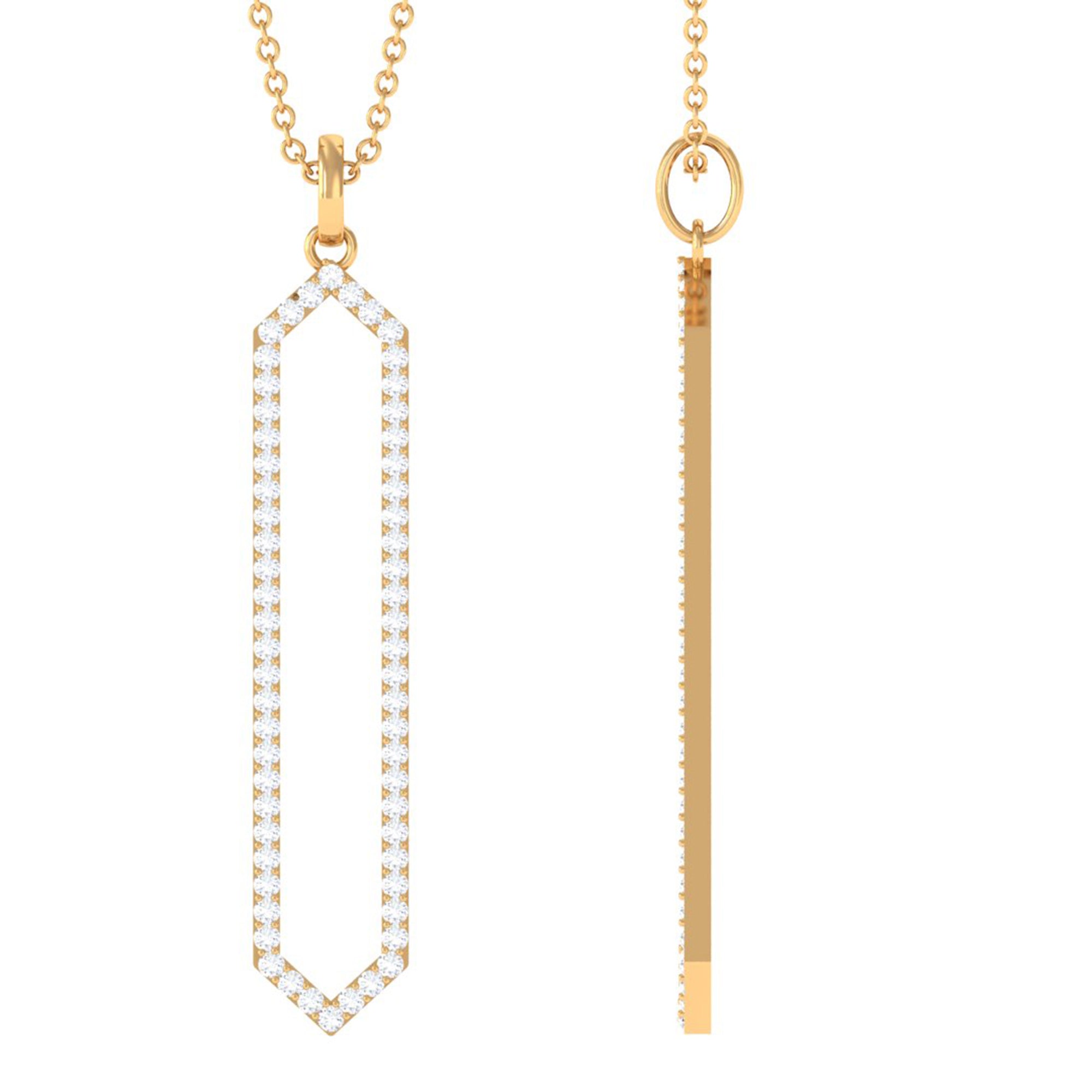 Embodying elegance, this Diamond Pendant Necklace offers a unique and modern allure. The captivating interplay of geometric lines and contemporary shapes sparks with a sophisticated aesthetics. Appreciating elegance and avant-garde style, this Geometric Necklace is a meticulously crafted work of art designed for the modern individual. It is adorned with Round brilliant cut Diamond on a geometric pattern. These precise lines and contemporary shape have a harmonious design that truly stands out. As a statement piece that speaks volumes about your refined taste and appreciation, this Hexagon Necklace is sure to become a cherished addition to your collection. Catering to a delicate and minimalist style, this Pendant features with modern, geometric design that sparkles with HI-SI Quality Diamond. The geometric lines of the modern world were created for this gorgeous and modern twilight hexagon-shaped diamond pendant, while drawing attention to the neck area.