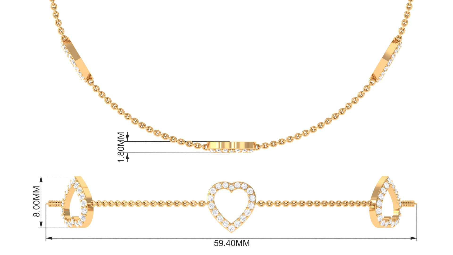 As a universal symbol of love, this Diamond Chain Bracelet is all set to steal your heart with a loving feeling into every moment. As a unique and stylish accessory, this Bracelet is designed to turn heads and make a statement on your wrist. As a classic charm, this Bracelet is adorned with Open Heart Shapes that are decorated with Round brilliant cut Diamonds in Pave Setting. This Station Chain Bracelet has a minimalist charm that, when wrapped around your wrist, has a romantic and sentimental symbolism. It is a quite essential statement style that appreciates delicate and dainty grace, exuding effortless luxury. Here is a tip to your arm candy that might be waiting to look gorgeous with this beautiful Sweetheart Bracelet, with its ultimate modern hue, that takes the jewelry world by storm. Firstly, for self-love, it is believed that no one loves you as you love yourself. Now comes the turn as the gifting to someone special, which is dainty enough for everyday wear or special events.
