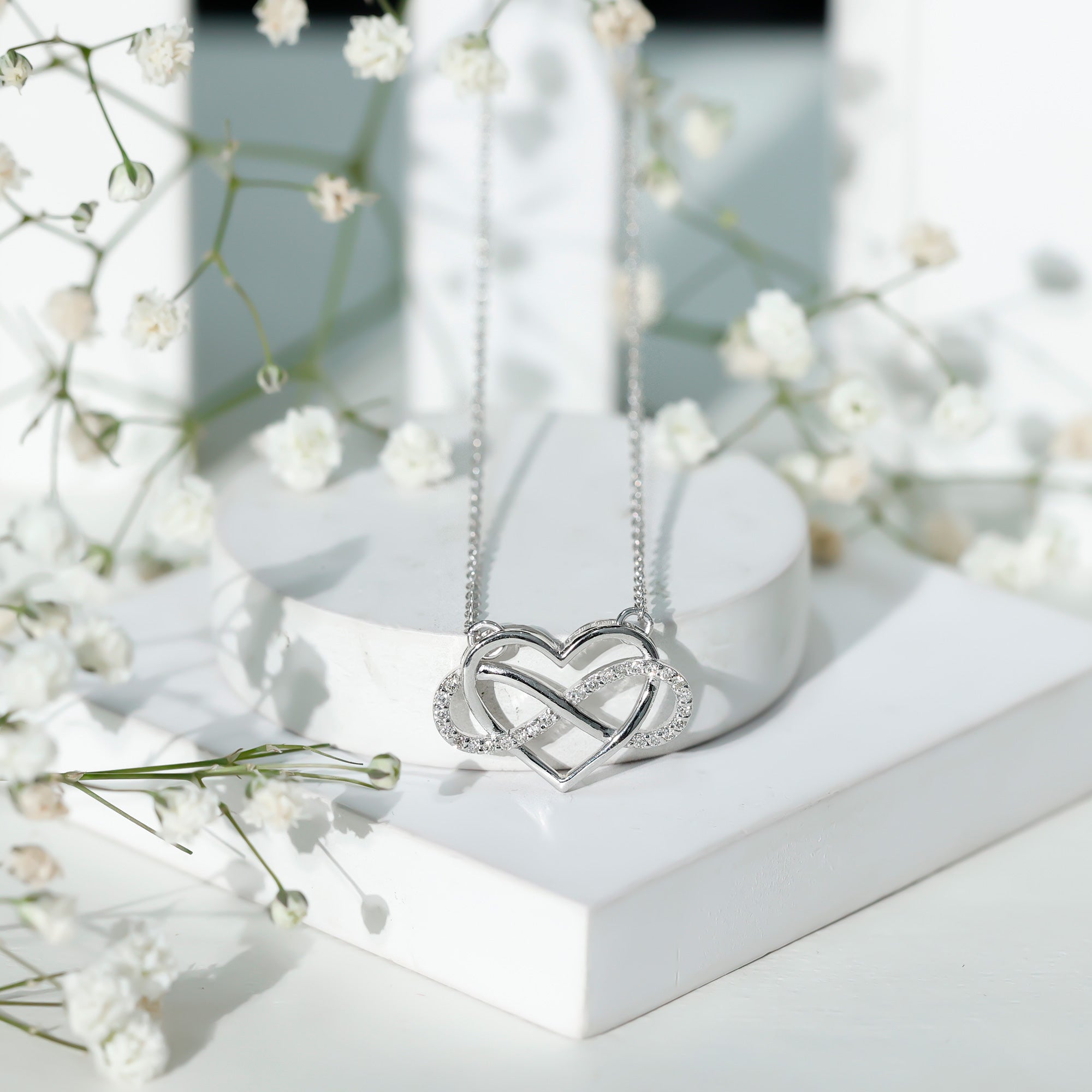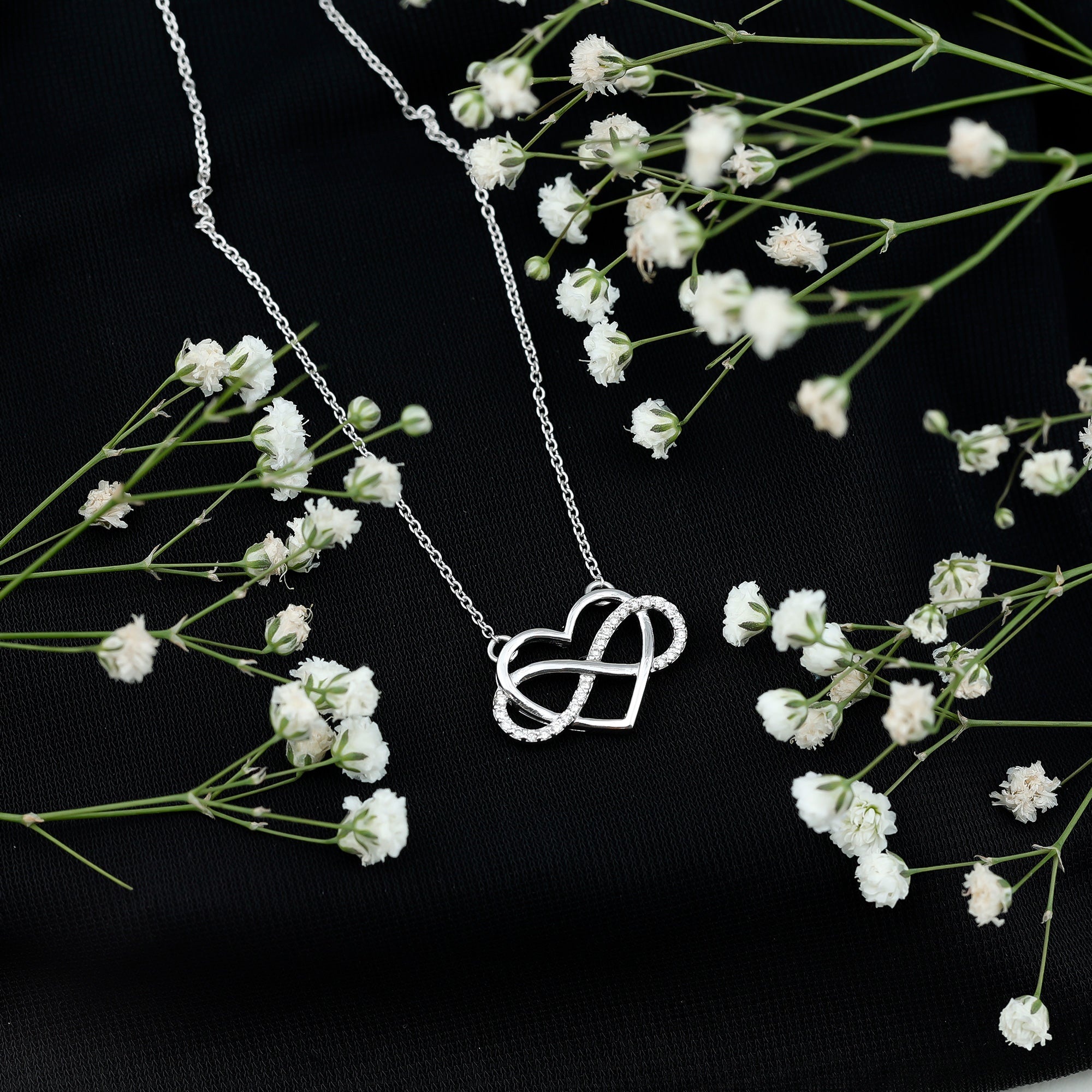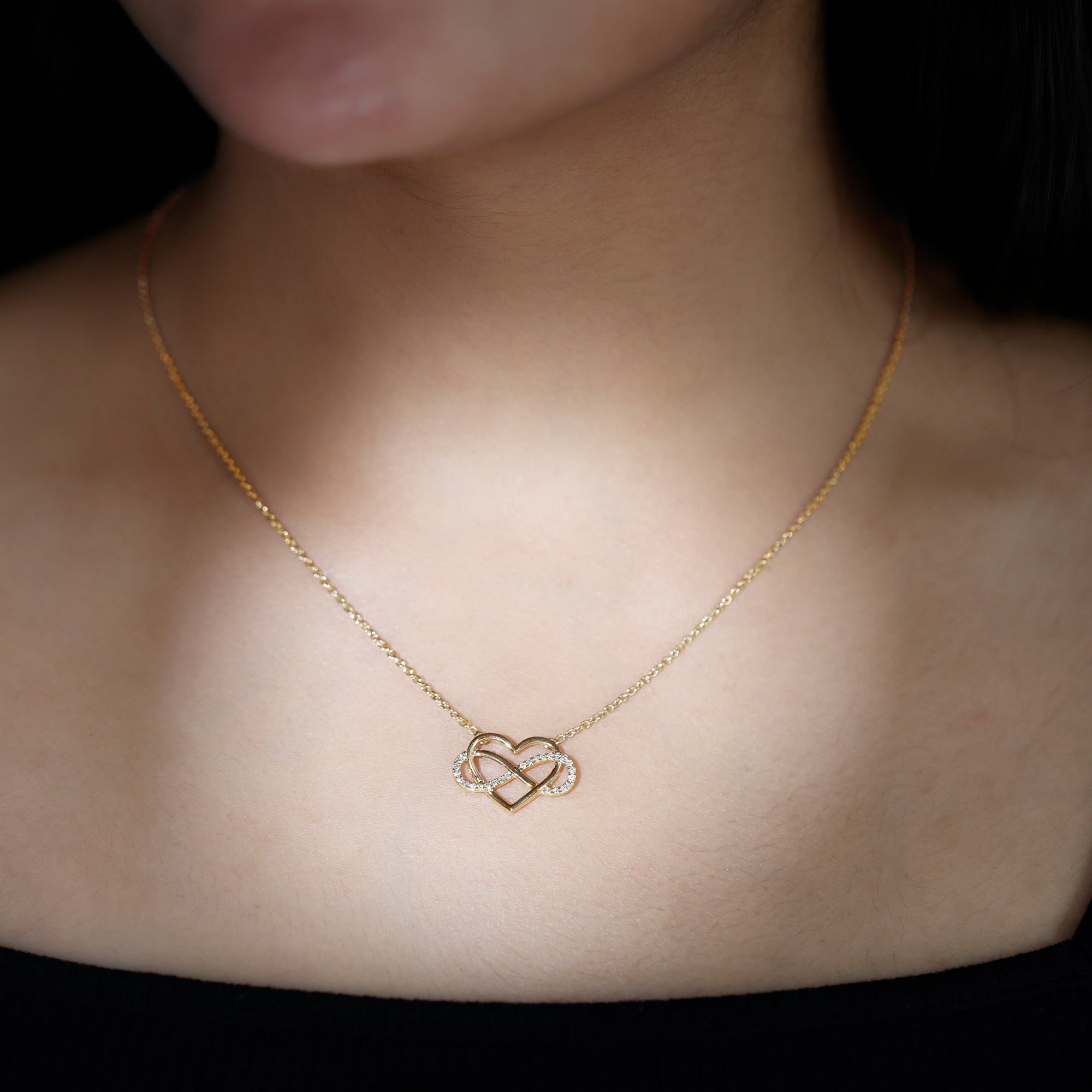 As proof of your everlasting love, this Diamond Necklace shimmers with meaning. This pretty Infinity Heart Necklace is a lovely way to show her how much you treasure her. Attached to a chain, this Necklace is adorned with a heart that is interwoven in the middle to form an infinity symbol, which is then decorated with Round brilliant cut Diamond. As a symbol of endless, enduring love, memories, and devotion, this Necklace shows that it only beats for you. This Infinity Knot Necklace showcases that love is forever with the unbreakable bond. Its endless loop is the timeless nature of true love, which is elegant and stylish. The beautiful entwines of Heart and Infinity is a wearable symbol of eternity and connection. It is also a unique blend of sophistication and sentimentality. Its minimal yet intricate design ensures that its craftsmanship is versatile and timeless. Standing in the test of time, this Infinity Symbol Necklace steals the spotlight as time transcends. AlSo, it is a cherished emotional artifact.