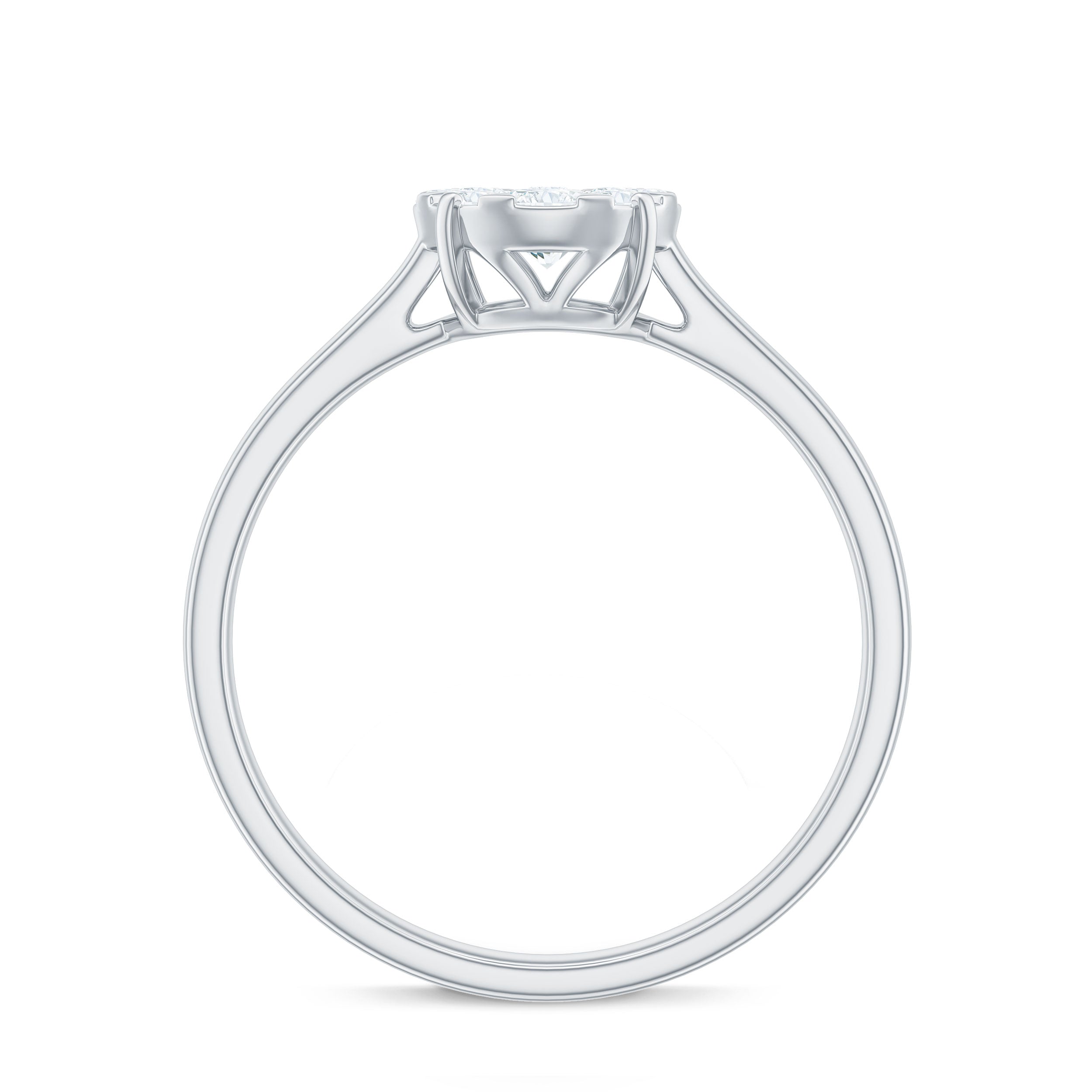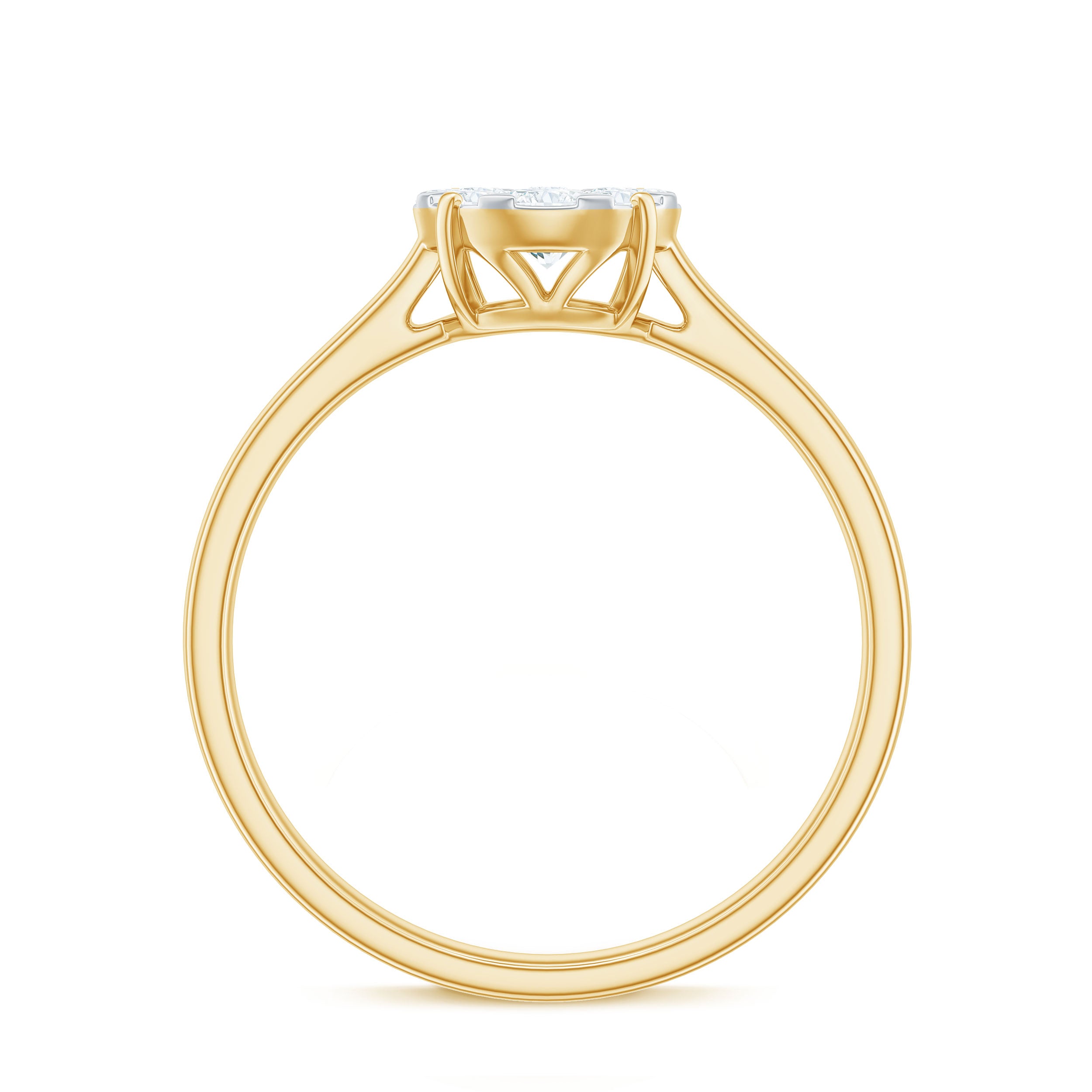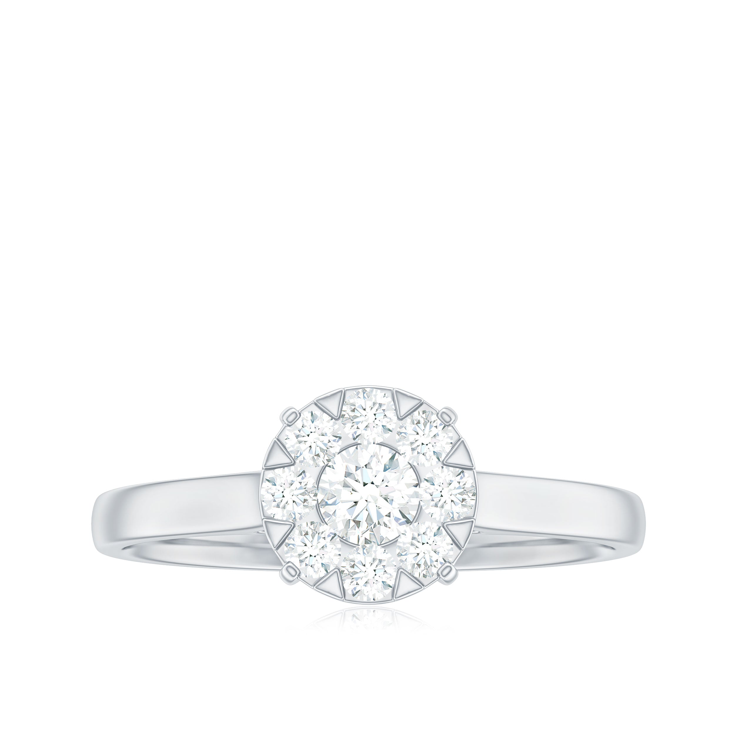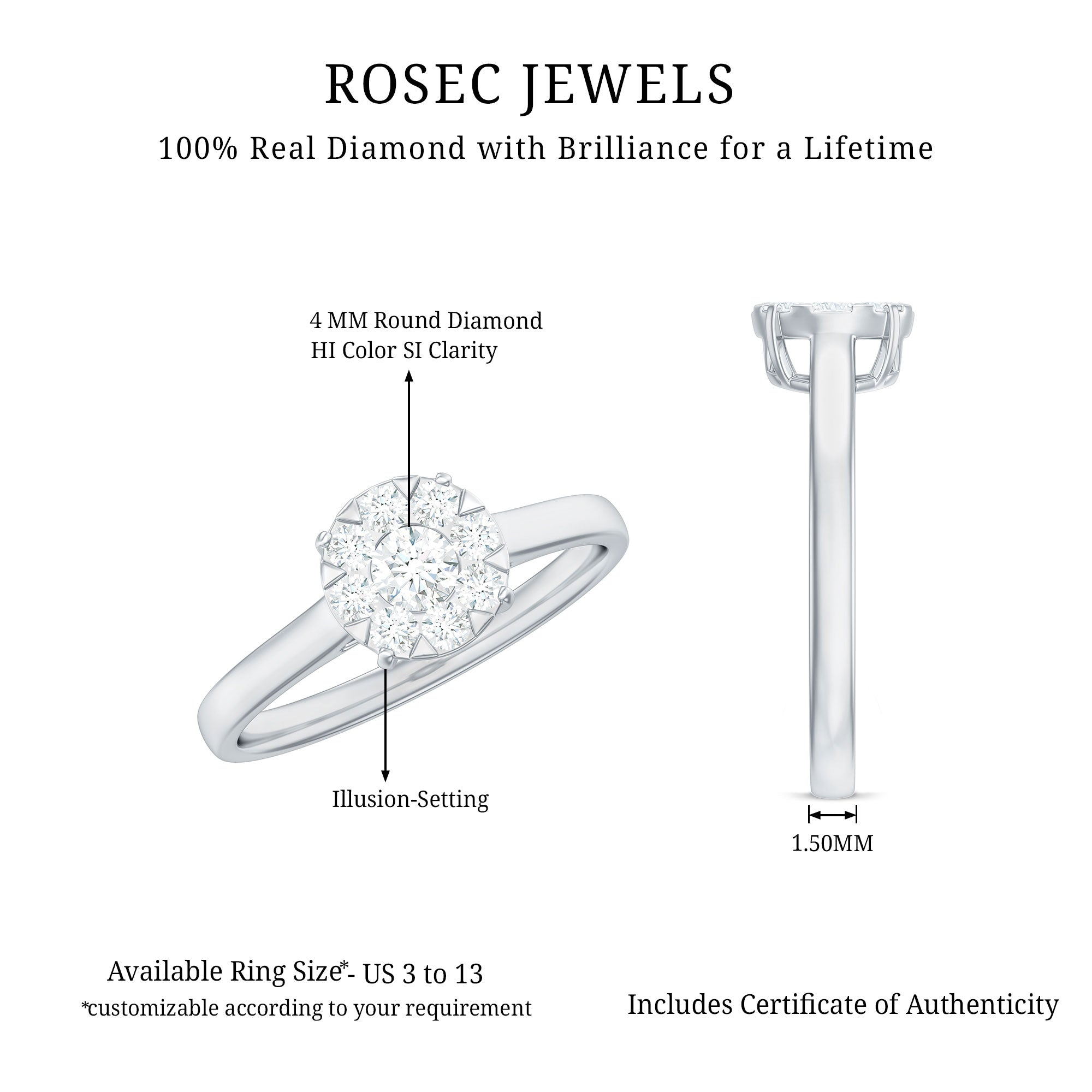 Blending sophistication with contemporary aesthetics, this Diamond Engagement Ring has a unique cluster style that incorporates sentimental heirloom gemstones. Amplifying centerpiece, this Ring is adorned with Round Shape Diamond in an Illusion Setting. Radiating uniqueness and timeless elegance, this Ring has brilliance with intricate design, which is a testament to craftsmanship and style. Capturing light from every angle, this Cluster Engagement Ring has an intricate pattern and striking appearance, which makes it a standout choice for the modern bride that blends tradition with individuality. The beautiful group of Diamonds symbolising unity and togetherness is a perfect metaphor for marriage. As a statement of love and timeless beauty, this Unique Engagement Ring symbolises your unique love story. As a mark for your special moment or as a cherished heirloom for generations, this Cluster Ring is a harmonious gathering of brilliance. Maximizing overall sparkle, the HI Color SI Clarity Diamond creates an optical illusion of a larger center gemstone.