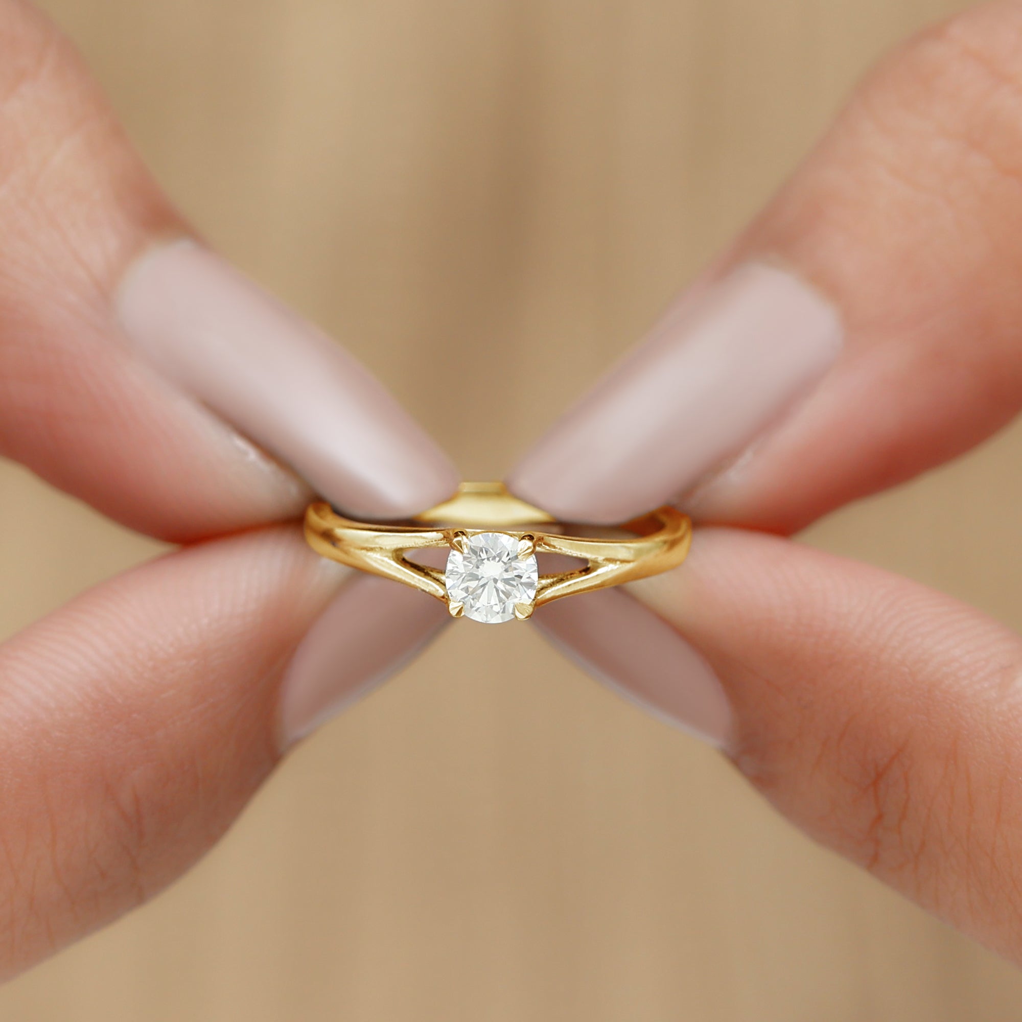 Seal your love with this chic and timeless Solitaire Diamond Ring, which perfectly represents an unbreakable connection and deep commitment. This Real Diamond Ring is a romantic way to express your promise, whether it is for a special occasion or just to show your feelings. It features a 4 MM Round Shaped Diamond set in Prong Setting as a Solitaire with a Split Shank. With its versatile design, this Diamond Promise Ring for Her boasts a minimalist look, making it an ideal commitment ring, birthday gift, anniversary present, or everyday jewelry piece. Every time she glances at the ring, it will remind her of your love and add a fairytale touch to your relationship. This Minimalist Ring is a lovely option to reinforce the vows of your partnership. The HI Color SI Clarity Natural Diamond embodies elegance and meaning, crafted to represent everlasting love. Since a diamond is the birthstone for April, this Split Shank Ring is a thoughtful gift for anyone born in that month or for those who appreciate a touch of elegance. It comes beautifully packaged, ready to be gifted as soon as it arrives, making it a fantastic choice for any celebration.