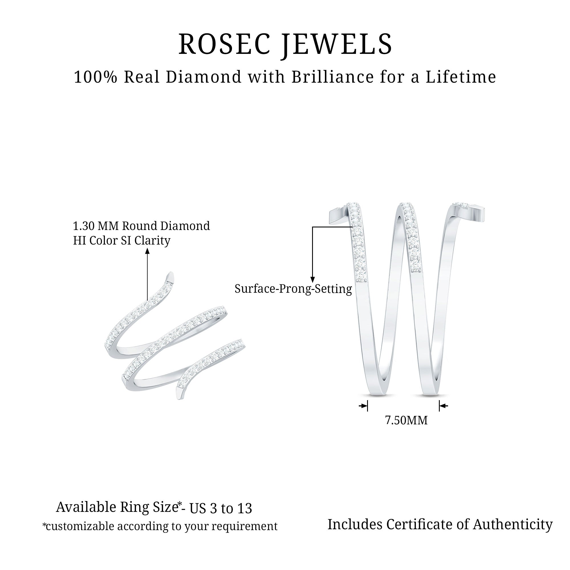 Indulge in a world of glamour with this stunning Diamond Wrap Ring! A beautiful array of Round Shape Diamonds, nestled in Surface Prong Setting, effortlessly adorns the top, showering it with sparkles. When you are ready to shine, pair this enchanting Diamond Spiral Ring with your most elegant outfits. You can show it off anytime without a second thought. This gorgeous Wrap Around Diamond Ring is simply mesmerizing. Crafted with genuine diamond gemstones, this Swirl Ring delivers remarkable brilliance, clarity, and fire. Whether worn as a statement Diamond Wedding Ring, an Anniversary Ring or a luxurious fashion piece, this beauty is perfect for those who love unique designs with a dazzling impact. Its a classic piece of jewelry that speaks of timeless beauty and deep emotions, designed for her to make a statement. Our Diamond Cocktail Ring comes in a premium box that can later be used to store the jewelry when not in use also, available in various sizes and metal color options.