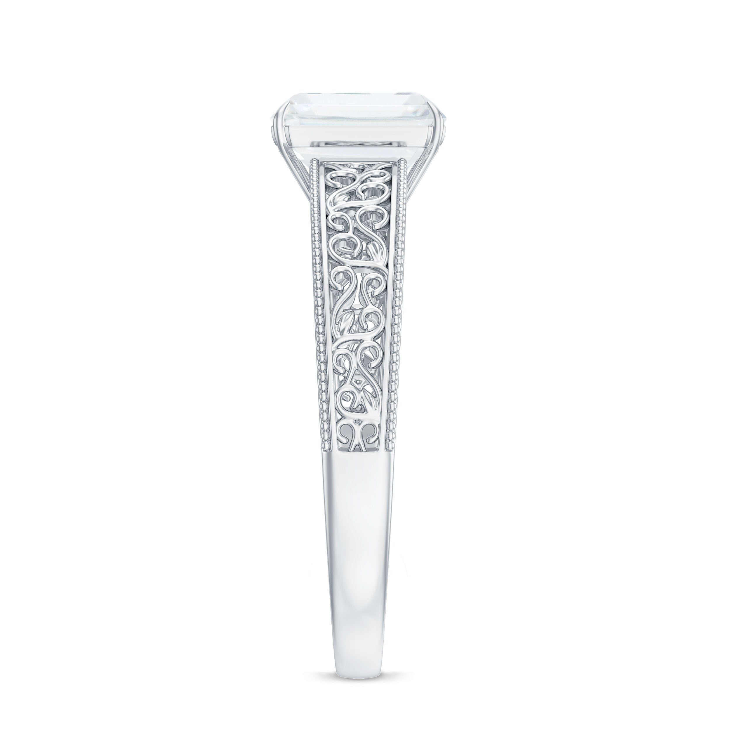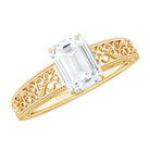 Certified Emerald Cut Moissanite Filigree Engagement Ring for Women