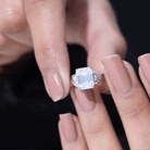 Certified Emerald Cut Moissanite Huge Engagement Ring