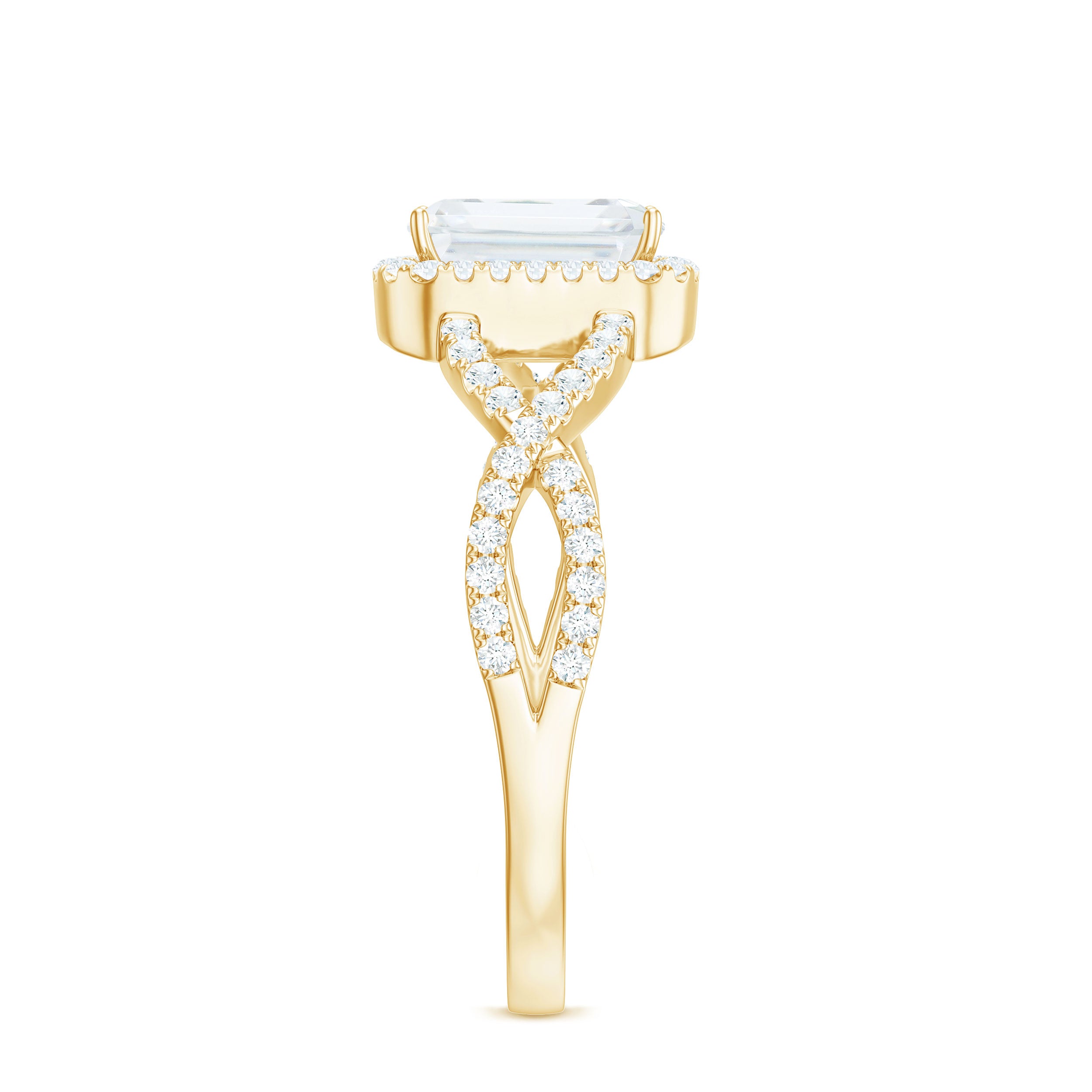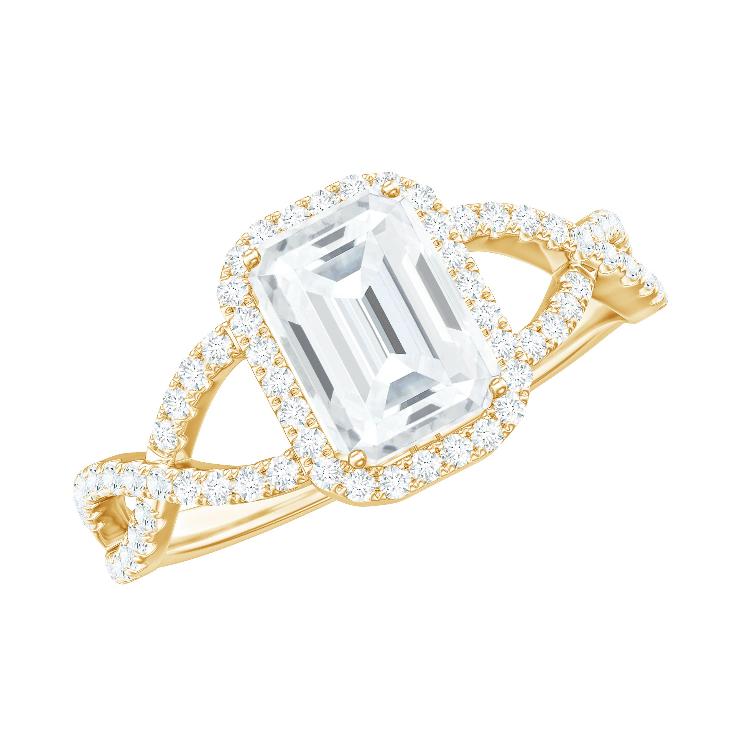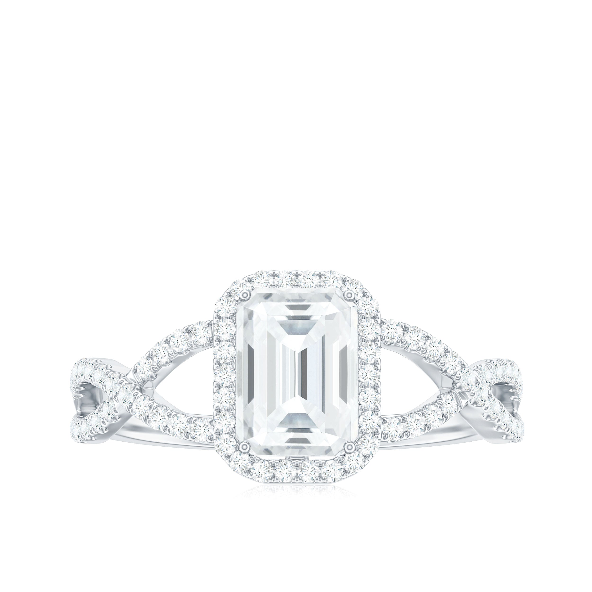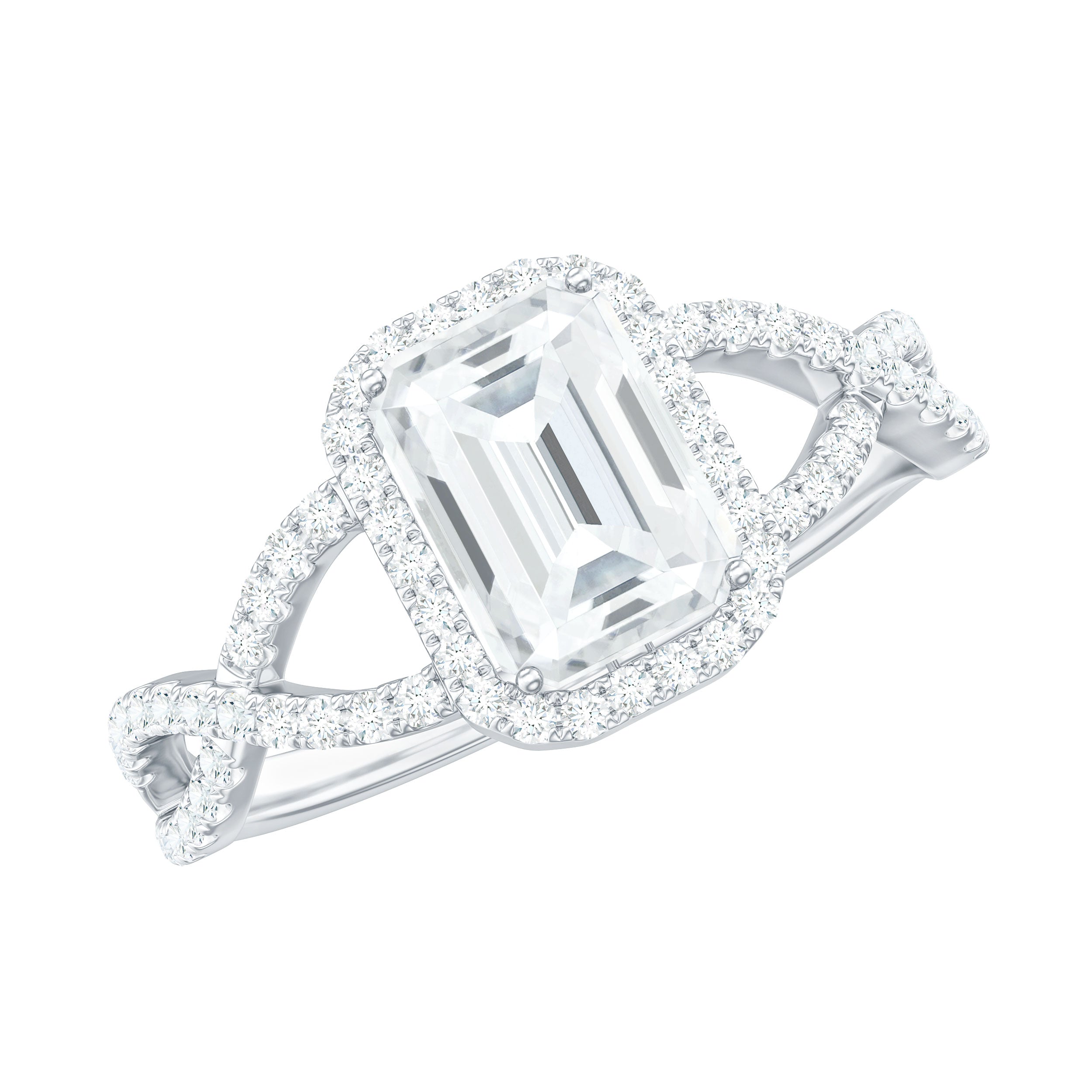 Certified Emerald Cut Moissanite Statement Ring with Crossover Shank
