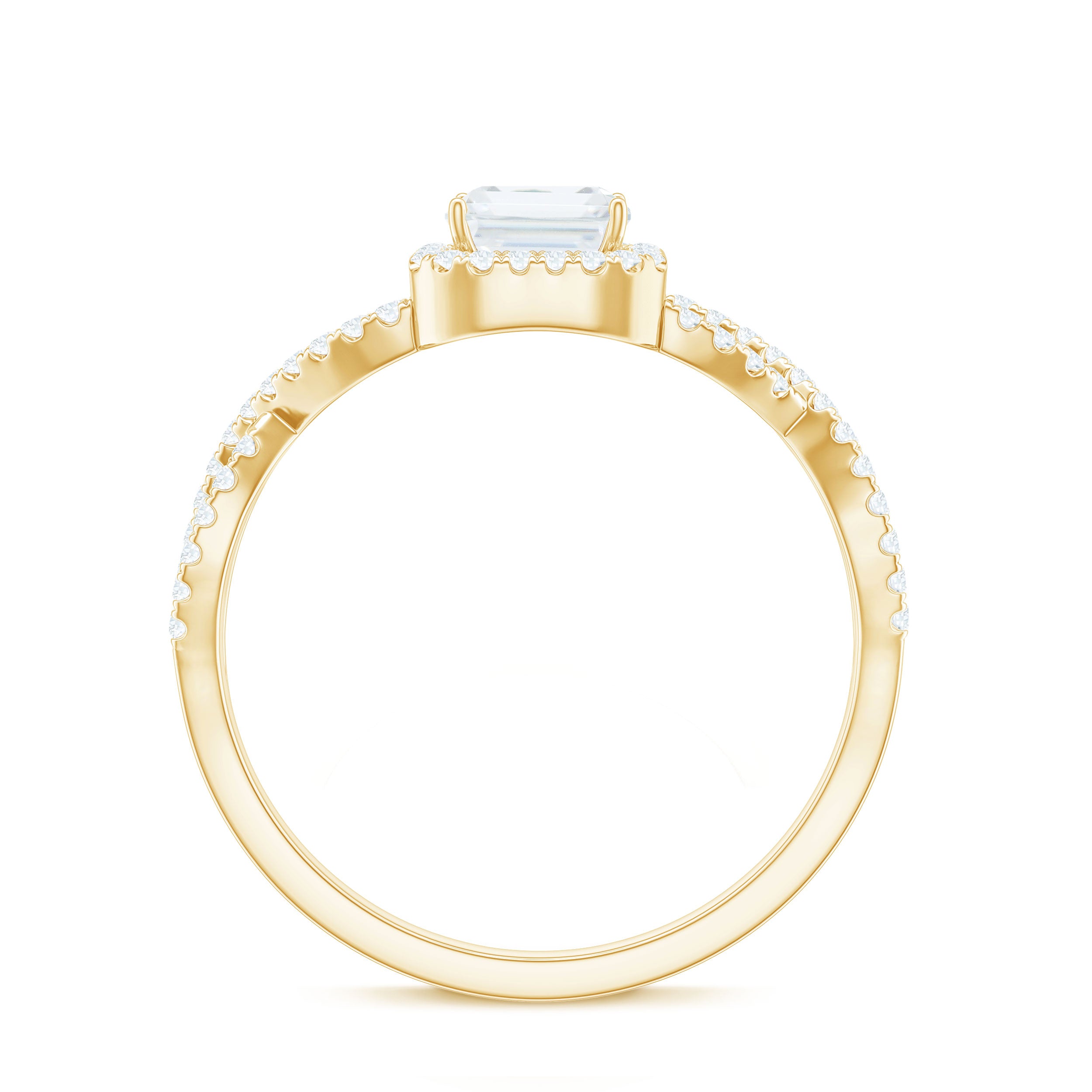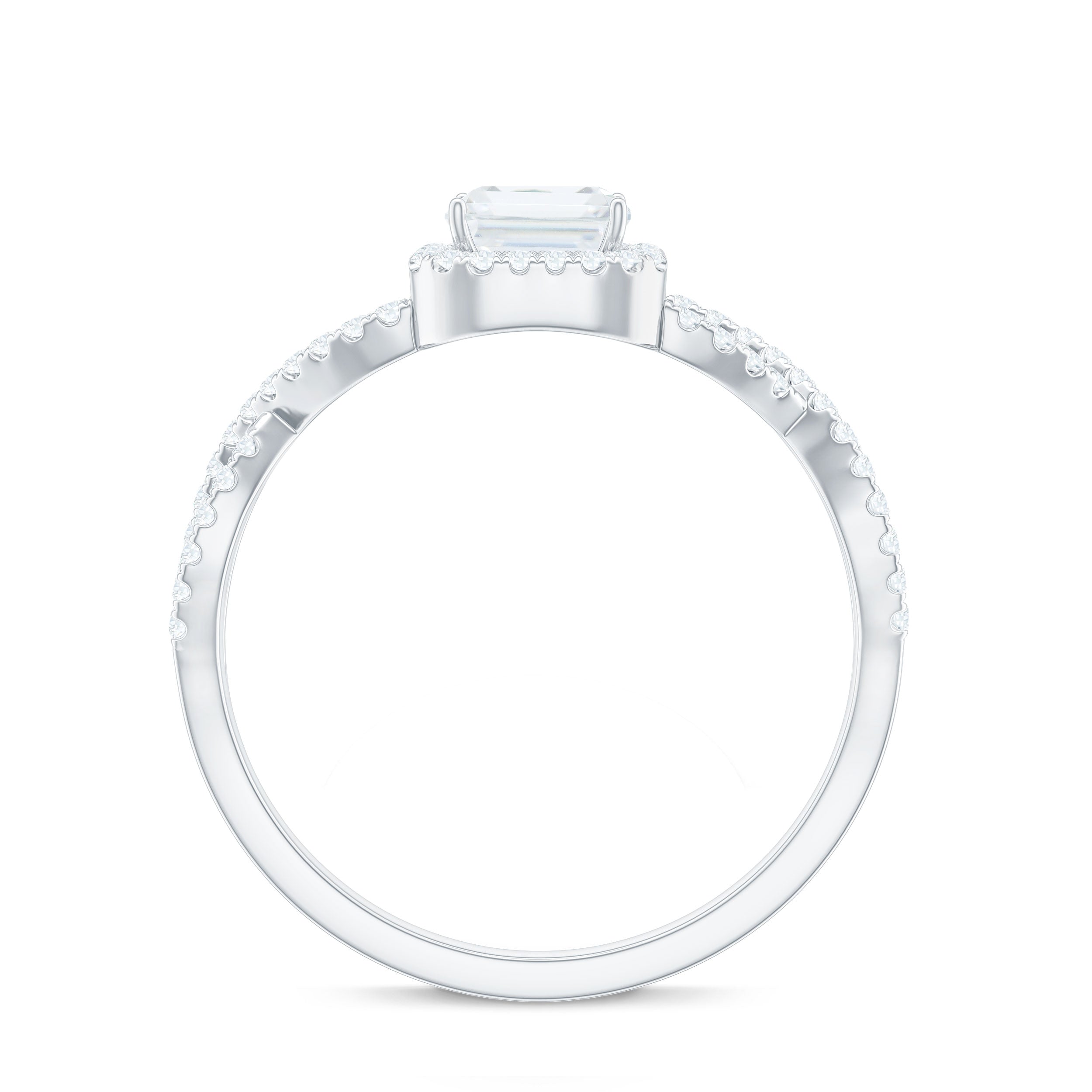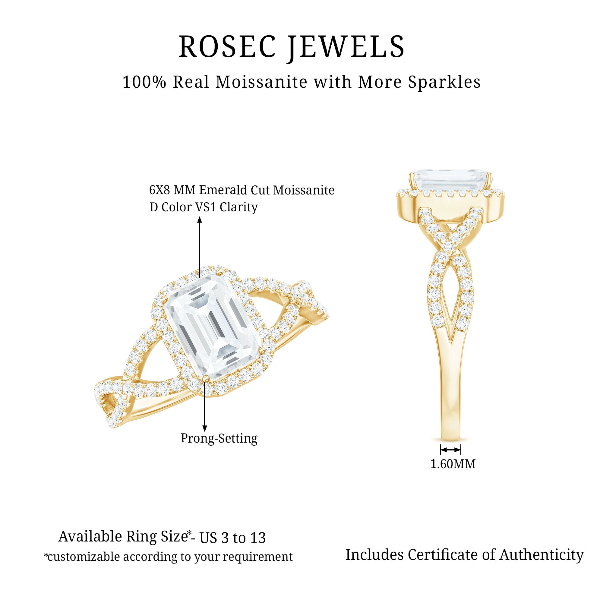 Check out this stunning Moissanite Engagement Ring that perfectly combines classic charm with a modern vibe. The band of this Emerald Cut Engagement Ring features two strands that twist together beautifully, giving it a braided look, adorned with dazzling round cut moissanites. This eye-catching design highlights a central 6X8 MM emerald cut moissanite, set delicately in prongs. Chic and delightful, this Crossover Ring symbolizes eternal love and showcases refined style. Its unique twist adds a playful touch of sophistication to this classic piece. This Halo Moissanite Ring is a thoughtful and wallet-friendly gift for your loved one. This Braided Engagement Ring is perfect for marking any special moment, whether it is an engagement, anniversary, or just a meaningful present. This Big Engagement Ring is a lovely way to show love, gratitude, and connection to someone dear. Gift this 2 Carat Moissanite Ring to that special person and let it be a lasting emblem of love and beauty.