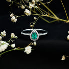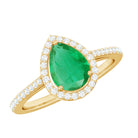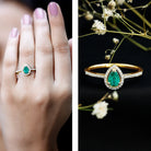 Certified Emerald Teardrop Engagement Ring with Moissanite Halo