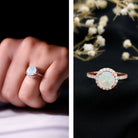 Certified Genuine 8mm Ethiopian Opal Engagement Ring with Halo
