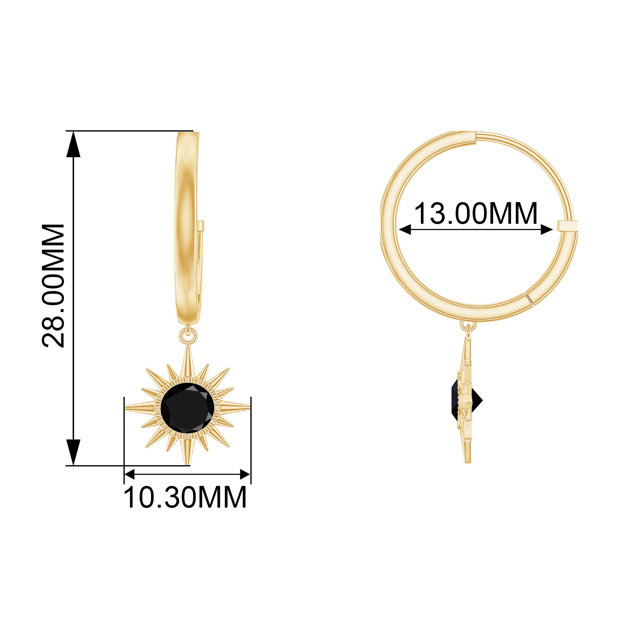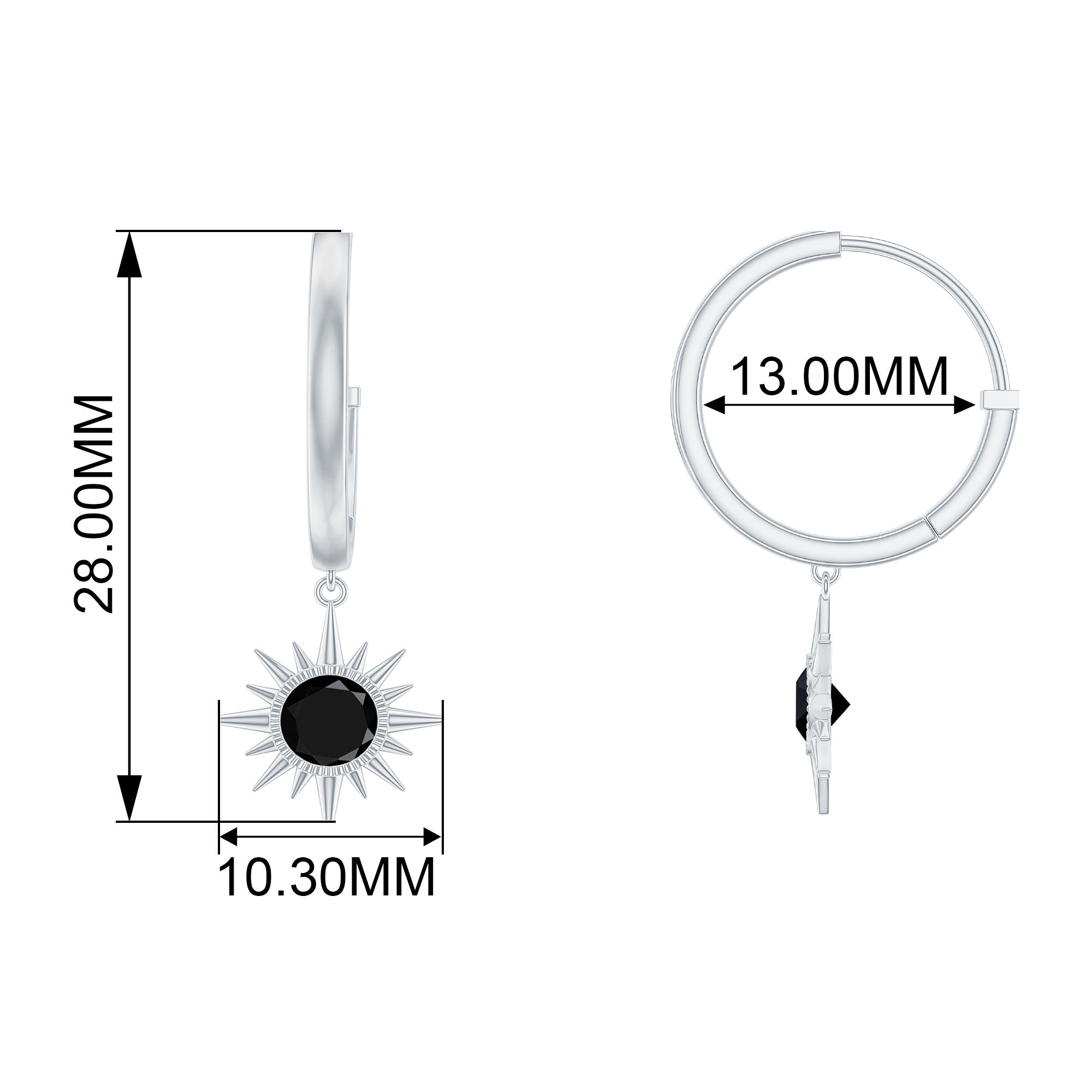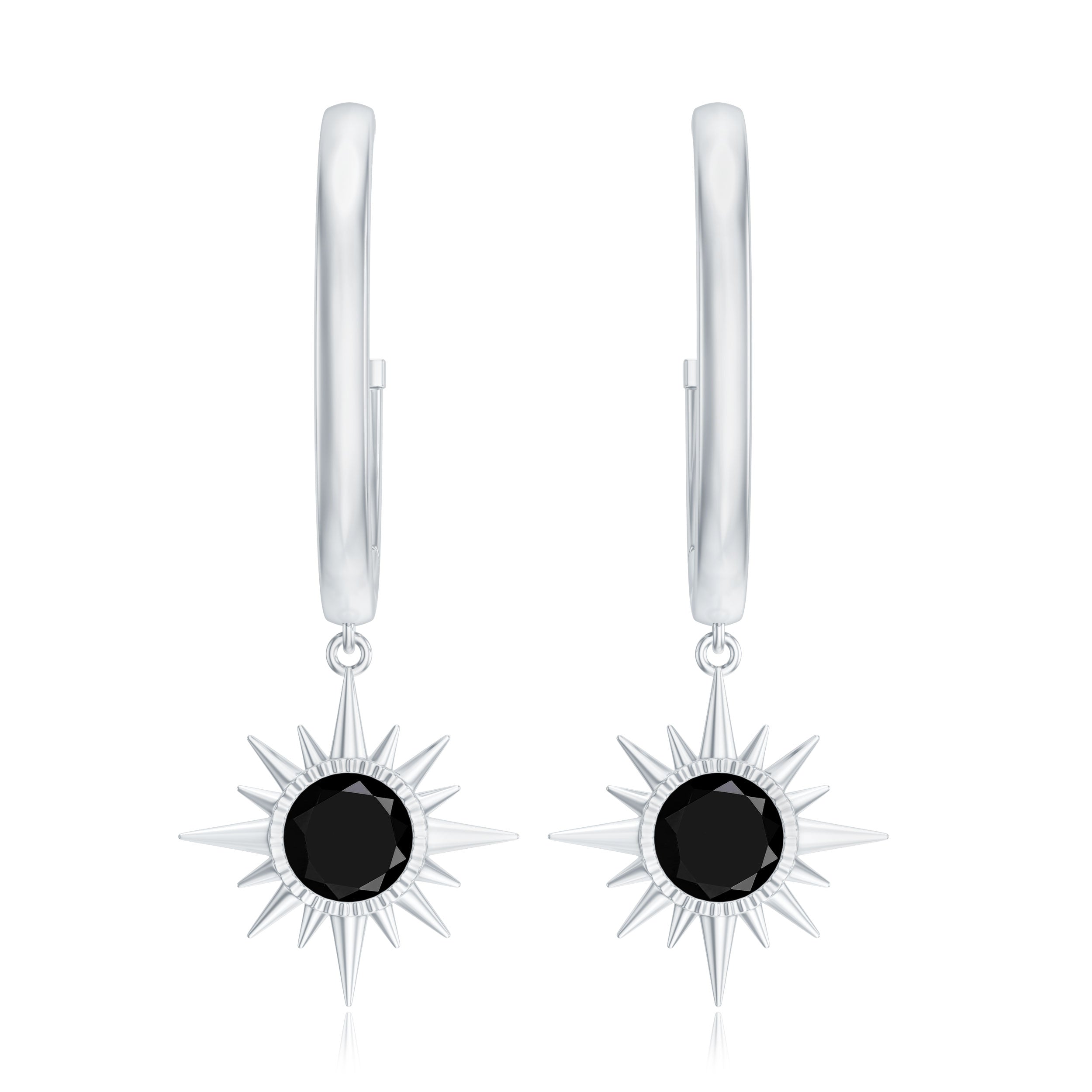 Radiating bold elegance and undeniable charm, these Sunburst Earrings are the perfect way to light up any occasion. The striking sunburst design features 4 mm Round Shape Black Diamond set in Bezel Setting, creating a captivating effect that catches the eye from every angle. The dark sparkle of the AAA Quality Black Diamond adds a touch of mystery and sophistication, while the hoop drop style brings a modern twist to a classic look. The Hinged Hoop Closure ensures a secure and comfortable fit, making these Hoop Drop Earrings as easy to wear as they are beautiful. Whether you are dressing up for a night out, adding some edge to a casual look or looking for a statement piece for a special event, these Black Diamond Earrings are the perfect choice. Their unique combination of boldness and elegance makes them versatile enough to pair with almost any outfit. Presented in an elegant jewelry box, these Black Diamond Hoop Earrings make a stunning gift for someone special or a fabulous treat for yourself.