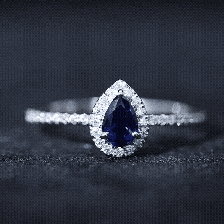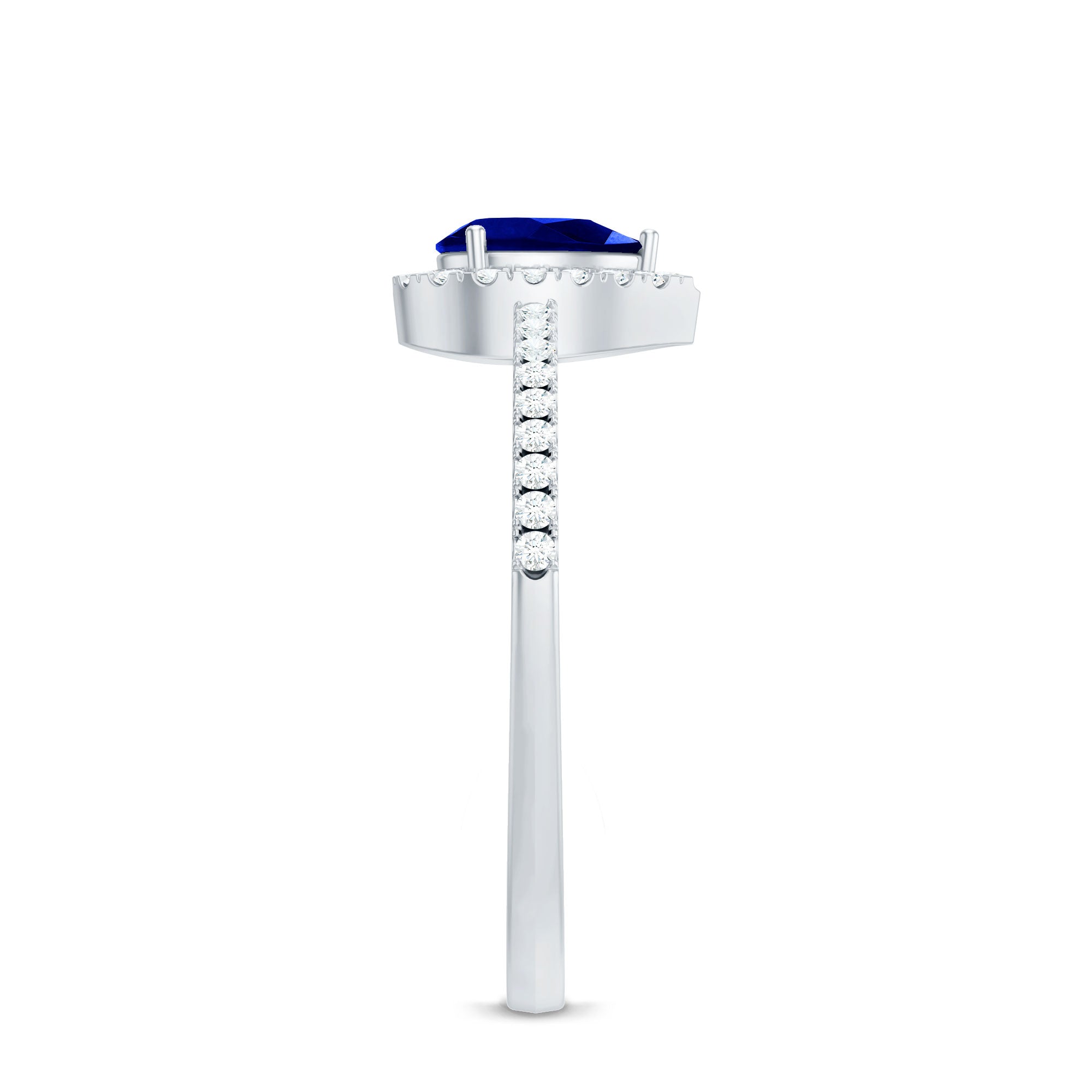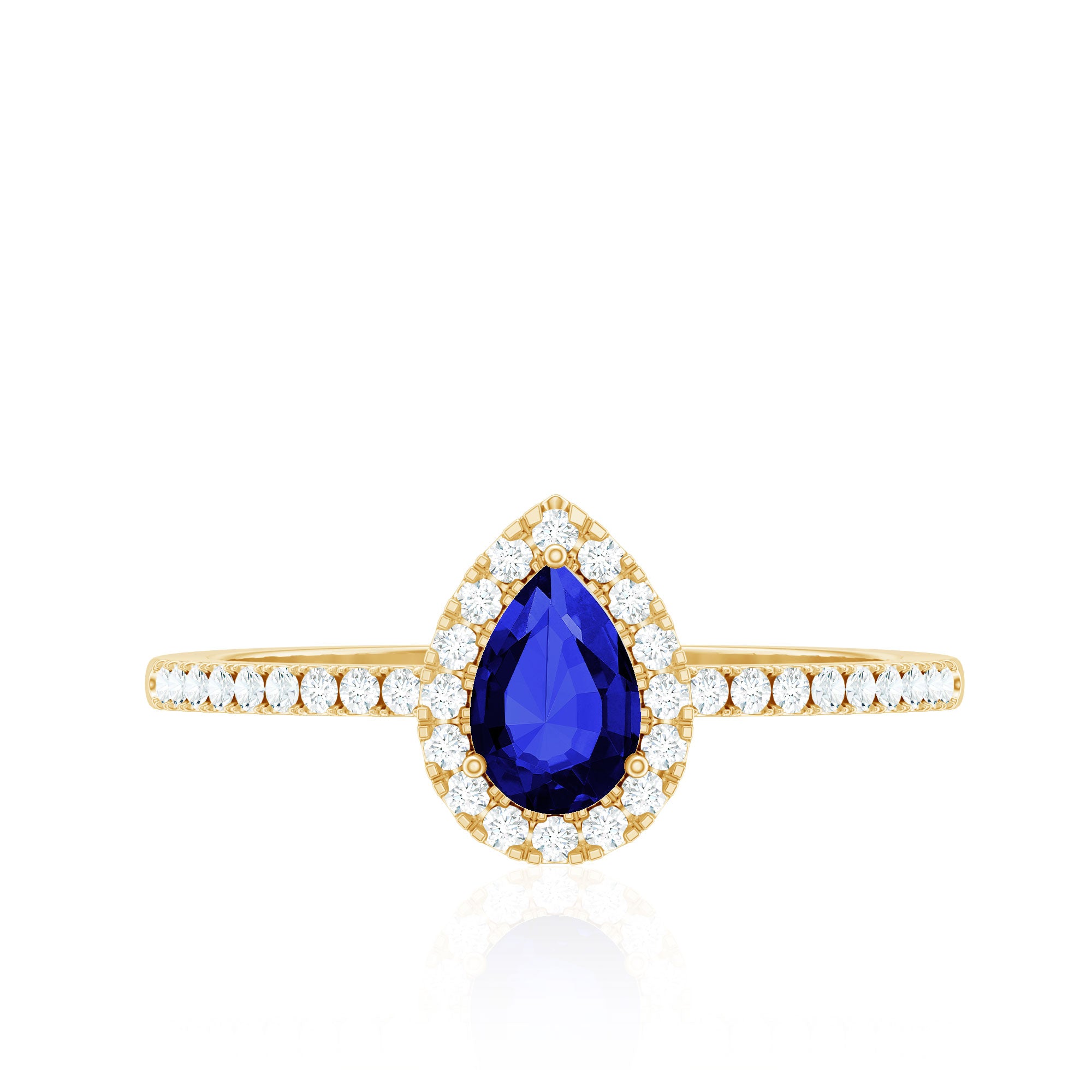 Make her feel special with a ring that captures the essence of elegance and everlasting love. This Teardrop Engagement Ring showcases a 4X6 mm Pear Shape Lab Created Blue Sapphire set in 3 Prong Setting, perfectly embraced by a Halo of sparkling Diamond stones that amplify its brilliance. The Diamond stones continue along the band, adding shimmer from every angle and turning every movement of the hand into a moment of enchantment. Its graceful teardrop shape symbolizes tears of joy and the beauty of a love that grows deeper with each passing day. Meticulously crafted, this Lab Grown Blue Sapphire Engagement Ring blends contemporary design with a touch of classic glamour, making it a statement piece that will be cherished forever. Delivered in a signature jewelry box, this Pear Shaped Engagement Ring comes in a variety of ring sizes to ensure the perfect fit, ready for the unforgettable moment when you say forever. Whether it marks a proposal, an anniversary or a milestone, its luminous design and elegant craftsmanship make this Lab Blue Sapphire Diamond Ring a treasure that will be admired and adored for generations, turning every glance into a celebration of devotion.