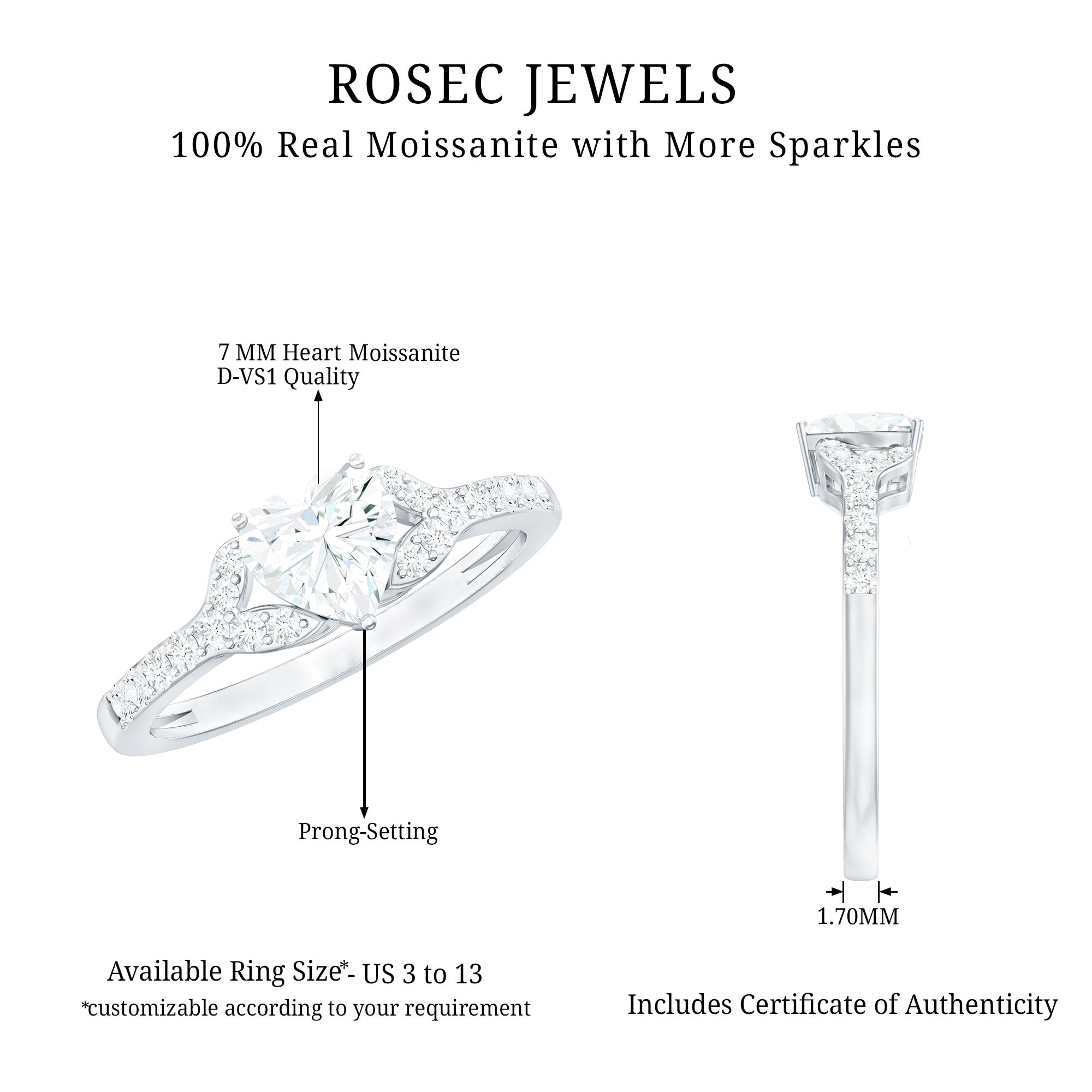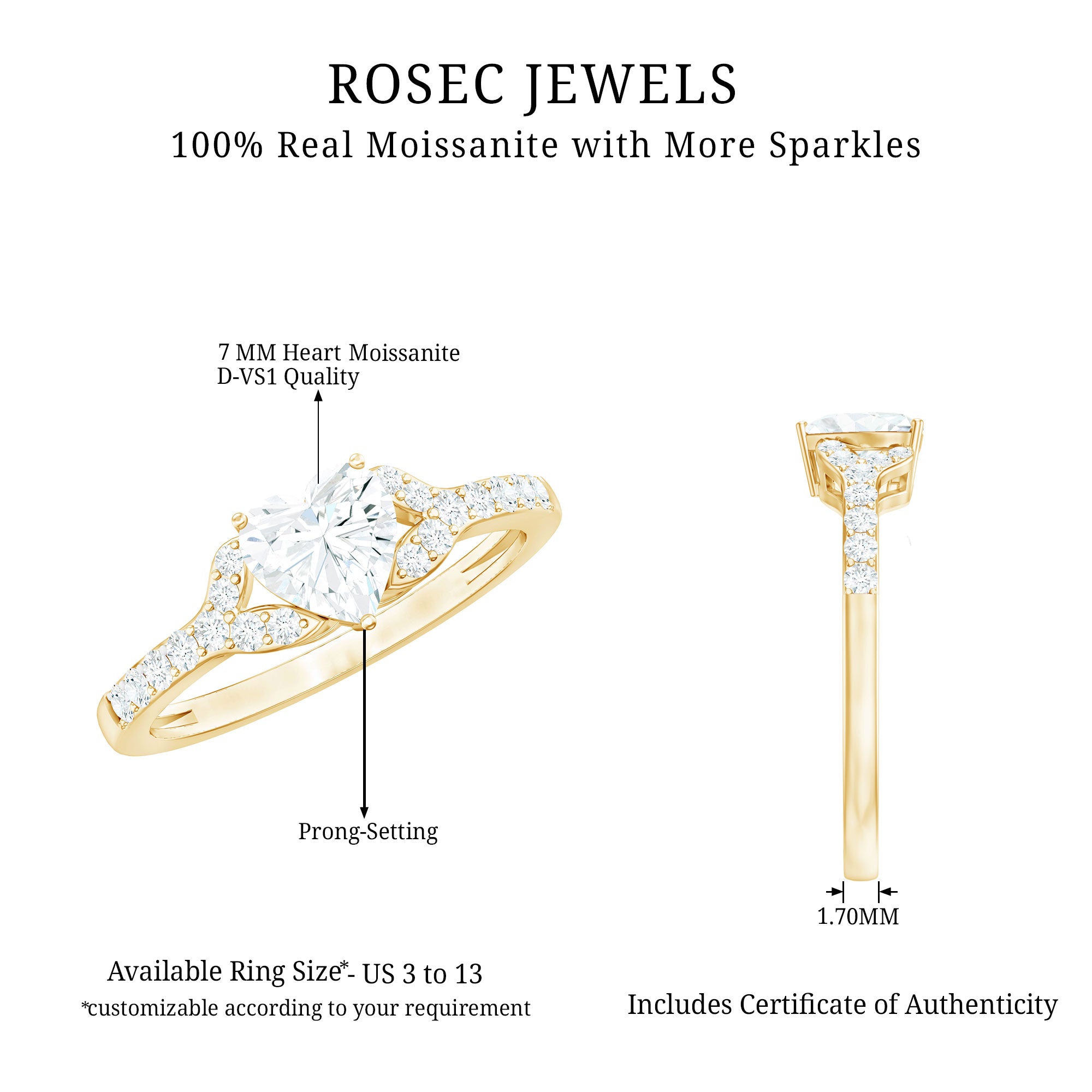 Capture your loved one’s heart with this beautiful Heart Engagement Ring, designed to symbolize romance and the promise of forever. At the center of the ring sits a stunning 7 MM heart shaped moissanite, held securely in prong setting that allows the stone to shine with incredible brilliance. Its shape represents love in its purest form, making it a perfect choice for someone who appreciates sentimental and meaningful jewelry. Adding even more sparkle, the unique band features small moissanite side stones that enhance the center gem. Crafted with care and designed for everyday comfort, this Moissanite Engagement Ring is both durable and beautiful. Whether you are proposing, celebrating an anniversary, or gifting a token of love, this Moissanite Heart Ring makes a meaningful and thoughtful choice. With its bright sparkle and heartfelt design, it is sure to be treasured for years to come.