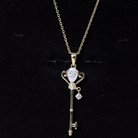 Unlock a Sweet relationship with this Key Pendant Necklace. This beautiful pendant features metal key embedded with the 5X7 MM Pear Shape Lab Grown Diamond as a center stone along with the Diamond charm. This Key Charm Pendant dangles with the help of an Accented Bail, adding more shine to the overall design. This Necklace with Key makes a wonderful gift for birthdays, anniversaries, Valentines Day, Christmas, New Year, holidays, Mothers Day, or any special celebration.