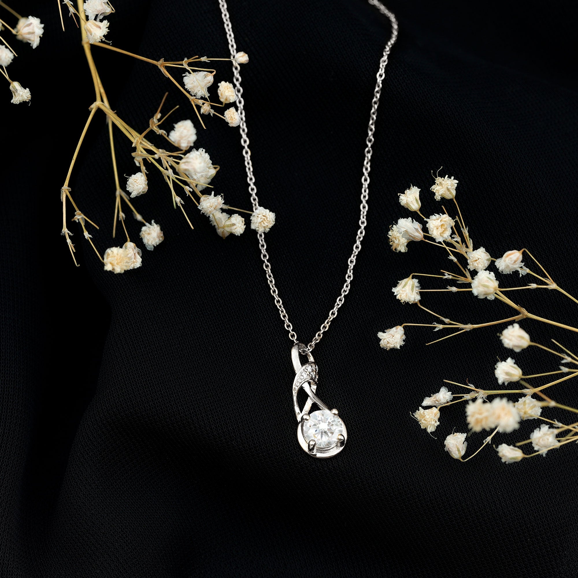 Make yourself the talk of the town with this Diamond Infinity Necklace. Handcrafted with care, this Simple Pendant features a sleek, vertical infinity sign, skillfully designed with high-Quality metal. A 6 MM round cut diamond (lab grown) is set in prong setting at the bottom of the Infinity Sign Necklace with a unique curved pattern decorated with smaller gemstones. Our Diamond Pendant Necklace is a symbol of forever love, perfect for gifting on special occasions such as Valentines Day, Anniversaries, Birthdays, New Year, Christmas, and many more.