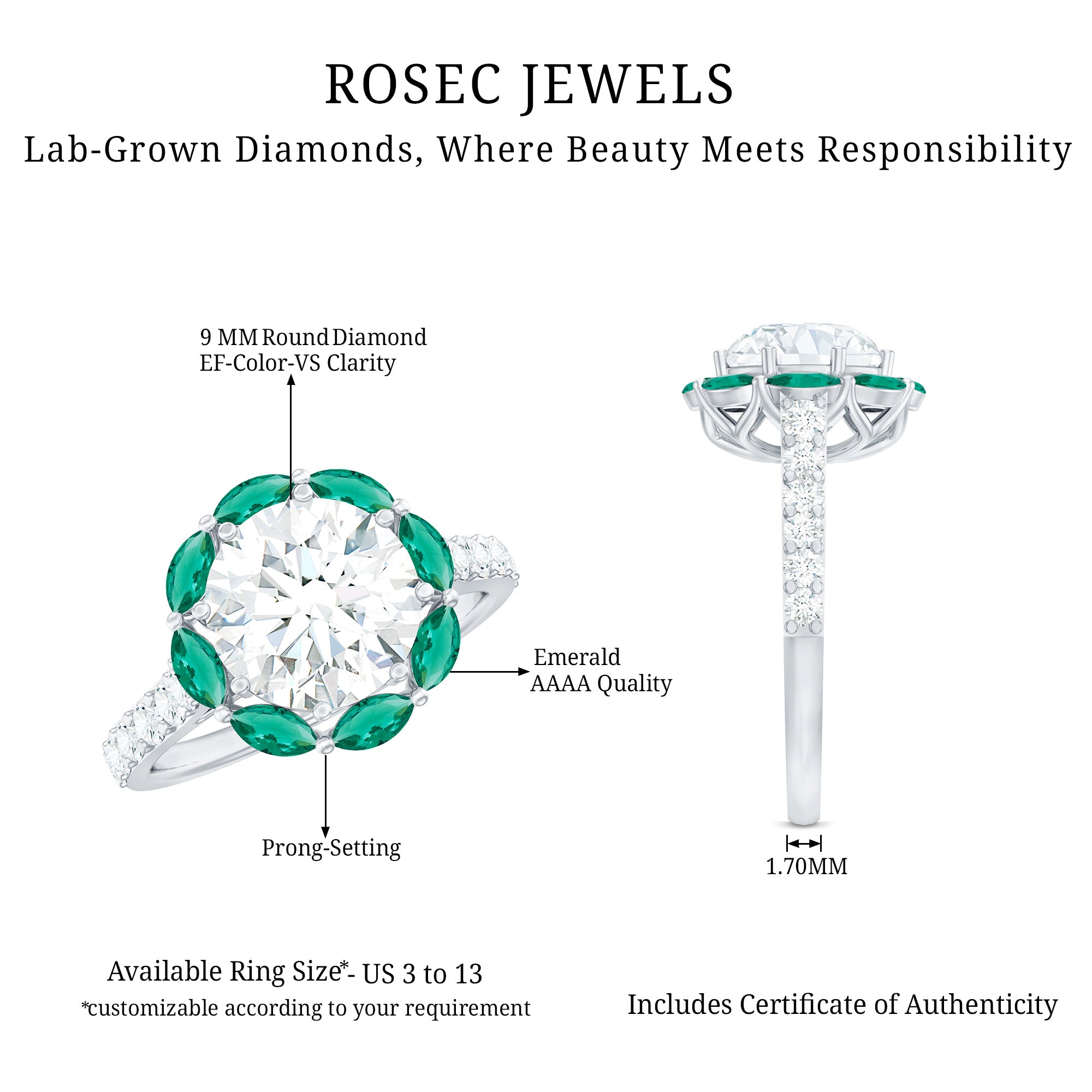 Certified Lab 9 mm Diamond Emerald Designer Engagement Ring