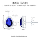 Designed to dazzle from every angle, these Teardrop Stud Earrings are all about making a statement without trying too hard. Each earring showcases a 6X8 MM pear shaped lab created blue sapphire of AAAA quality, perfectly set in secure prong setting. Surrounding the sapphire is a halo of sparkling round diamonds (HI-SI quality), adding brilliant shimmer that enhances the natural allure of the center stone. Perfect for women who love jewelry that mixes modern elegance with timeless charm, these Blue Sapphire and Diamond Earrings are versatile enough to complement evening wear for a glamorous occasion or to add a touch of luxury to everyday outfits. Crafted with precision and care, these Pear Shaped Blue Sapphire Earrings feature a secure screw back closure, ensuring comfort and reliability throughout the day. The thoughtful design balances elegance and style, making these Halo Stud Earrings an ideal gift for birthdays, anniversaries, or any special milestone.