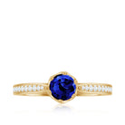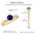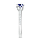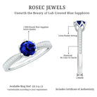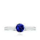 Certified Lab Created Blue Sapphire Minimal Engagement Ring with Diamond Side Stones