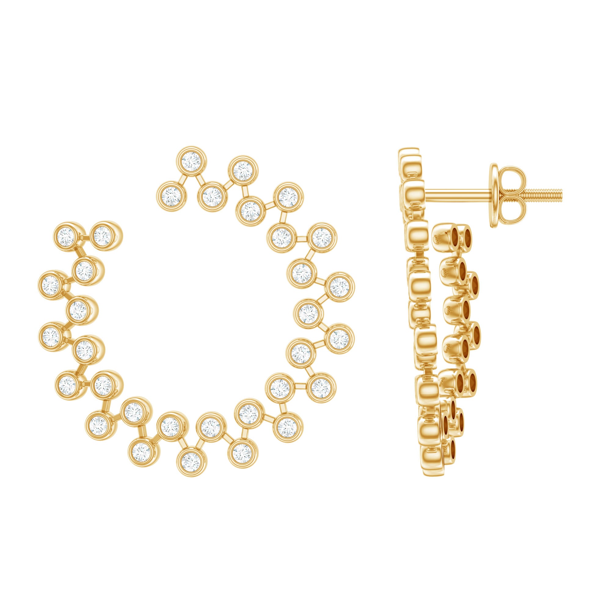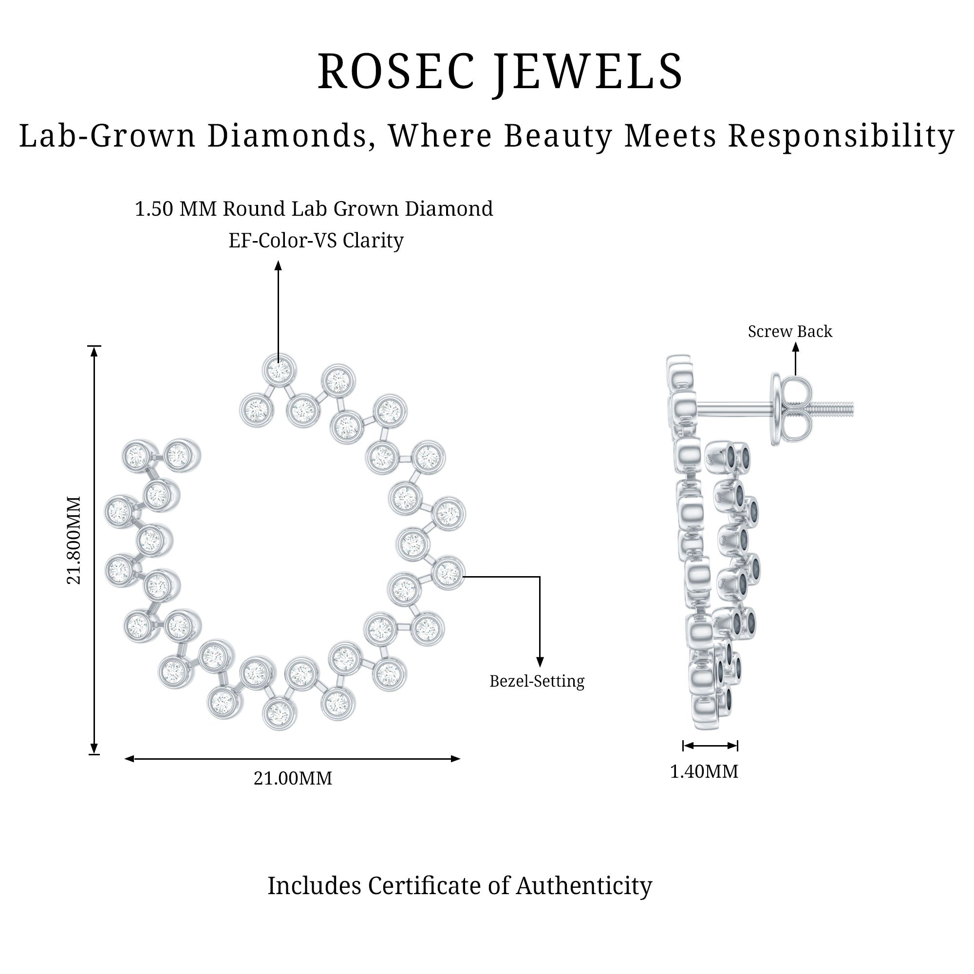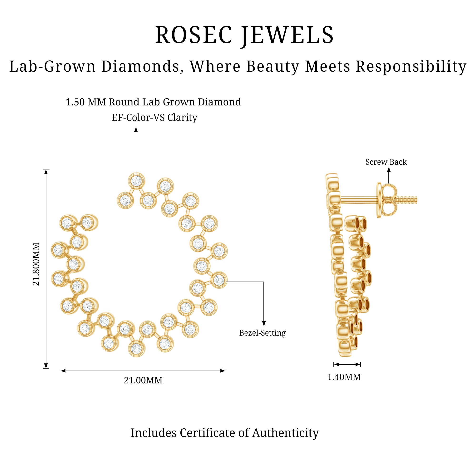 Discover the perfect balance of timeless beauty and modern flair with these exquisite Diamond Circle Earrings, crafted with care and adorned with round cut lab grown diamonds in a captivating scatter style. Each lab made diamond is bezel set to ensure maximum brilliance and perfect security. Designed for those who love understated luxury, these Circle Stud Earrings are perfect for cocktail parties, wedding celebrations, formal dinners, or adding sparkle to your everyday wardrobe. The contemporary yet classic design makes these Lab Grown Diamond Stud Earrings an ideal gift for brides-to-be, anniversaries, birthdays, or special moments that deserve something truly memorable. These Open Circle Earrings features secure screw back closures, offering both comfort and confidence with every wear. Ethically crafted using lab created diamonds, they deliver not just beauty, but also a commitment to conscious luxury, making them a thoughtful choice for the modern woman. To elevate your gifting experience, these Designer Diamond Earrings come beautifully packaged in a premium jewelry box.