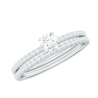 Simple yet sophisticated, this Lab Grown Diamond Wedding Set is a truly enchanting piece that will make you fall in love again and again. The grace and elegance of the Bridal Ring Set warms her heart and sparkles on her finger. Celebrate all your beautiful moments with this stunning Diamond Engagement Ring Set, which serves as a unique symbol of your love. The brilliant Engagement Ring features a 5 MM round cut lab grown diamond secured by peg head setting in a high-profile style for maximum brilliance, complemented by minimalist side stones. Accompanying the engagement ring is the wedding band, adorned with delicate lab made diamonds in a half eternity design. Enjoy every moment and solidify your vows with this Diamond Wedding Ring Set. This Engagement Ring and Wedding Band Set is a significant investment, showcasing EF-VS quality lab grown diamonds. Our skilled artisans have crafted it to perfection, creating a bespoke masterpiece that is exclusively designed for your special occasions, whether it be an Anniversary, Wedding, or Engagement.