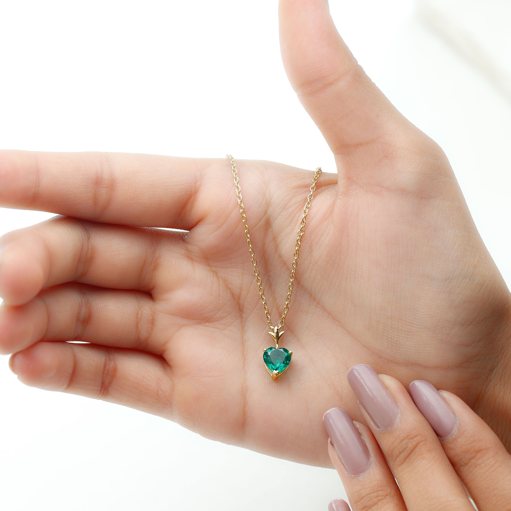 Embark on your new journey with this Lab Grown Emerald Necklace that serves as a reminder of an unforgettable experience that captures emotions. A stunning 7 MM heart-shaped lab created emerald takes the spotlight, held securely in prong setting that allows the gemstone to shine from every angle. The Emerald Heart Necklace hangs gently from a delicate chain, offering a lightweight feel that makes it perfect for everyday wear. Its simple heart design keeps the focus on the gemstone, creating a look that is elegant and easy to style with any outfit. Presented in a lovely jewelry box, it is ready to be shared as a thoughtful gift, whether expressing affection, showing appreciation, or treating yourself to something meaningful. The green sparkle draws compliments effortlessly, making you feel confident and radiant each time you wear it. Designed for anyone who loves jewelry that carries both beauty and emotion, this Solitaire Heart Necklace becomes a cherished piece that brightens ordinary days and adds a touch of charm to special moments alike.