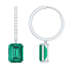 Certified Lab Created Emerald Hoop Drop Earrings in Silver