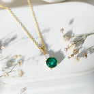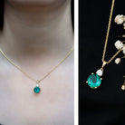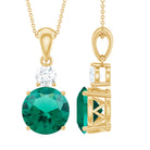 Let your style speak volumes with a necklace that is made to stand out and shine in every moment. Thoughtfully crafted in 14K yellow gold plated silver, this Solitaire Emerald Necklace brings a modern twist to a timeless design. At the heart of the piece lies a 9 MM round cut lab created emerald of AAAA quality, secured in prong setting that allows the gemstone to sit beautifully, catching the light from every angle. Just above it, a 4 MM round brilliant cut moissanite of D-VS1 quality adds a touch of sparkle and contrast, creating a balanced and eye-catching look. The Round Emerald Necklace dangles from a sleek, durable chain through a bail, giving it a fluid, graceful movement when worn. Whether layered with other pieces or worn solo, this Emerald and Moissanite Necklace adds just the right amount of elegance to your everyday or special occasion outfits. Designed to celebrate love, milestones, or simply your own journey, this Emerald Pendant makes a thoughtful gift or a meaningful addition to your personal collection. Its minimalist yet refined design ensures it can be worn day after day, always adding a hint of charm and sophistication.