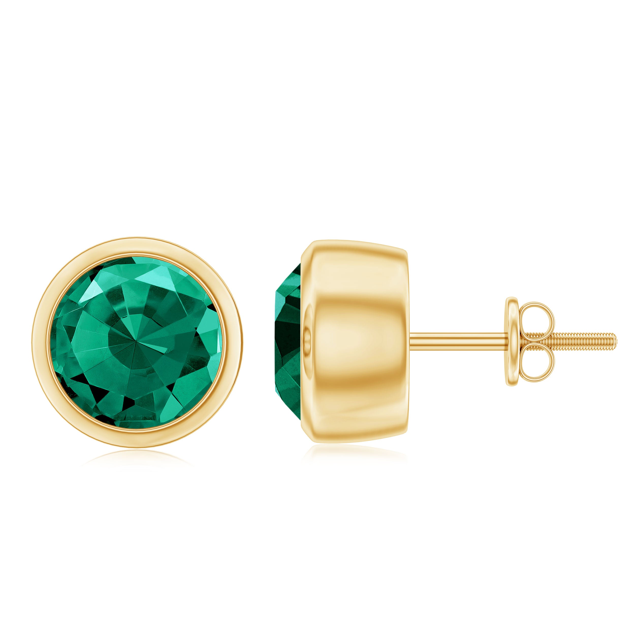 Certified Lab Created Emerald Stud Earrings in Bezel Setting