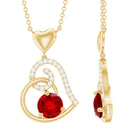 Certified Lab Created Ruby and Diamond Heart Necklace