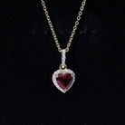 Certified Lab Created Ruby Heart Necklace with Diamond Halo