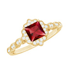 Certified Lab Created Ruby Square Cut Engagement Ring with Diamonds