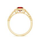 Celebrate your love with this beautiful Ruby Engagement Ring, designed to reflect timeless charm and elegance. At the center of the Vintage Halo Engagement Ring is a 6 MM Princess Cut Lab Created Ruby, held in secure prong setting. Surrounding the ruby is a lovely floral halo made of lab grown diamonds. The floral pattern adds a soft, romantic touch that feels both vintage and special. The band of the Ruby and Diamond Ring features a scalloped design studded with sparkling stones, adding a bit of texture and detail. It gives the Vintage Ruby Ring a graceful look, making it stand out while still being easy to wear every day. The vintage style design brings a sense of history and romance, perfect for starting a new chapter together. This Flower Engagement Ring is crafted with care, using high quality materials like AAAA quality Lab Made Ruby and sparkling EF-VS quality lab grown diamonds. It is a beautiful choice for an engagement, combining elegance, tradition, and unique style in one stunning piece. Let your love story begin with a ring that feels meaningful and timeless, a true reflection of your journey ahead.