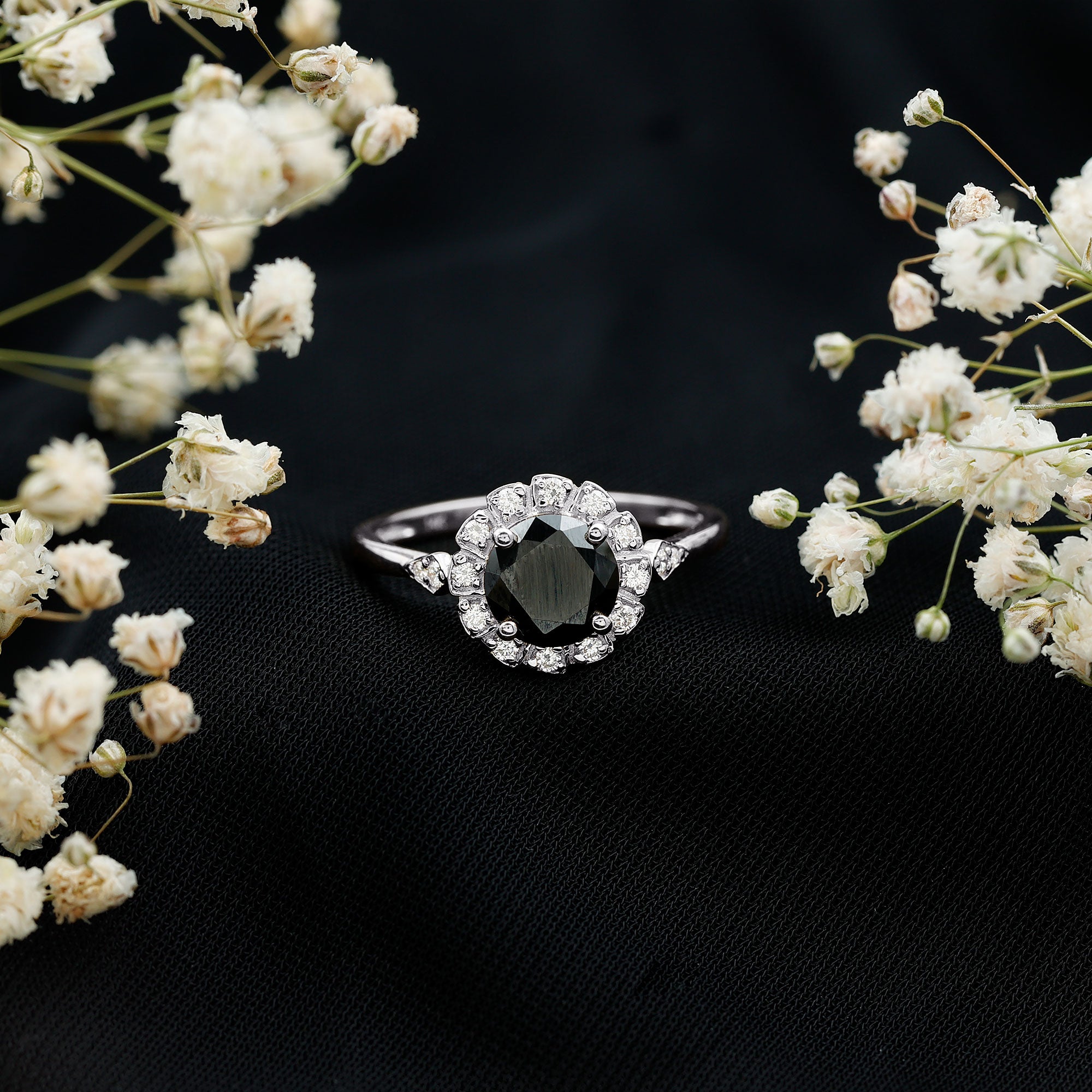 Certified Lab Grown Black Diamond Engagement Ring with Diamond Accent