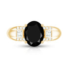 This Solitaire Ring is a delightful accessory crafted with Solid Metal and embellished with Oval Cut Lab Grown Black Diamond secured by Prong Setting while Princess and Round Diamonds studded on the shank. Wear our Lab Grown Black Diamond Ring on any special occasion to stand out from the crowd. Present this ring to your wife and make her feel special on your 1st anniversary.