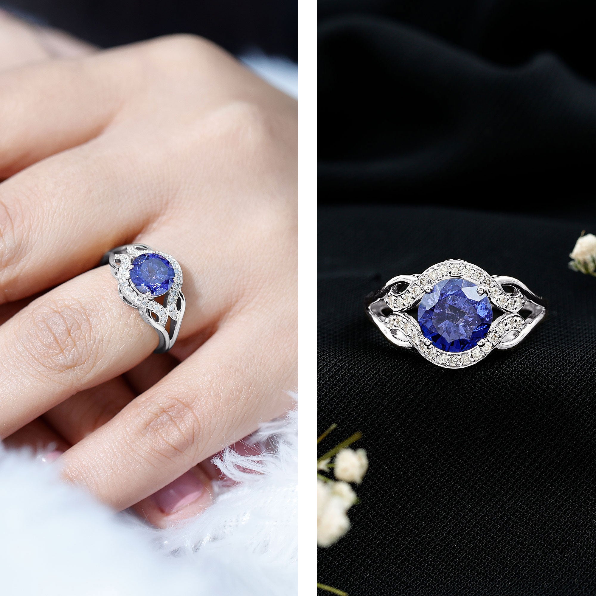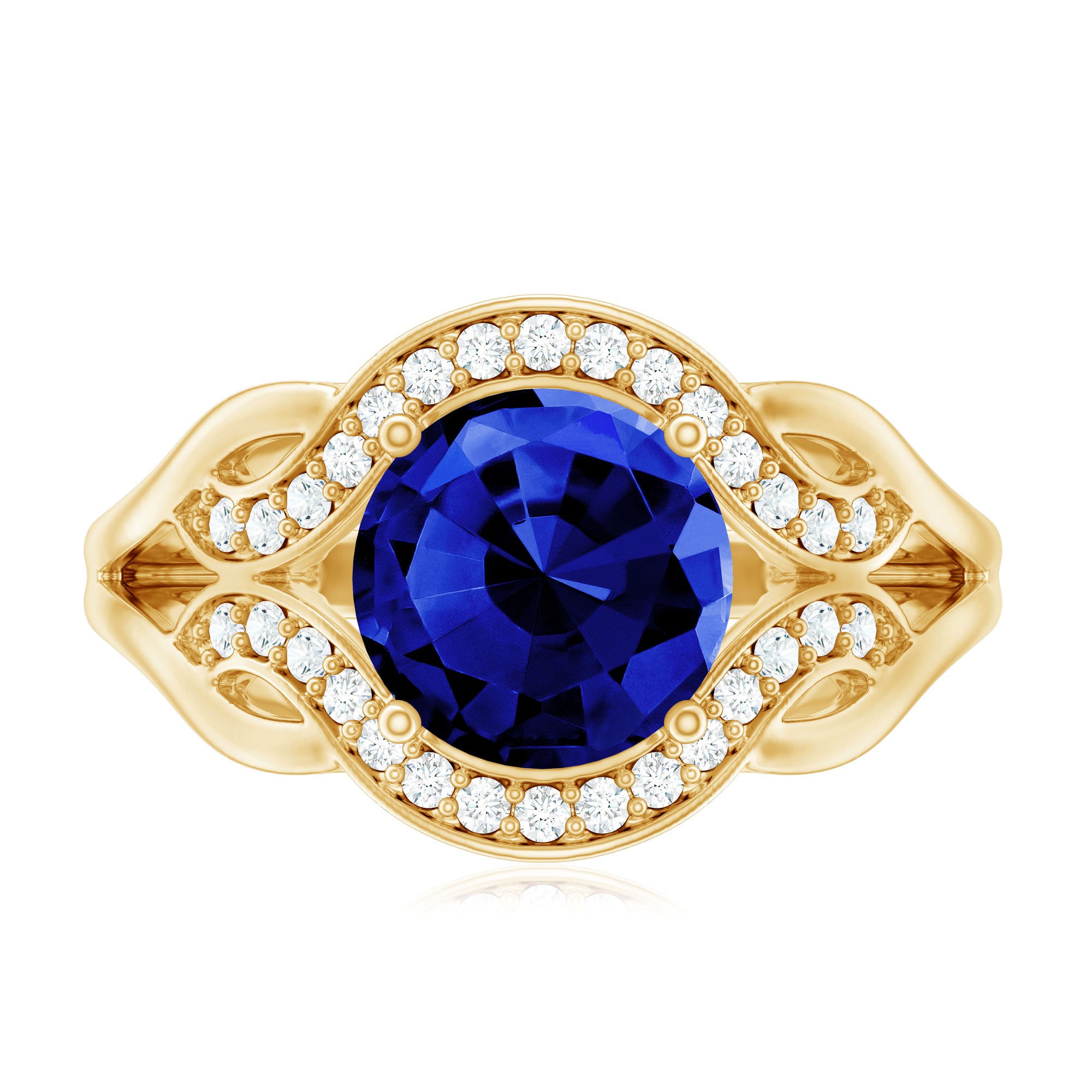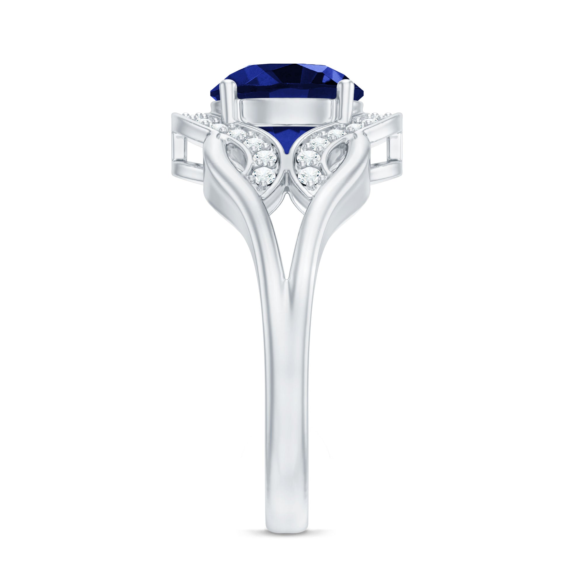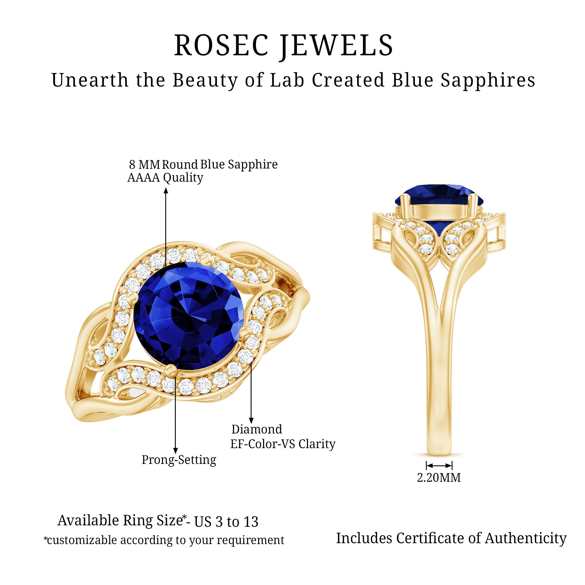 Indulge in timeless elegance with our Art Deco Ring featuring a 8 mm Round Shape Lab Grown Blue Sapphire encircled by dazzling Lab Grown Diamond gemstones. The meticulously crafted Art Deco design evokes a sense of opulence and sophistication with Aaaa Quality Sapphire and Ef-Vs Quality Diamond. Elevate your style with this Statement Ring, a testament to superior craftsmanship. Experience the epitome of glamour and individuality with this Sapphire Diamond Ring, where innovation meets tradition in every sparkling facet.