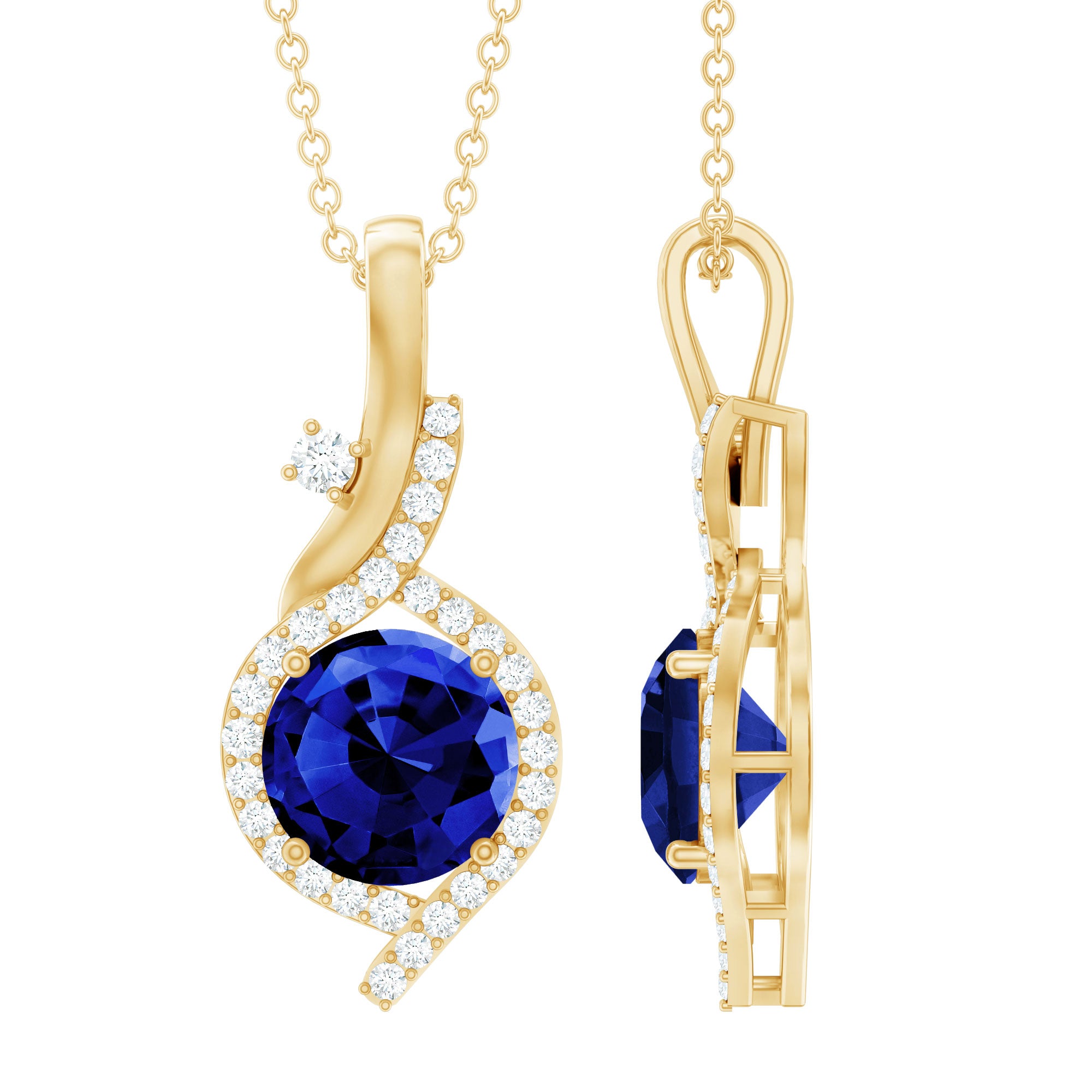 Certified Lab Grown Blue Sapphire Pendant Necklace With Diamonds