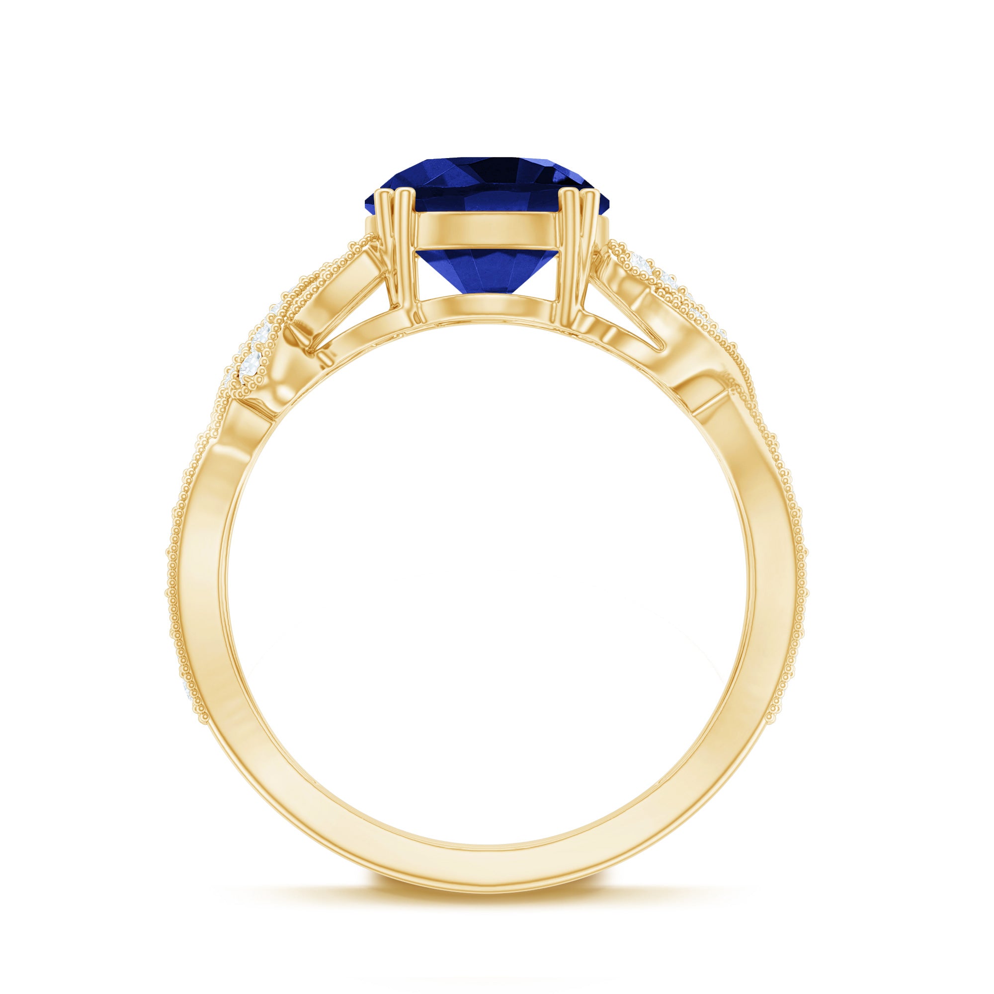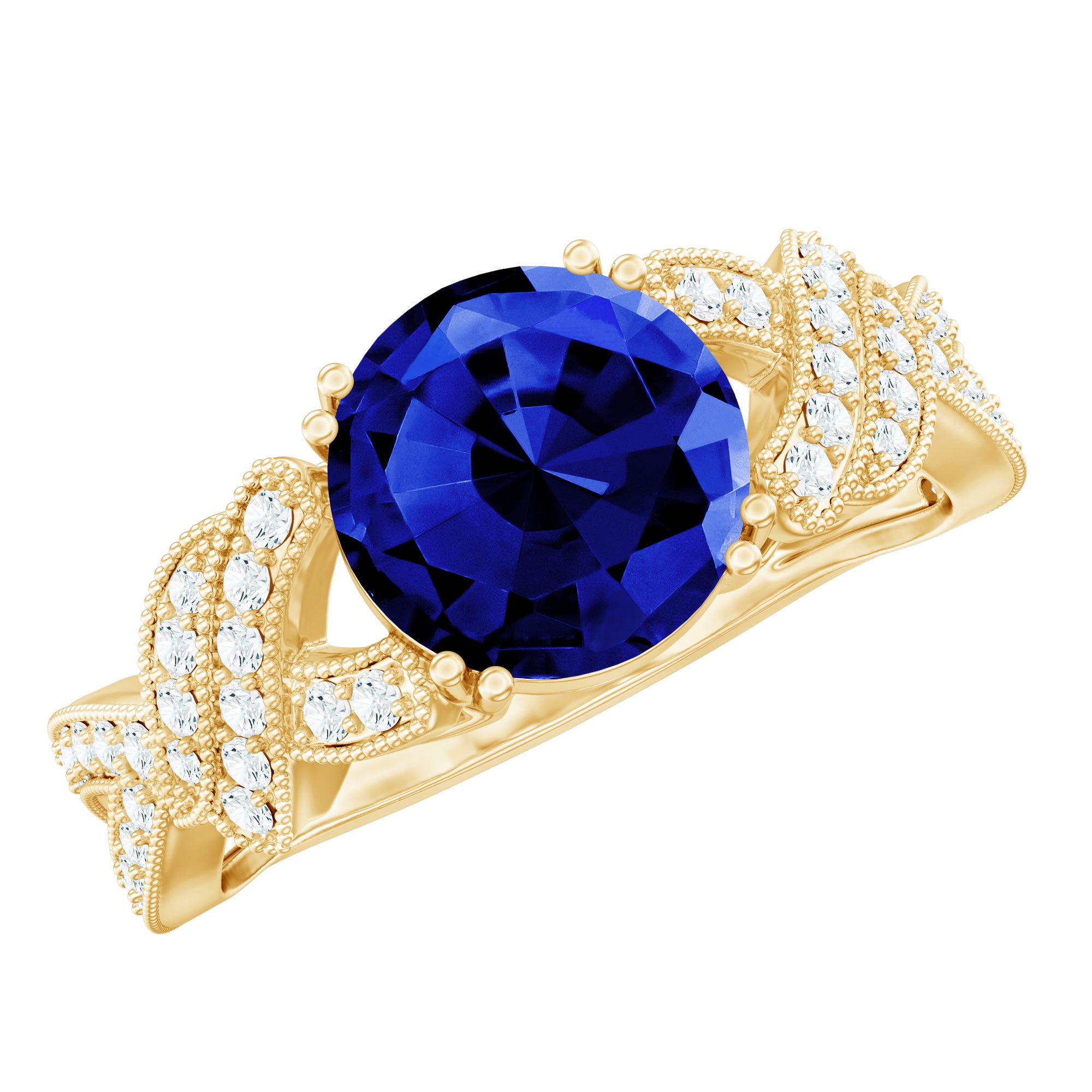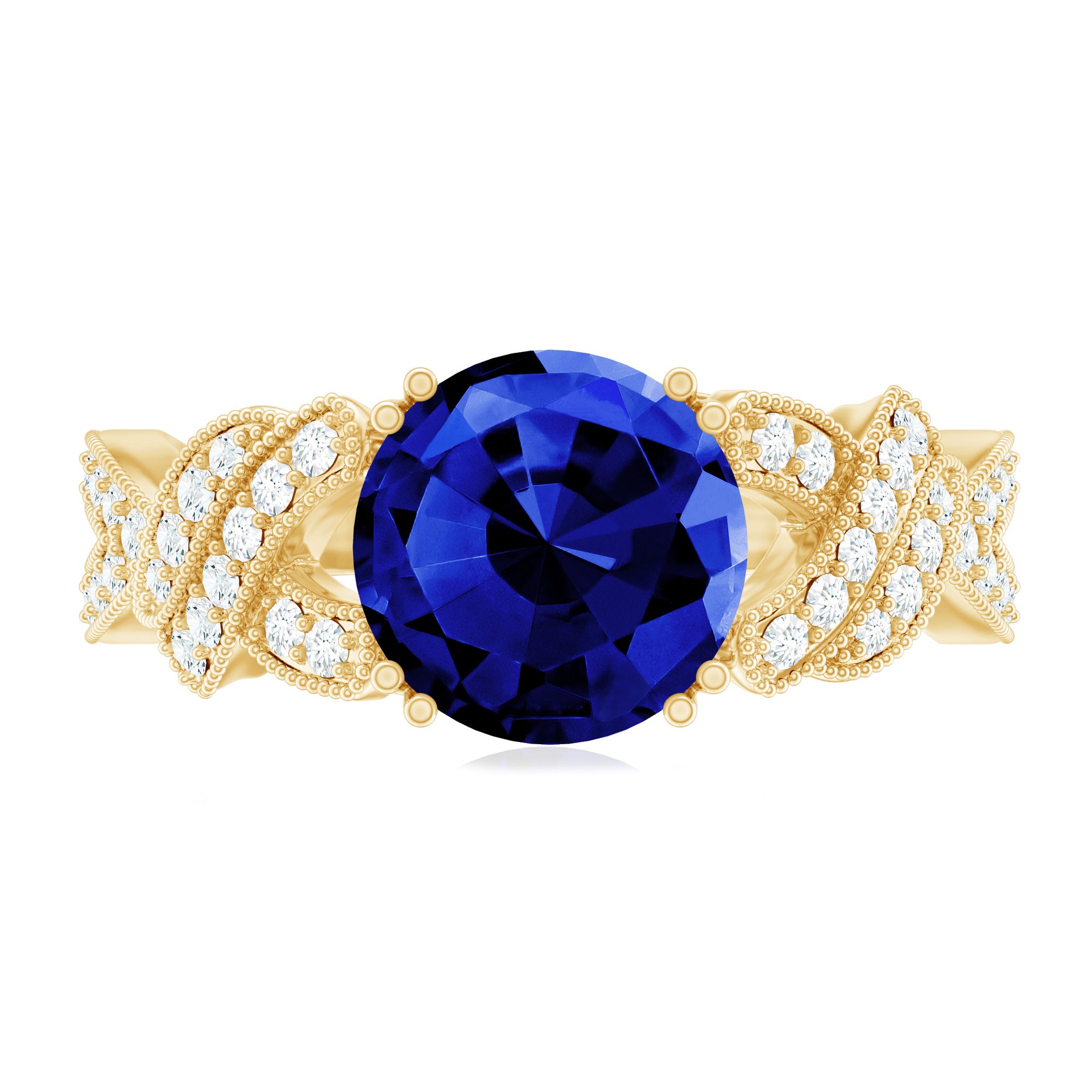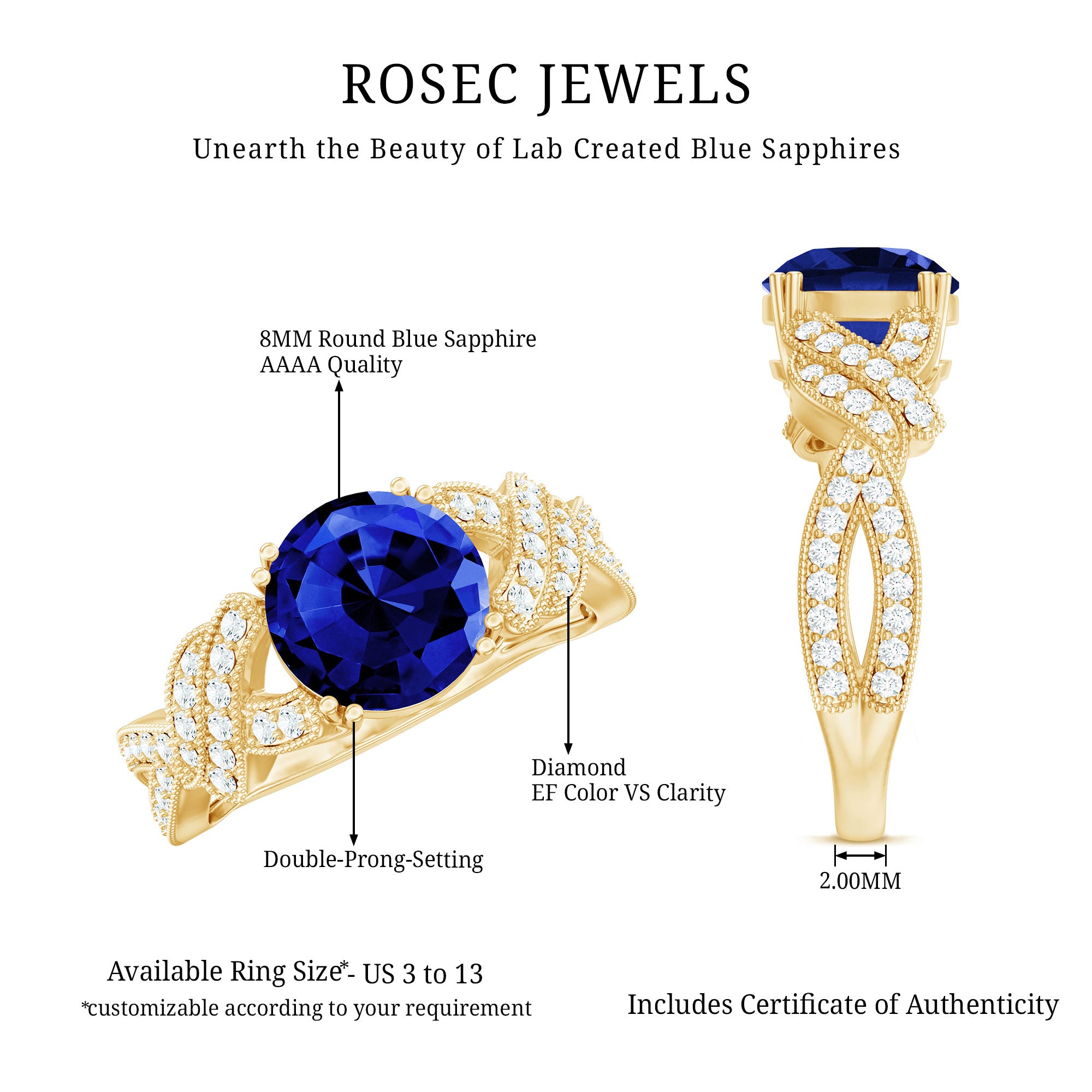 Embellish your love story with this Classic Engagement Ring. Meticulously crafted, this symbol of commitment showcases a stunning Lab Created Blue Sapphire gemstone, evoking sophistication and romance. The 8 mm Blue Sapphire (Synthetic) is complemented by sparkling Lab Grown Diamond gemstones for added brilliance. Rosec Jewels ensures quality craftsmanship with Aaaa Quality Sapphire and Ef-Vs Quality Diamonds of this Engagement Ring with Beaded Detailing and making it the exquisite choice for celebrating everlasting love.