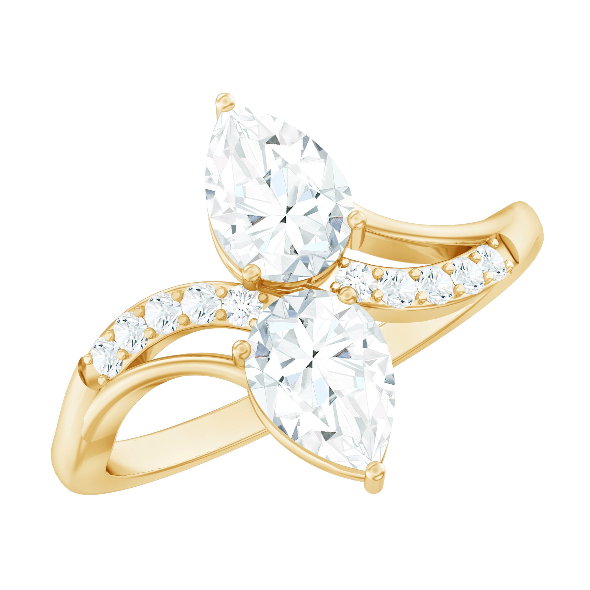 Rosec Jewels presents this stunning forever Two-gether Diamond Engagement Ring. It is embellished with 5X7 MM pear shaped two diamonds set in secure prong setting with a row of sparkling round stones over the curved band. This Two Stone Diamond Ring is handcrafted with ethically sourced, eco-friendly lab created gemstones, its a thoughtful and budget-friendly choice for an Alternative Engagement Ring or any meaningful occasion. Let this Toi Et Moi Ring be a shining reminder of the love you share and the memories yet to be made. Crafted for you, our each jewelry piece is designed with attention to detail, comfort, quality, and longevity.