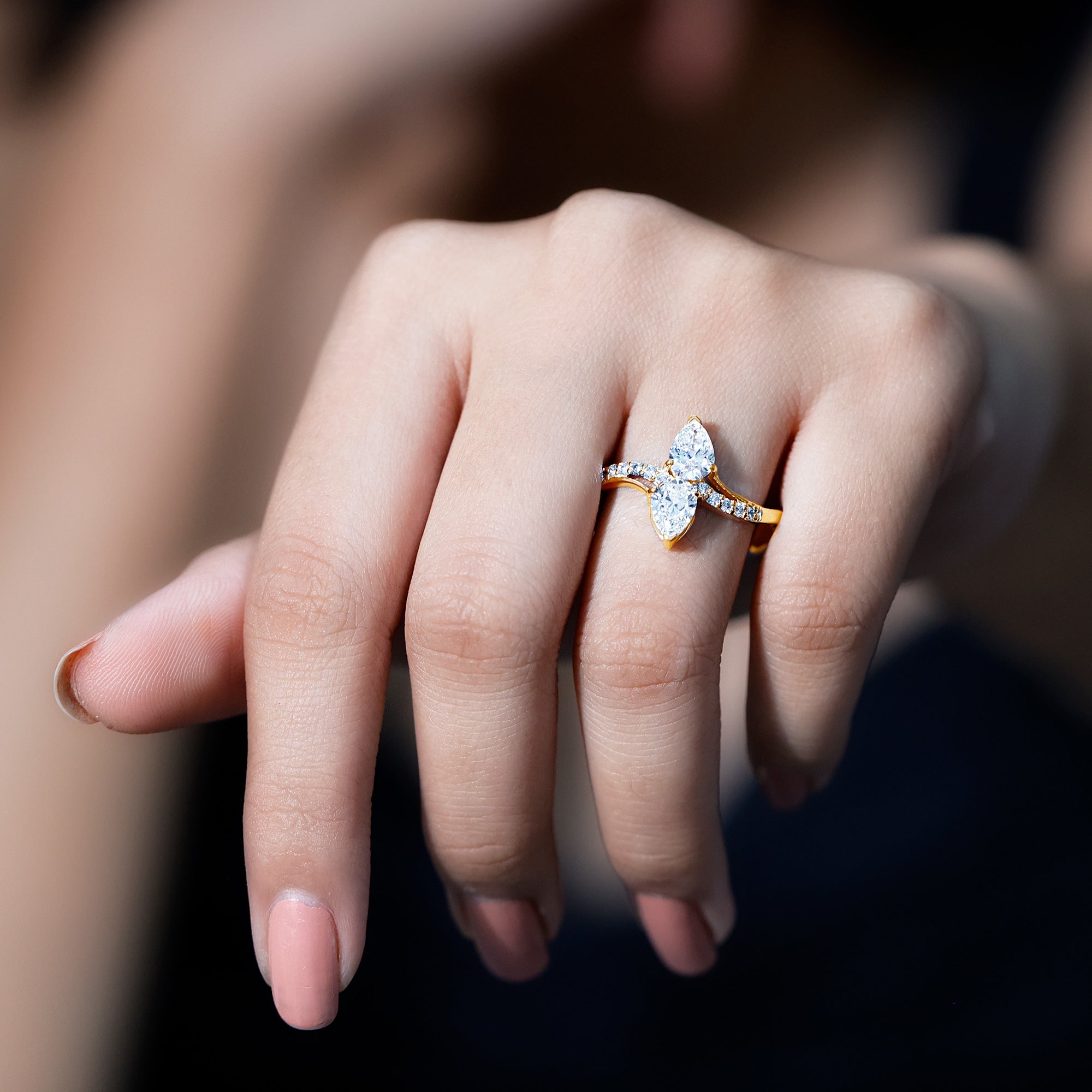 Rosec Jewels presents this stunning forever Two-gether Diamond Engagement Ring. It is embellished with 5X7 MM pear shaped two diamonds set in secure prong setting with a row of sparkling round stones over the curved band. This Two Stone Diamond Ring is handcrafted with ethically sourced, eco-friendly lab created gemstones, its a thoughtful and budget-friendly choice for an Alternative Engagement Ring or any meaningful occasion. Let this Toi Et Moi Ring be a shining reminder of the love you share and the memories yet to be made. Crafted for you, our each jewelry piece is designed with attention to detail, comfort, quality, and longevity.