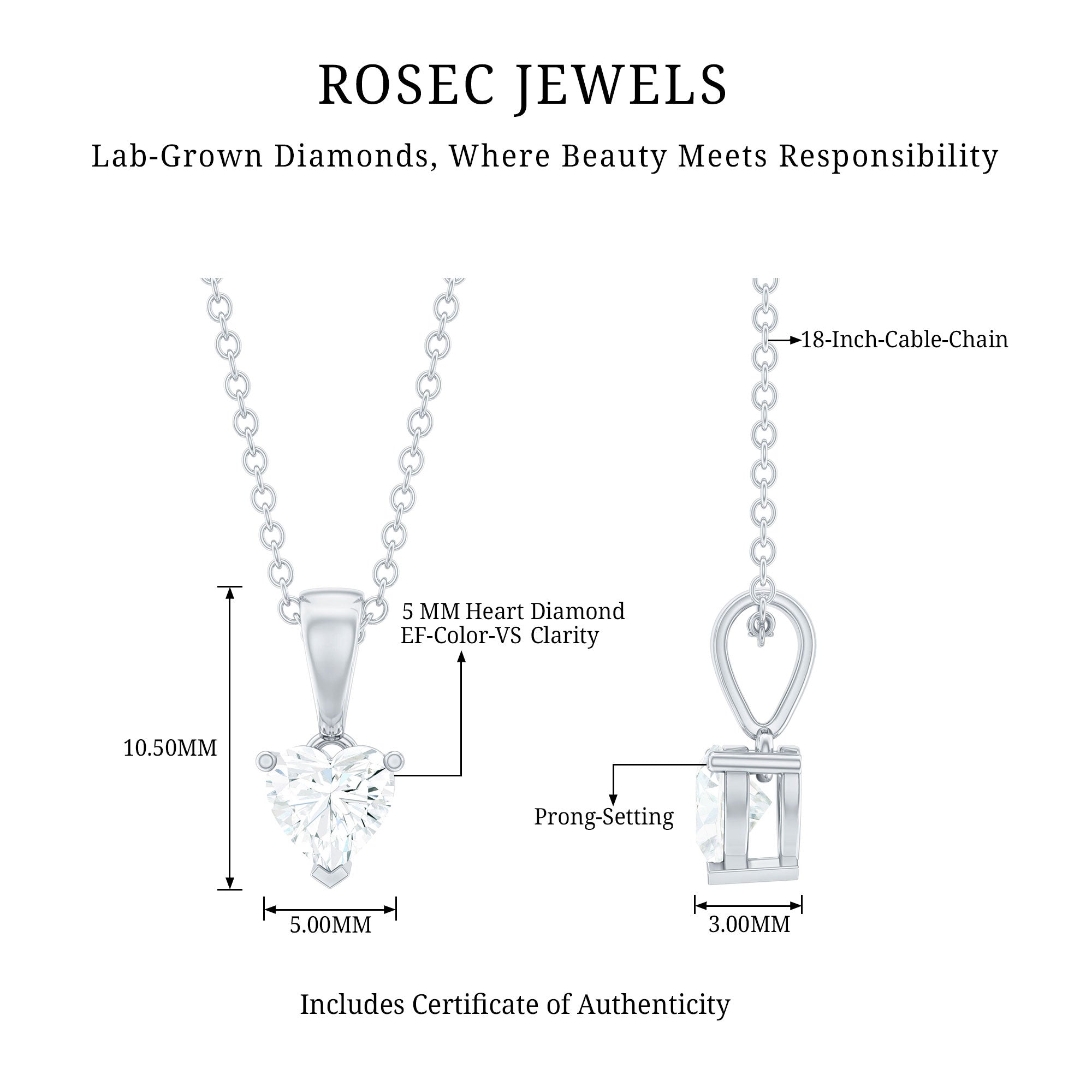Certified Lab Grown Diamond 5 mm Heart Necklace With Silver Chain