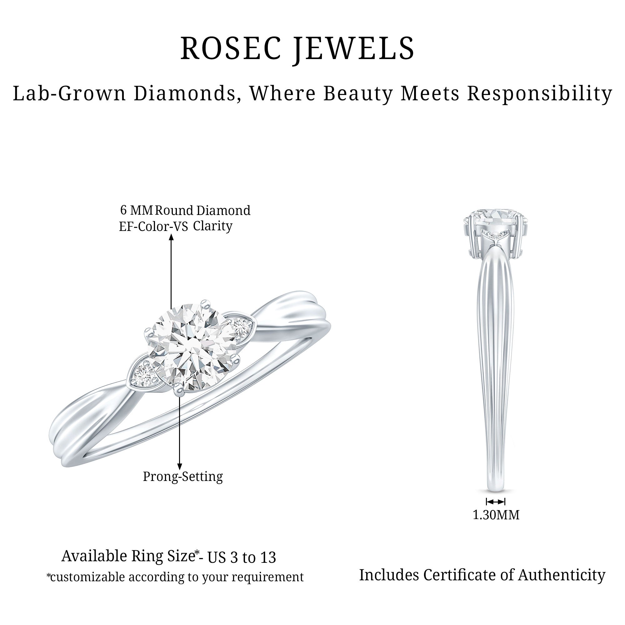Certified Lab Grown Diamond 6 MM Solitaire Promise Ring