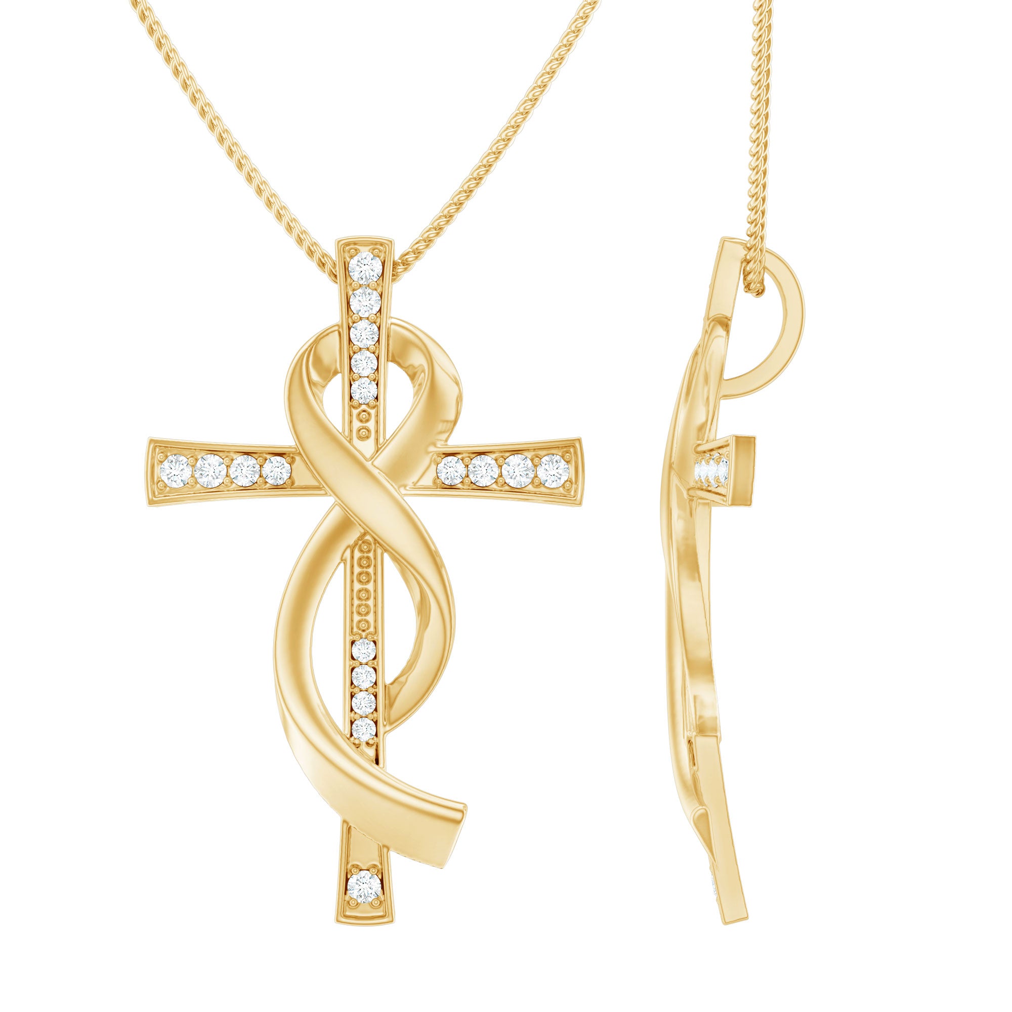 This unique Diamond Cross Necklace resembles your faith till infinity - because true devotion never ends. This stunning Cross Infinity Necklace is a masterpiece of elegance and meaning, designed for both men and women. It features a beautifully crafted cross symbol adorned with sparkling lab grown diamonds and a metal infinity sign gracefully intertwines with the cross, symbolizing eternal faith, love, and strength. The hidden bail allows for a seamless and floating appearance, while the Diamond Pendant Necklace dangles gracefully on your neckline. Presented in a premium box, its the perfect choice for a moment youll cherish forever.