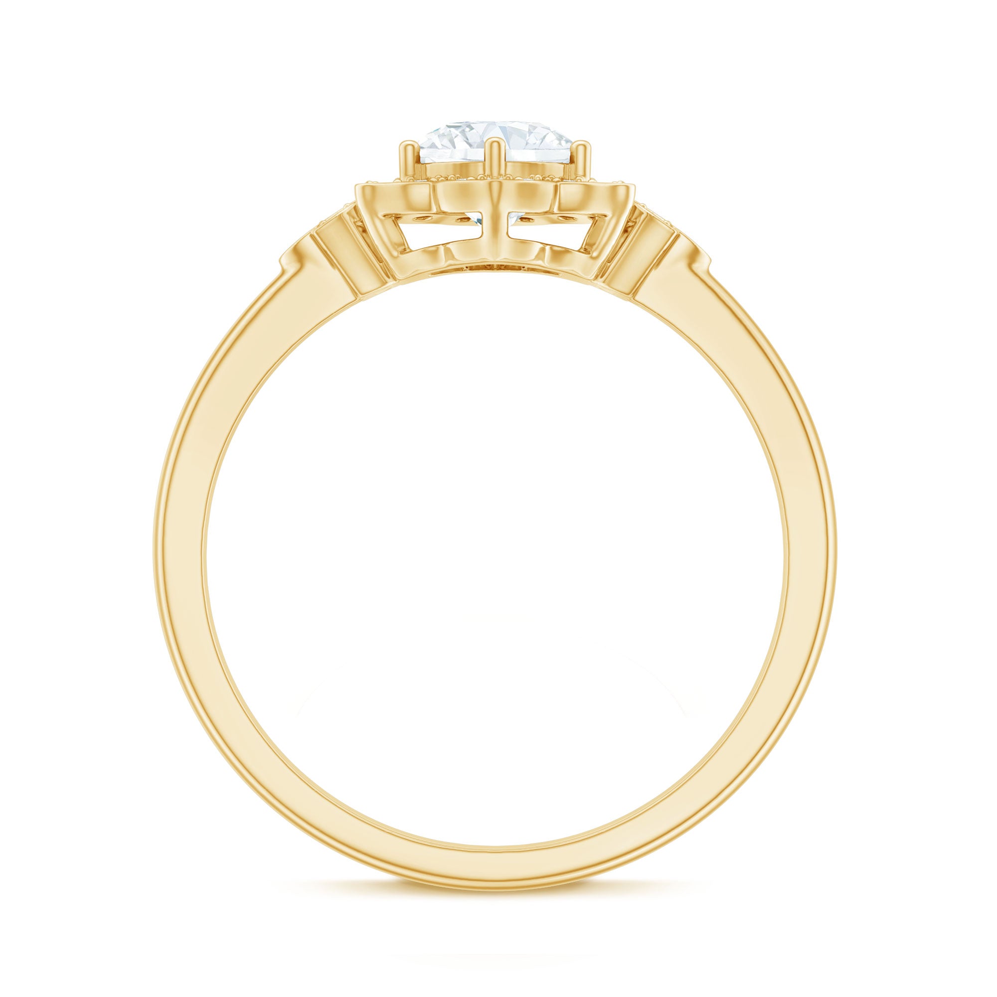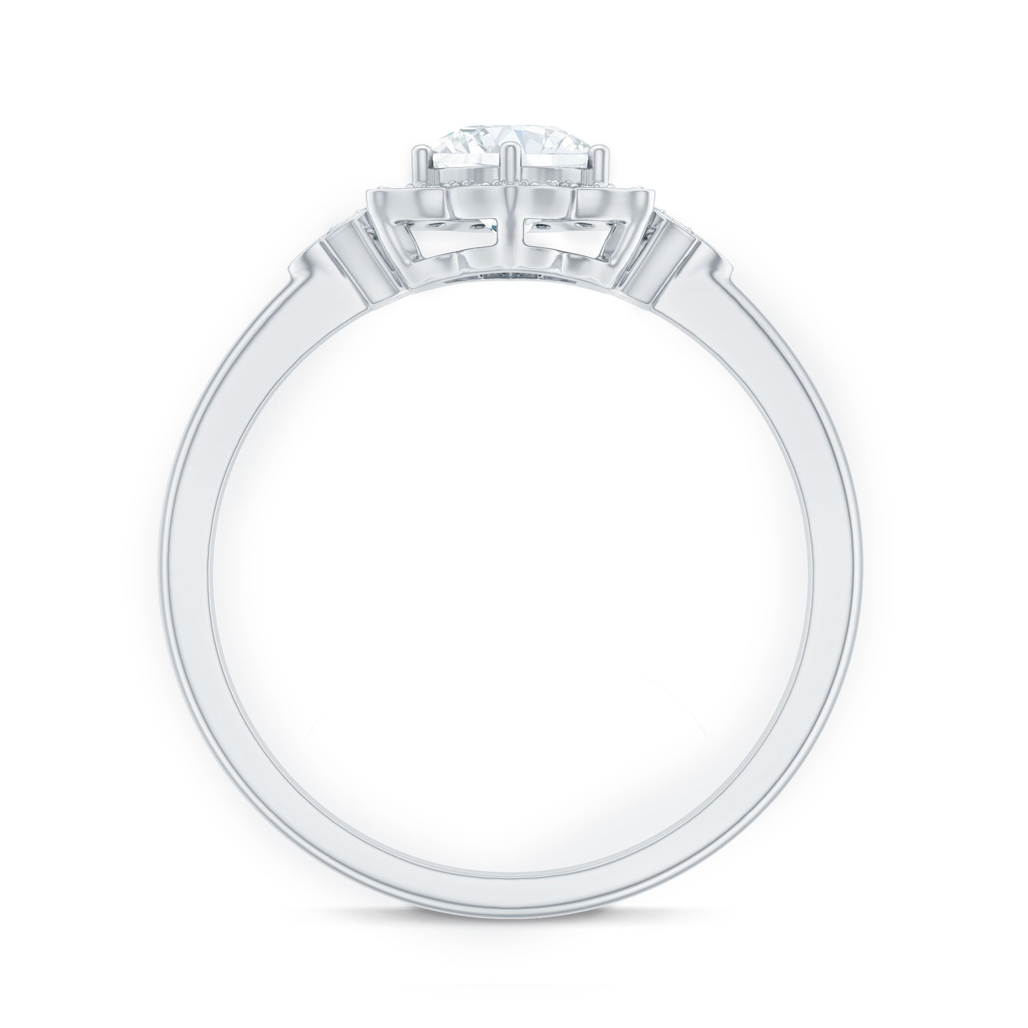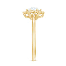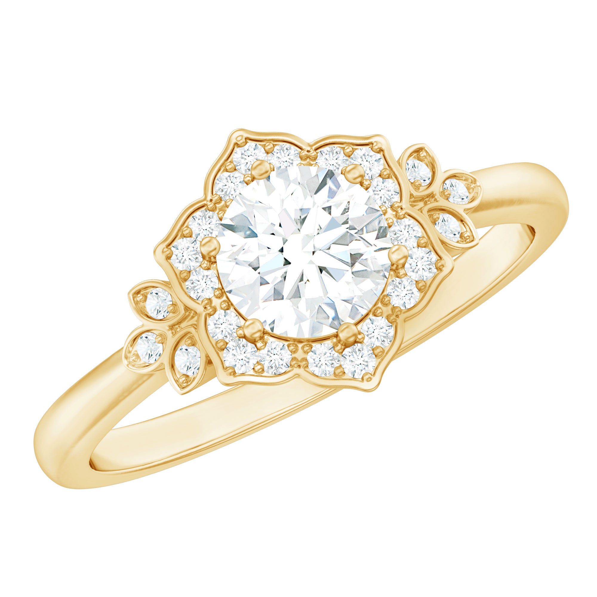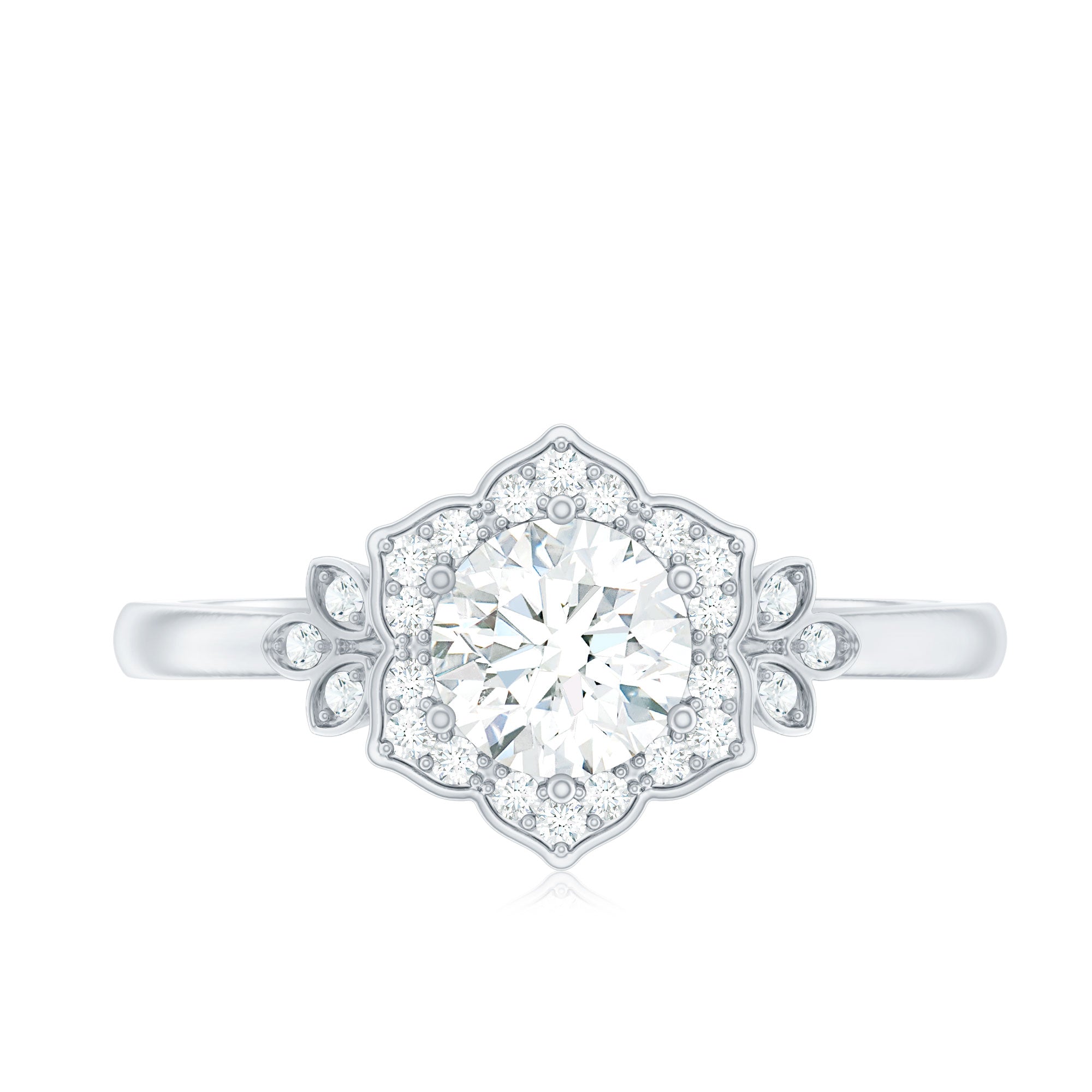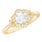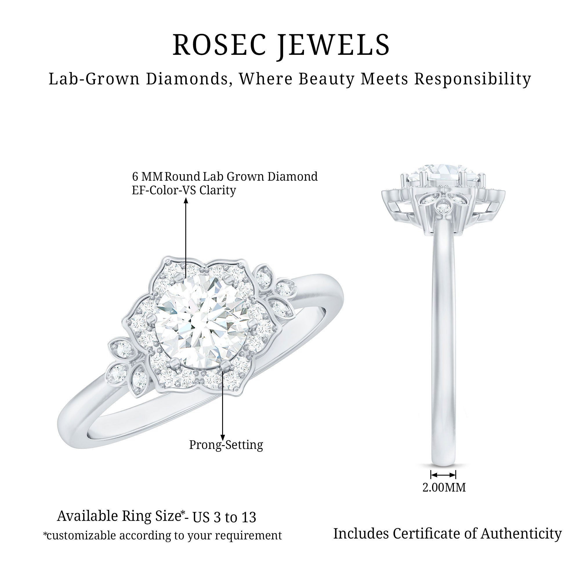 Carefully curated this breathtaking Flower Engagement Ring brings together the beauty of nature with a timeless sparkle of lab made diamonds, creating a one-of-a-kind masterpiece. Inspired by the delicate elegance of nature, this Art Deco Engagement Ring is embellished with a 6 MM round cut diamond (EF-VS quality) set in 6-prong setting with smaller stones forming a floral halo. The simple band of this Lab Grown Diamond Ring is gracefully adorned with three petals of shimmering gemstones on both sides, adding an extra touch of sparkle. For brides looking for something romantic, feminine, and uniquely elegant, this Floral Ring is a dream come true. This beautiful Diamond Engagement Ring will be shipped to you in a premium-quality jewelry box with Gemstone Authenticity Certificate to give a trustworthy experience when you shop with us.